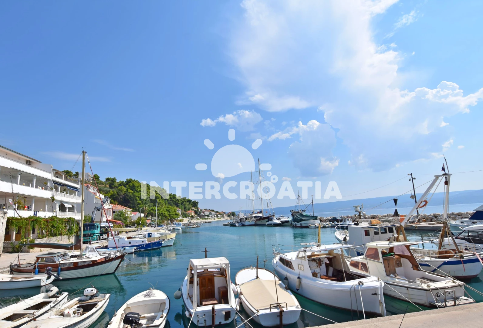 Vzdálenosti: Moře 15 m, pláž 30 m (oblázky), veřejná doprava 40 m, restaurace 50 m, bar 50 m, centrum 50 m, supermarket 50 m, lékárna 1 km, ambulance 1 km, směnárna 1 km, pošta 1 km, čerpací stanice 1 km, půjčovna kol 3 km, tenisové kurty 6 km, diskotéka 6 km, banka 7 km, trajekt (Split) 20 km, muzeum 20 km, letiště (Split) 35 km,