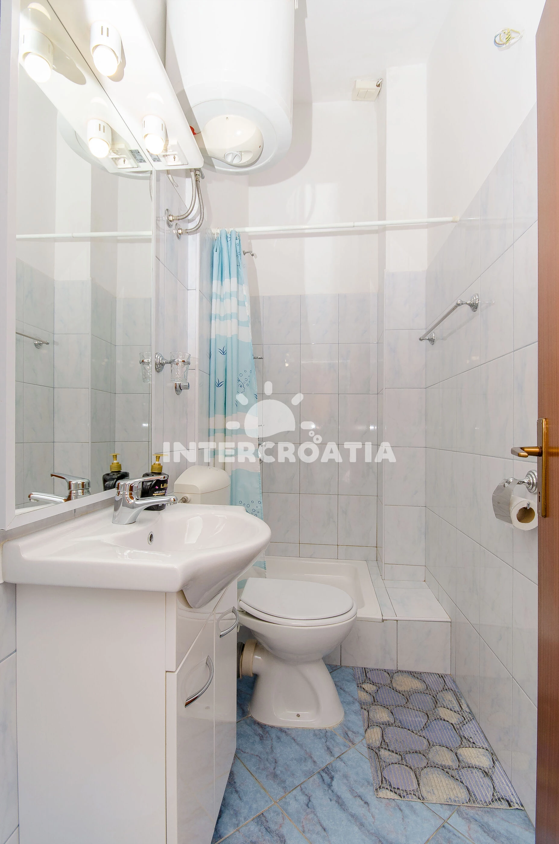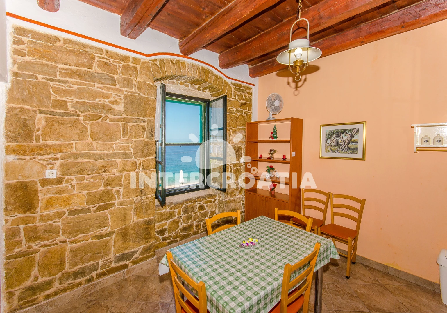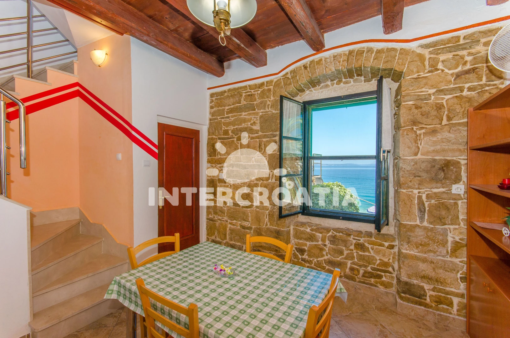 Vzdálenosti: Moře 5 m, pláž 5 m (oblázky), veřejná doprava 10 m, restaurace 10 m, supermarket 10 m, centrum 10 m, bar 200 m, lékárna 2 km, ambulance 2 km, směnárna 2 km, čerpací stanice 2 km, banka 2 km, pošta 2 km, trajekt (Split) 19 km, letiště (Split) 35 km,