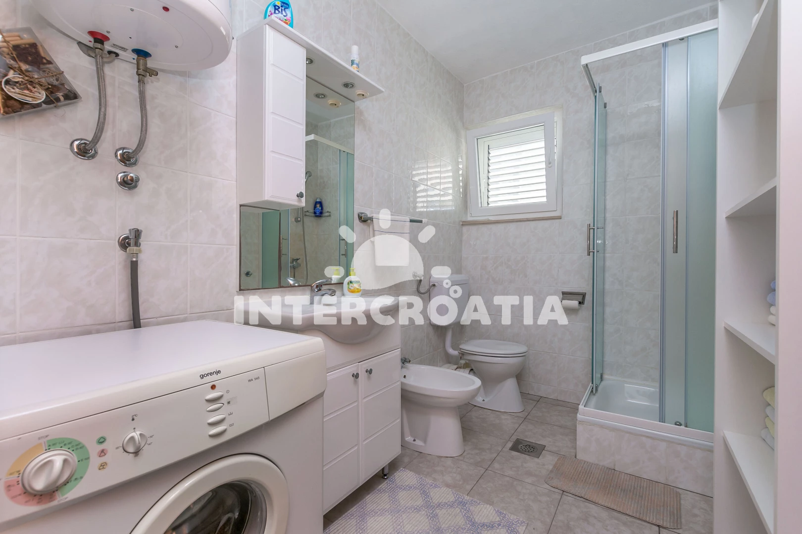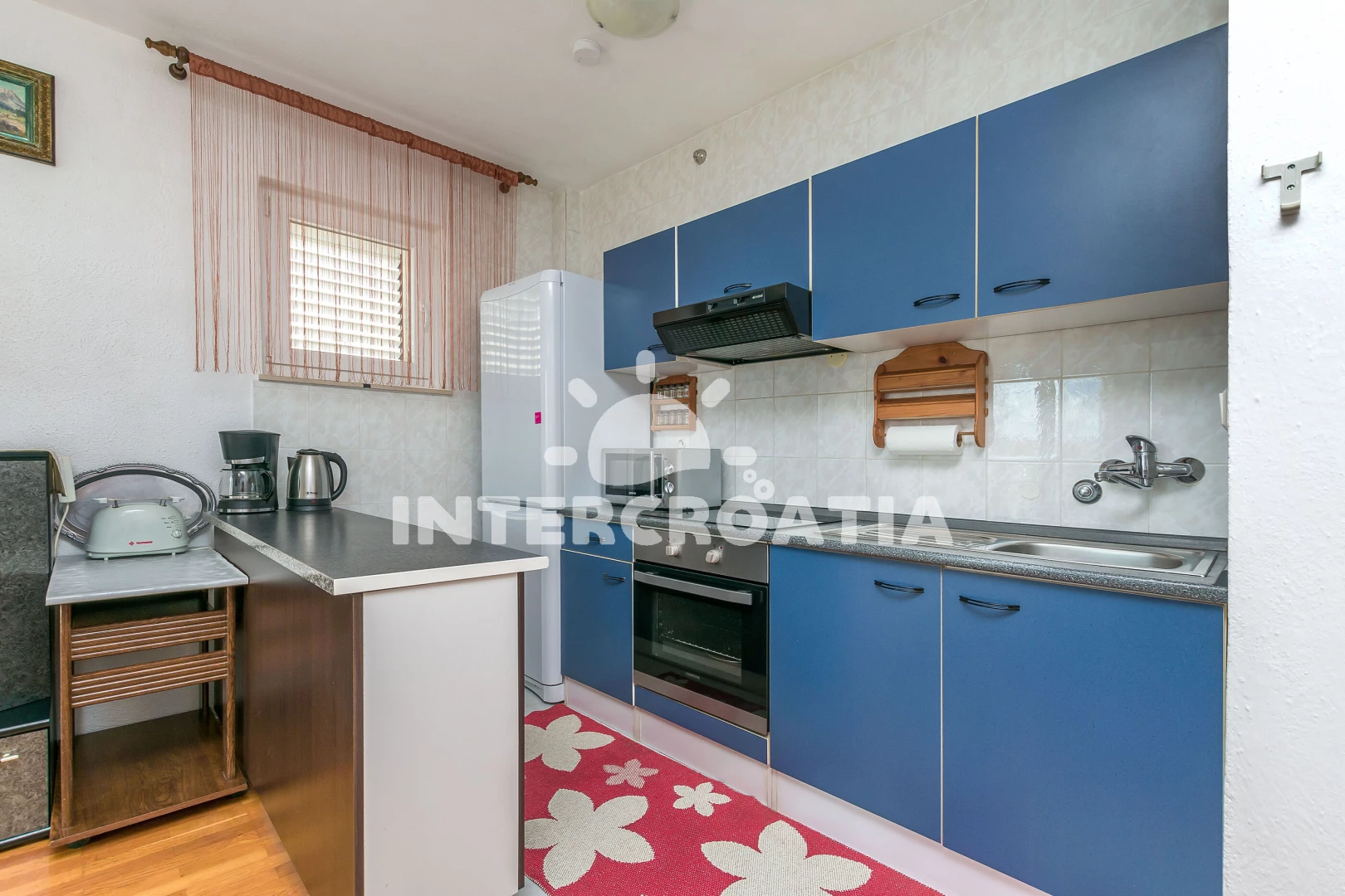 Vzdálenosti: Moře 200 m, pláž 400 m (oblázky), bar 200 m, restaurace 200 m, centrum 200 m, supermarket 200 m, veřejná doprava 200 m, marina 300 m, lékárna 3 km, ambulance 3 km, banka 3 km, pošta 3 km, směnárna 3 km, potápění 5 km, tenisové kurty 5 km, diskotéka 5 km, čerpací stanice 8 km, muzeum 12 km, trajekt (Split) 13 km, letiště (Split) 25 km,