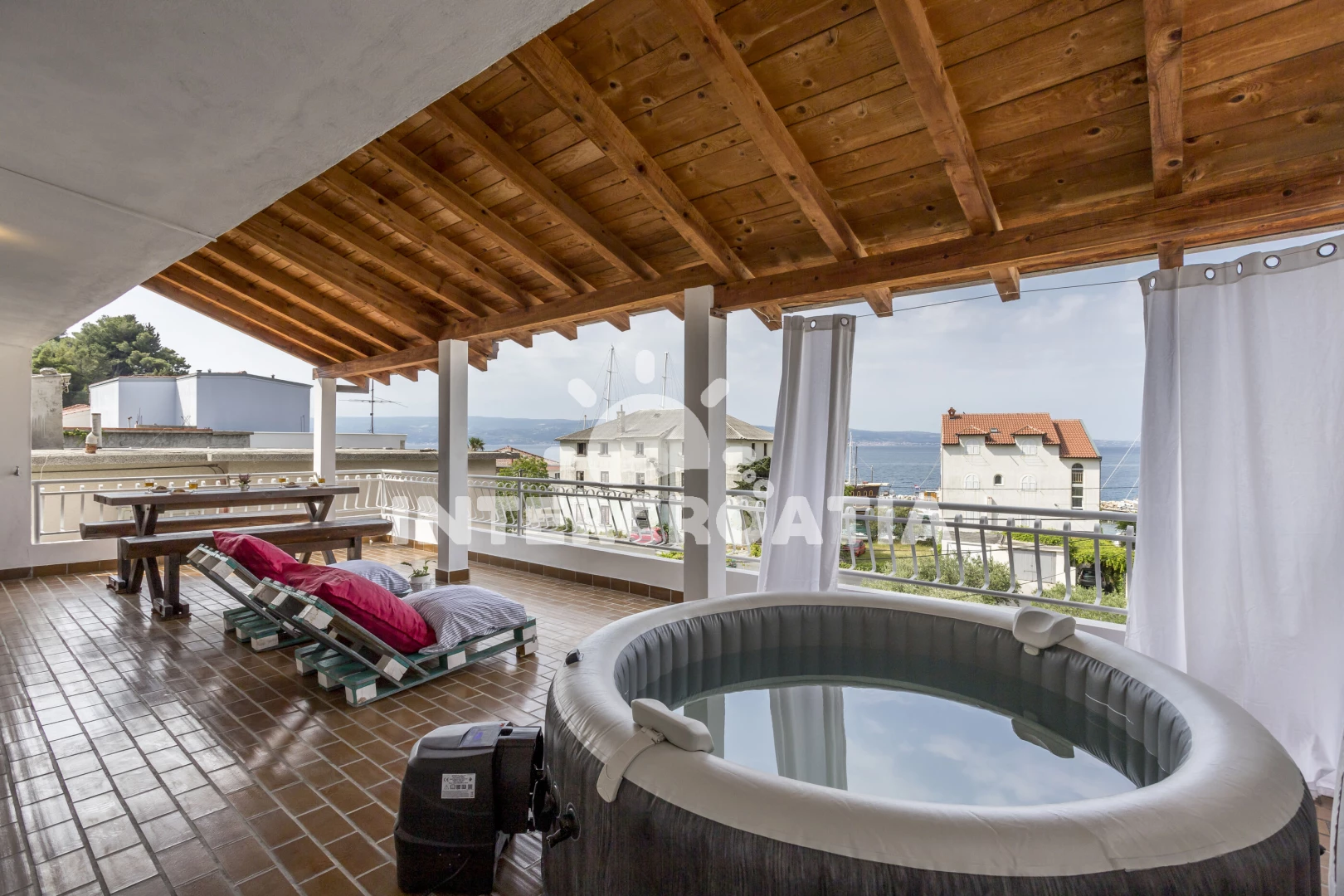 Apartmán se nachází 120 m od moře a pláže. Pláž je oblázková. K dispozici vířivka. U objektu je k dispozici společná zahrada s posezením a grilem.