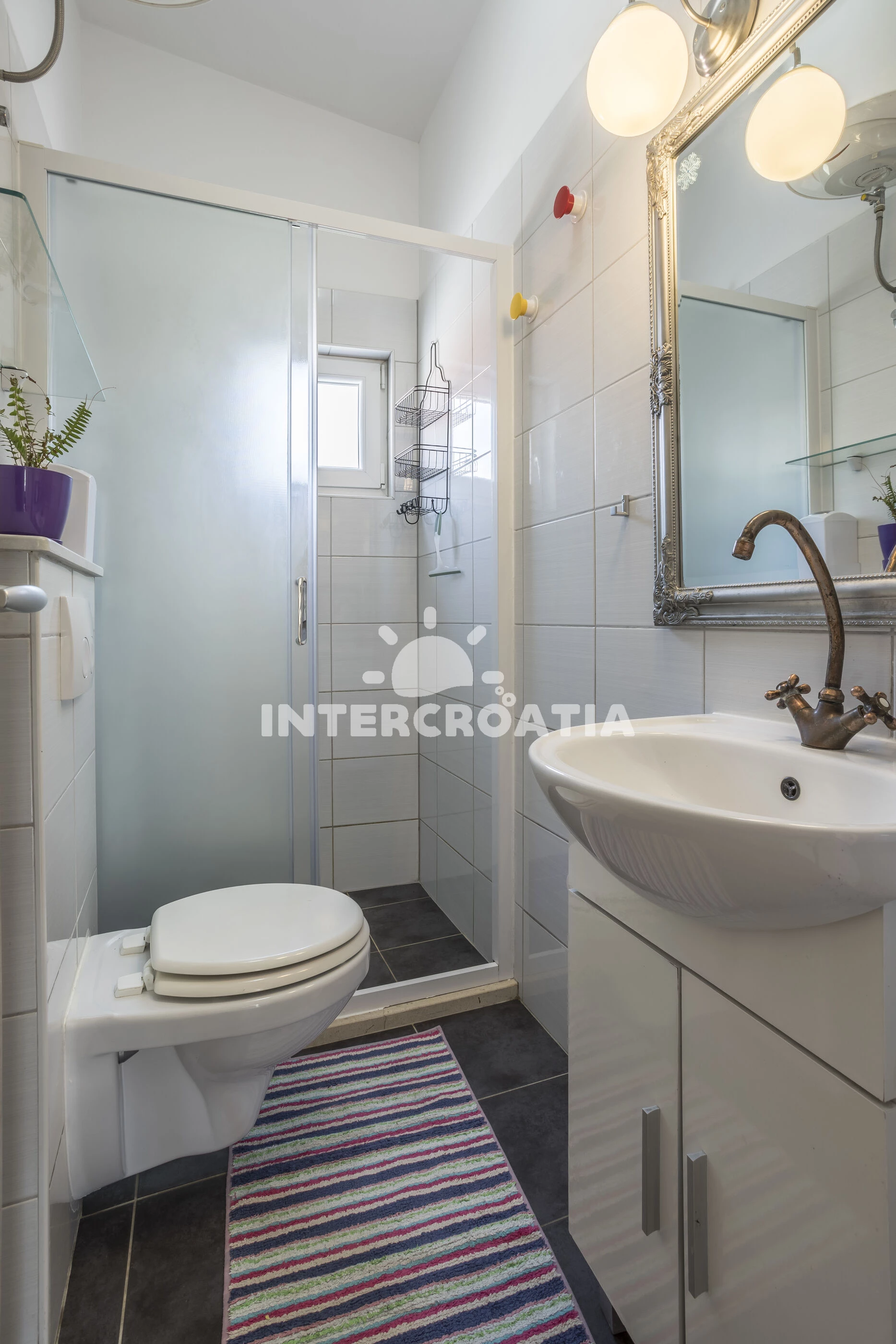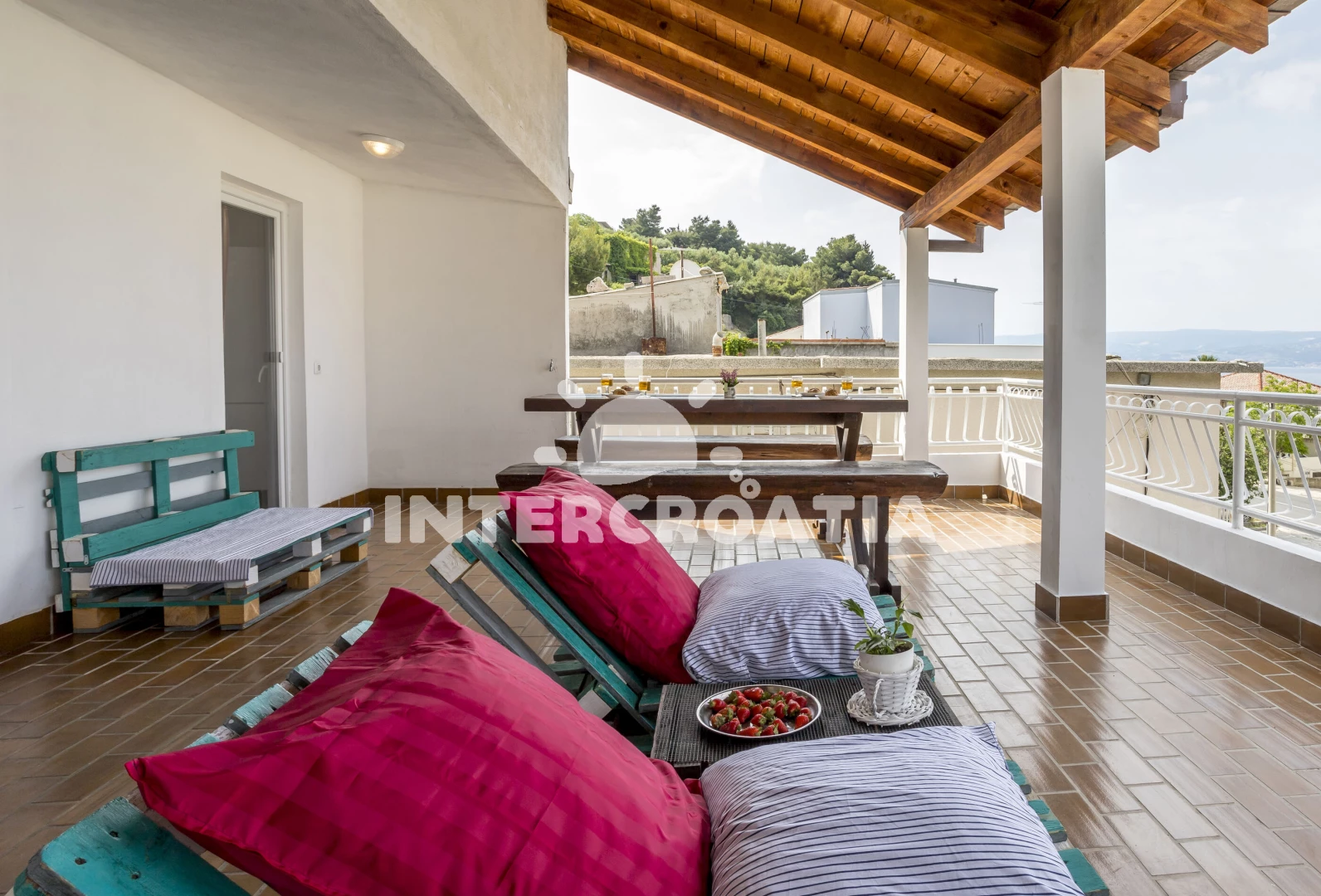 Vzdálenosti: Moře 80 m, pláž 120 m (oblázky), supermarket 70 m, restaurace 100 m, bar 100 m, veřejná doprava 1 km, směnárna 1,3 km, centrum 1,3 km, lékárna 1,3 km, ambulance 1,3 km, čerpací stanice 2 km, půjčovna motorových člunů 3 km, banka 5 km, tenisové kurty 5 km, potápění 5 km, pošta 5 km, půjčovna kol 5 km, trajekt (Split) 25 km, diskotéka 25 km, letiště (Split) 45 km,