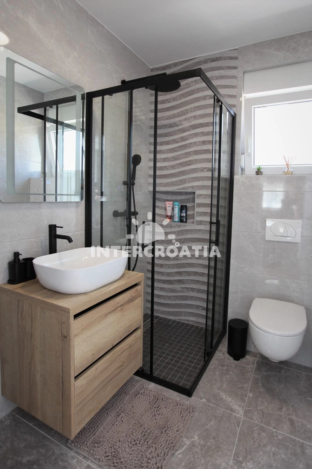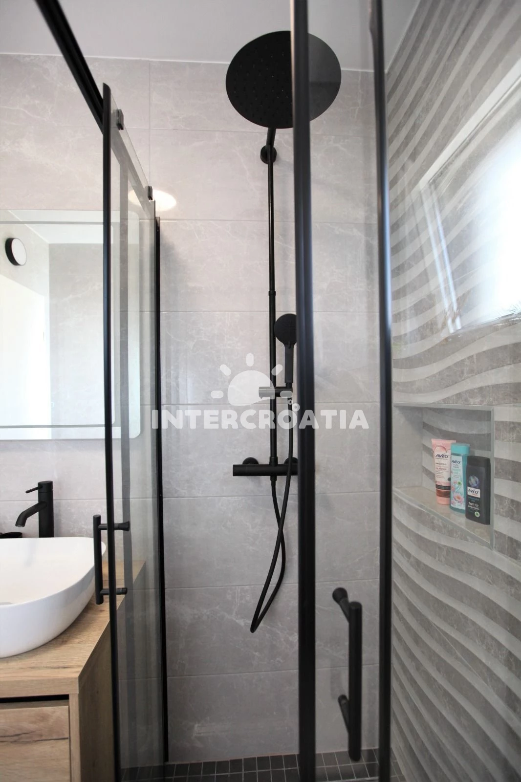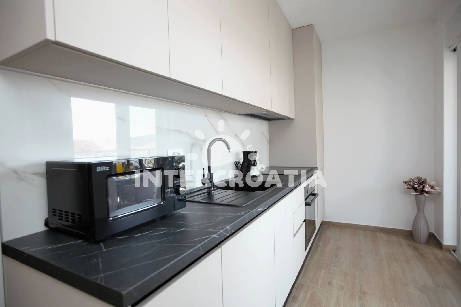 Vzdálenosti: Moře 500 m, pláž 500 m (oblázky), banka 300 m, pošta 300 m, supermarket 300 m, lékárna 300 m, ambulance 300 m, restaurace 500 m, bar 500 m, muzeum 800 m, diskotéka 800 m, centrum 800 m, marina 1 km, čerpací stanice 1 km, letiště (Split) 6 km, trajekt (Split) 25 km,
