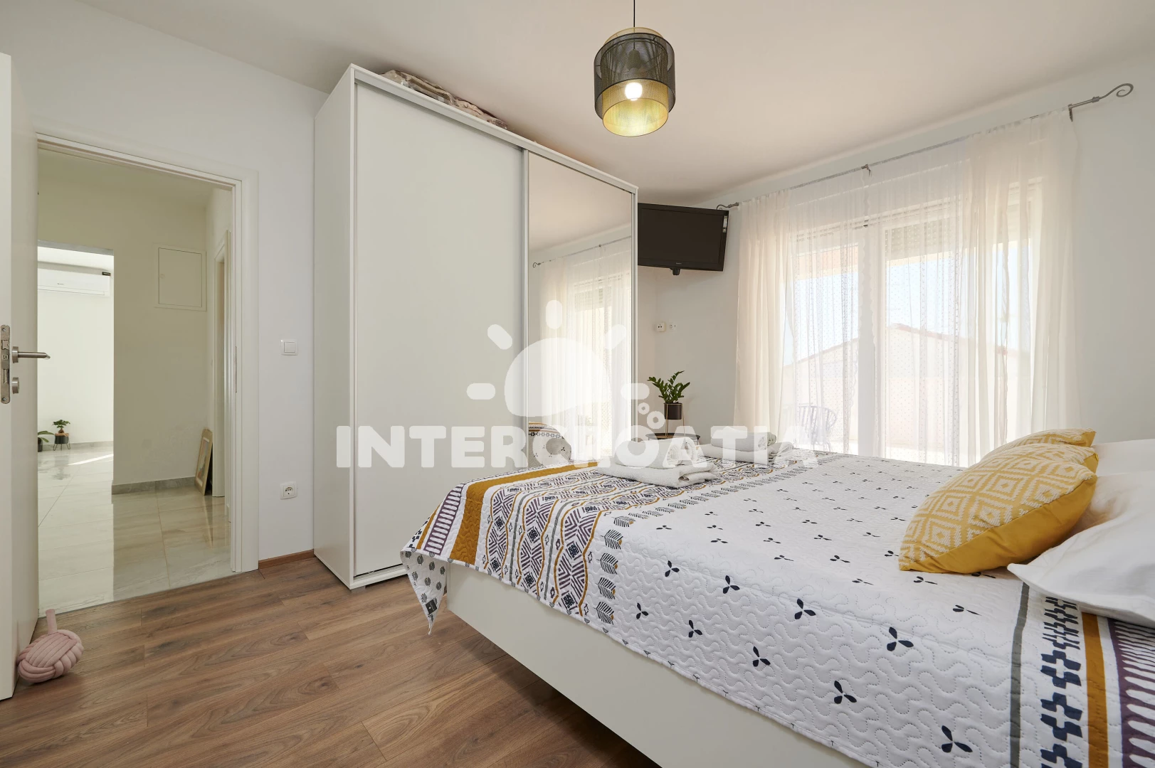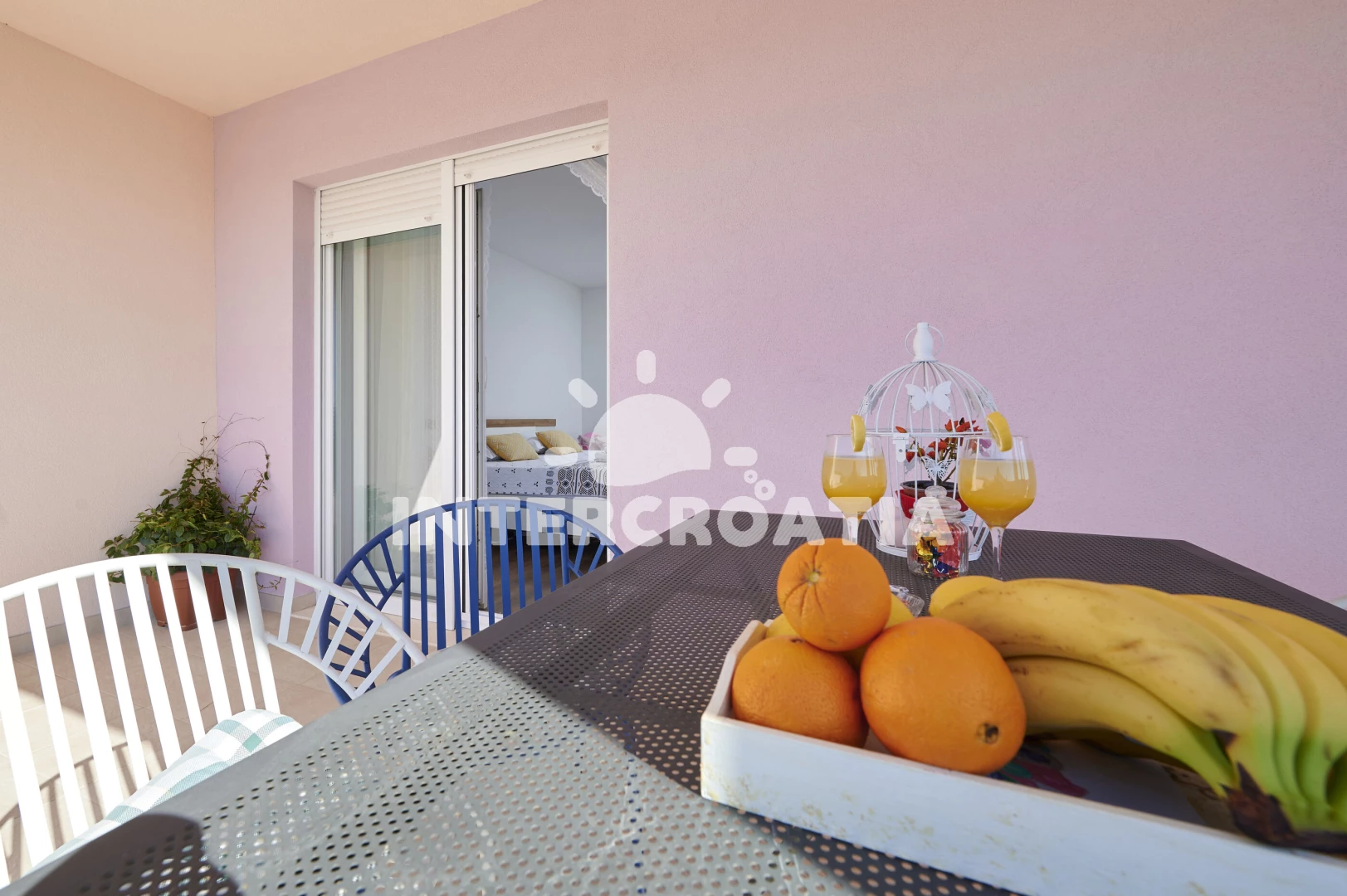 Apartmán (91 m2) s balkonem, a výhledem na moře. Nachází se ve 2. patře objektu. Apartmán má 2 ložnice a je vhodný pro až 5 osob. Kuchyňská linka je vybavena varnou deskou, kávovarem, troubou,…
