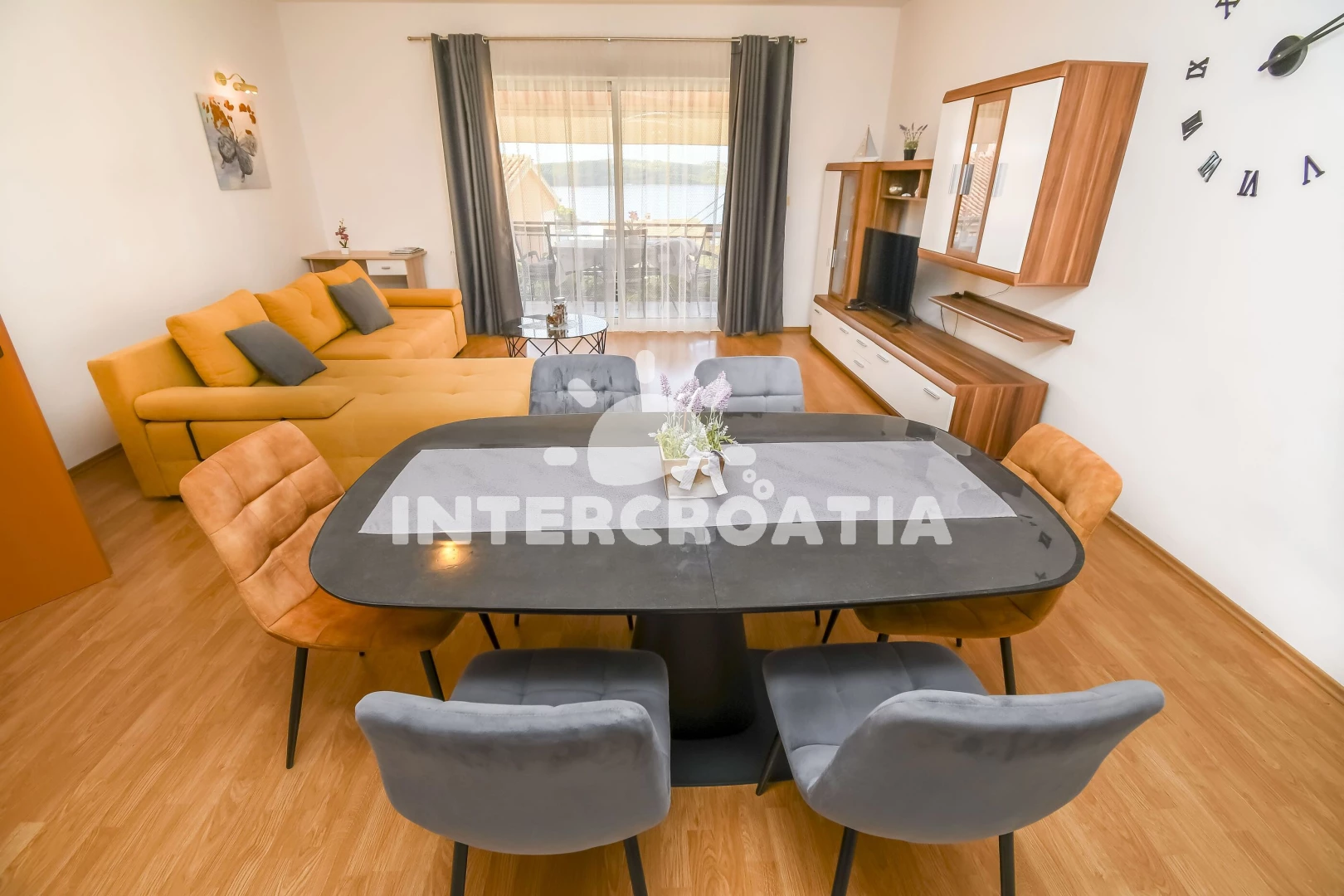 Apartmán (90 m2) s balkonem, a výhledem na moře. Nachází se v 1. patře objektu. Apartmán má 3 ložnice a je vhodný pro až 5 osob. Kuchyňská linka je vybavena varnou deskou, troubou, kávovarem, myčkou…