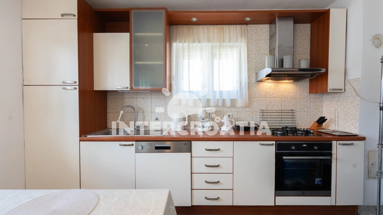 Apartmán (70 m2) s balkonem, a výhledem na moře. Nachází se v 1. patře objektu. Apartmán má 2 ložnice a je vhodný pro až 4 osoby. Kuchyňská linka je vybavena varnou deskou, kávovarem, troubou,…