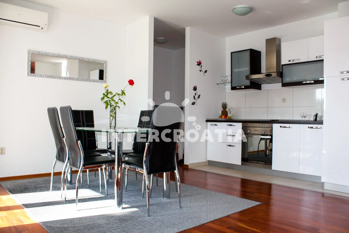 Apartmán (60 m2) s výhledem na moře. Nachází se ve 2. patře objektu. Apartmán má 2 ložnice a je vhodný pro až 5 osob. Kuchyňská linka je vybavena varnou deskou, toustovačem, troubou, kávovarem,…