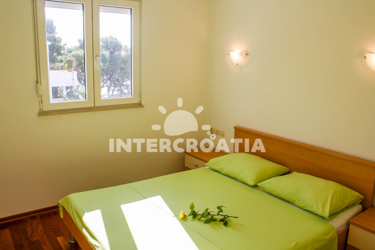 Apartmán (60 m2) s výhledem na moře. Nachází se ve 2. patře objektu. Apartmán má 2 ložnice a je vhodný pro až 5 osob. Kuchyňská linka je vybavena varnou deskou, toustovačem, troubou, kávovarem, mikrovlnnou troubou, rychlovarnou konvicí, nádobím, lednicí, mrazákem. V obývací místnosti je rozložitelná pohovka (extra lůžko pro 1 osobu). K dispozici televize se satelitním programem, žehlička. Koupelna s vanou, umyvadlem, fénem a WC.