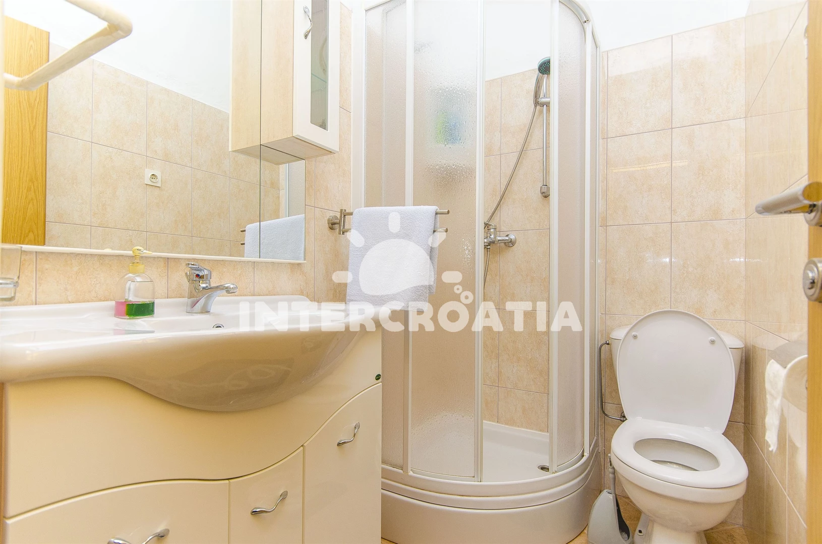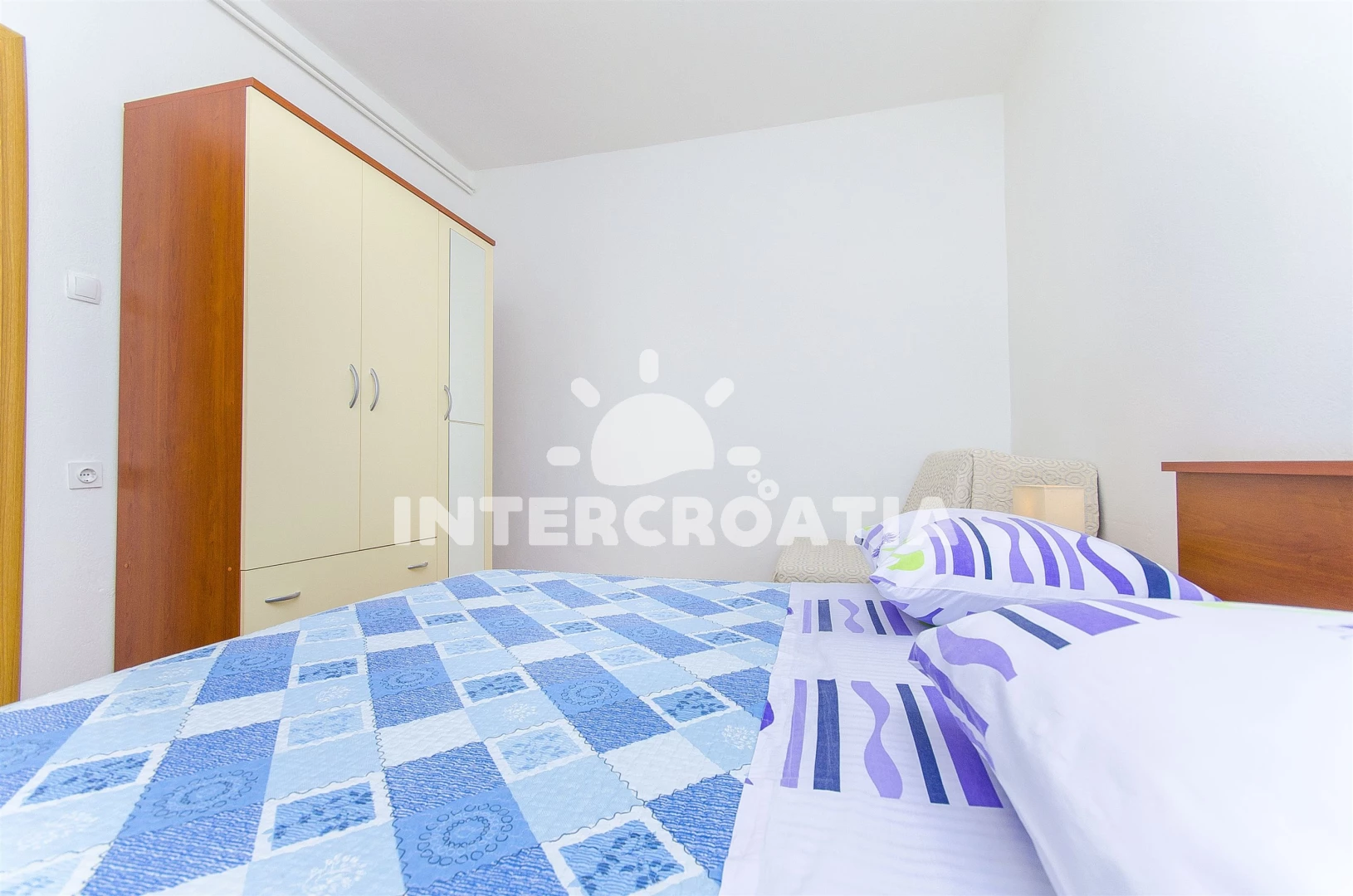 Apartmán se nachází 400 m od moře a pláže. Pláž je oblázková a betonové desky. U objektu je k dispozici společná zahrada s posezením a grilem. Parkování je před domem.