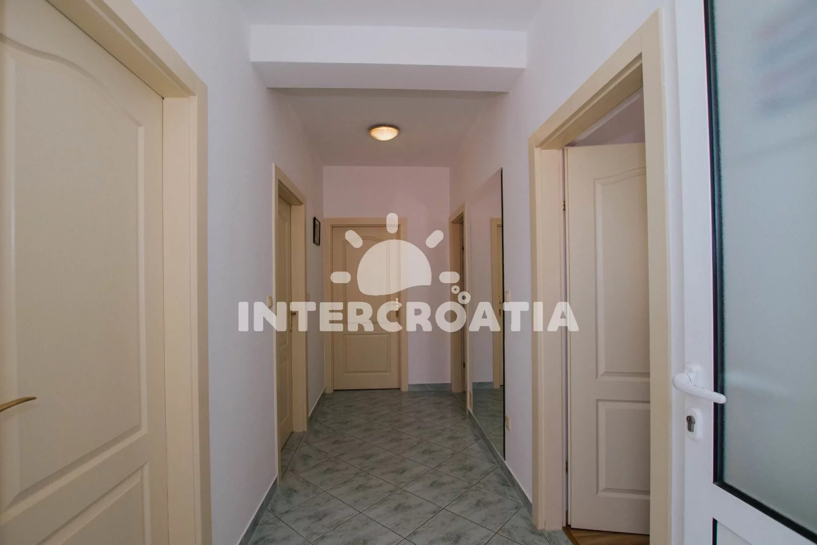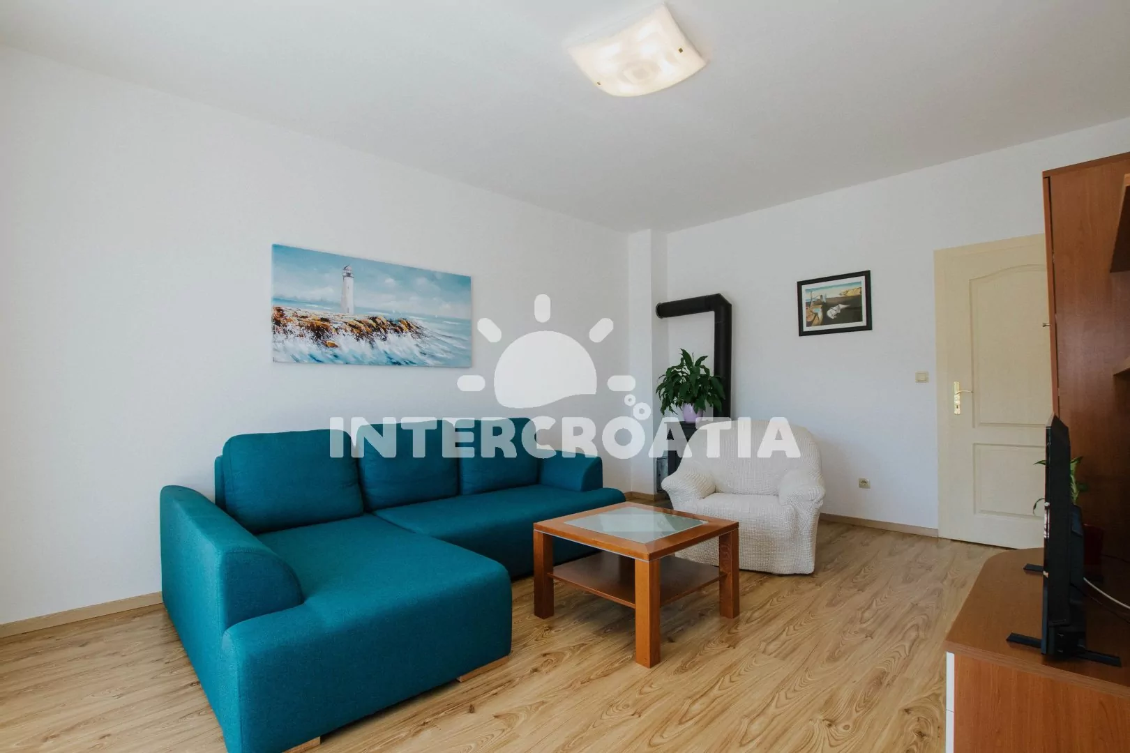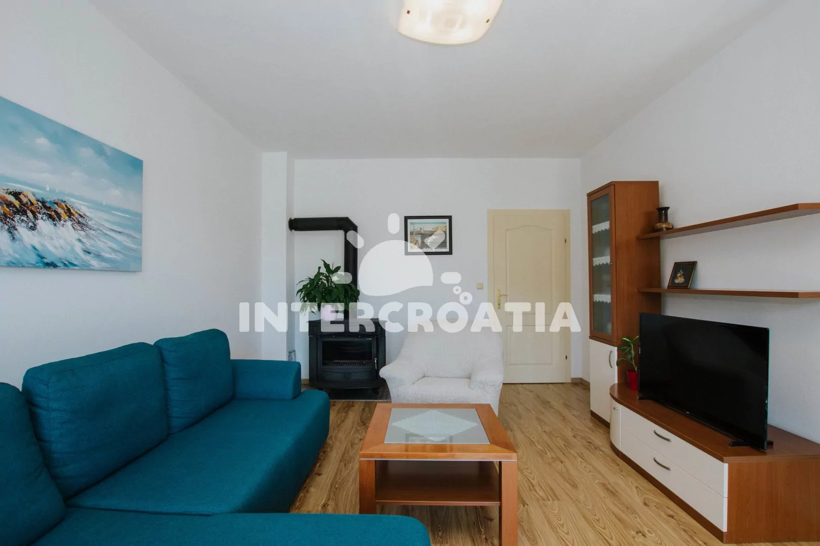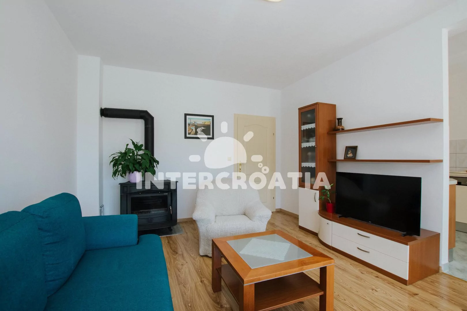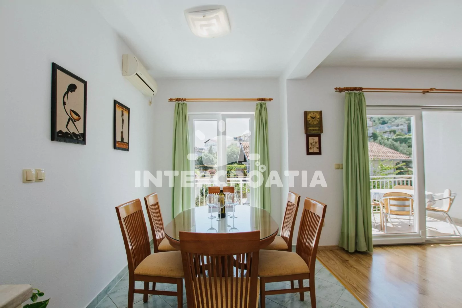 Komfortně zařízený apartmán v prvním patře domu je vhodný pro 2 až 4 osoby, disponuje balkonem s posezením a výhledem na moře. Obývací pokoj je spojený s kuchyní. Kuchyňská linka se sporákem, troubou, rychlovarnou konvicí, kávovarem, nádobím a lednicí s mrazákem. Obývací pokoj s jídelním stolem pro 6 osob, sedací soupravou, rozložitelnou pohovkou (extra lůžko pro 2 osoby), televizí se satelitním programem, vstupem na balkon a klimatizací. Ložnice je vybavena jedním dvoulůžkem. Koupelna se sprchovým koutem, umyvadlem a wc. Hosté mají k dispozici parkování u objektu zdarma.