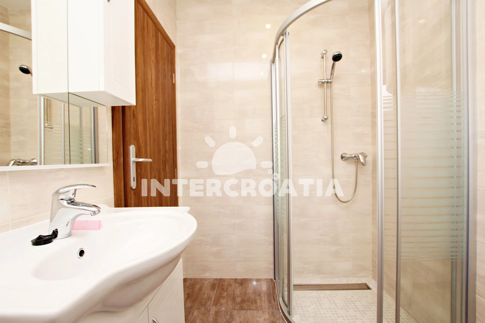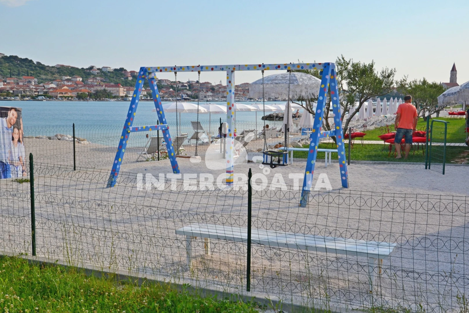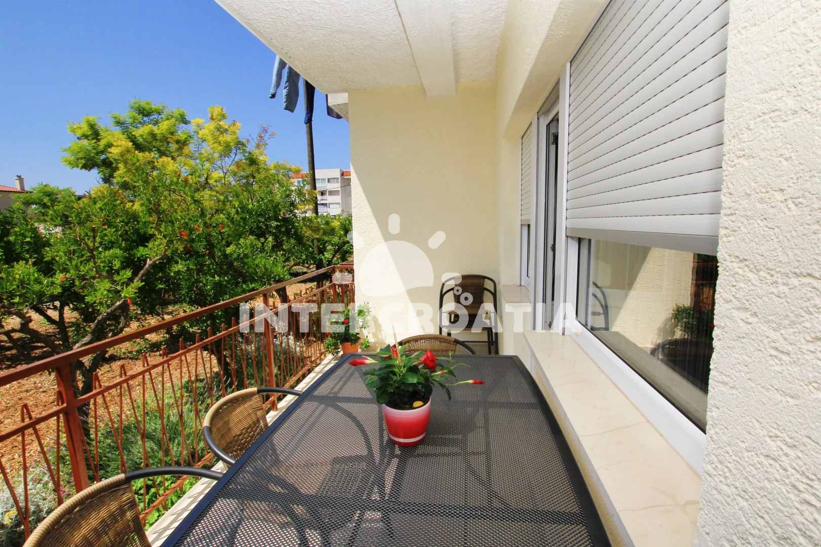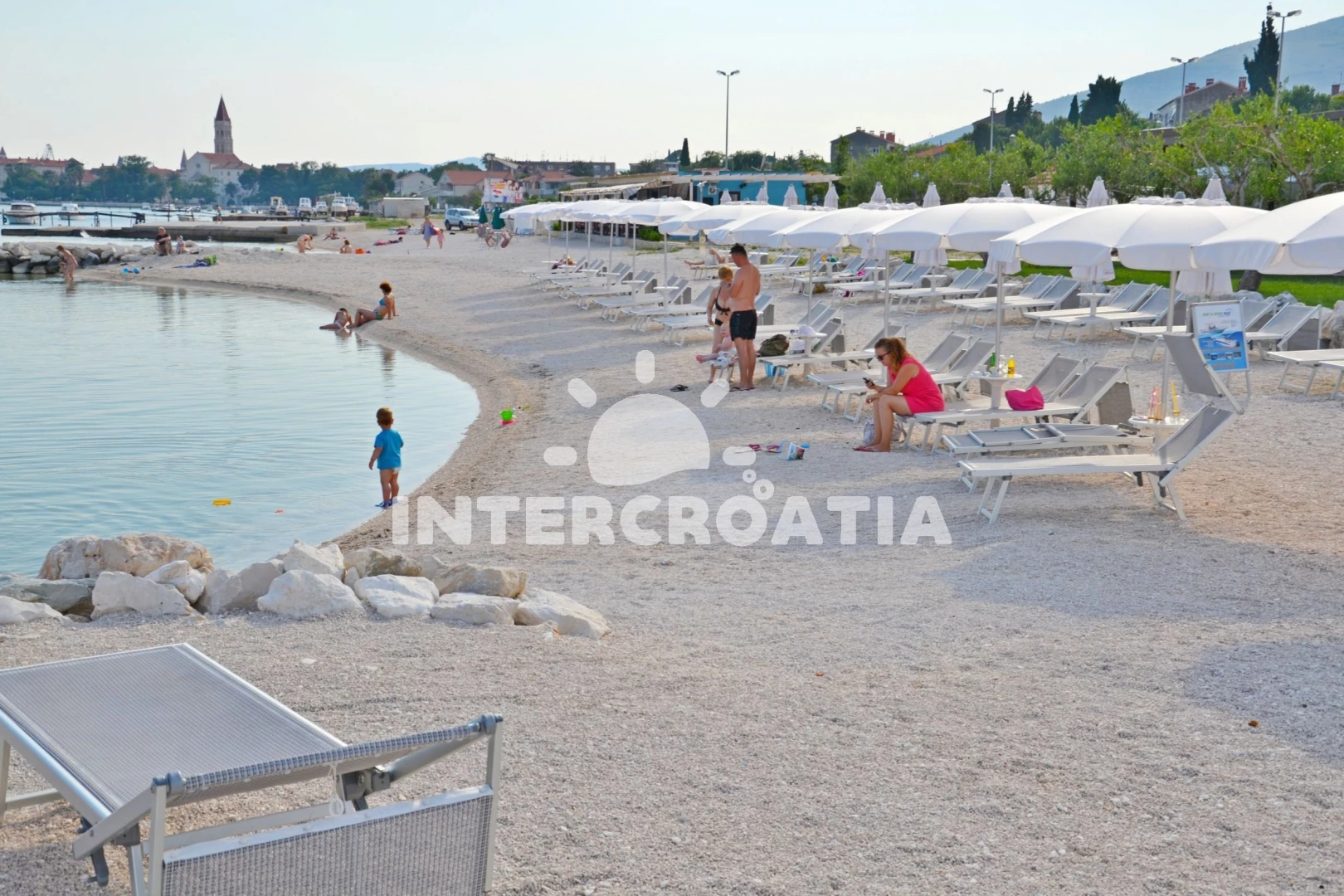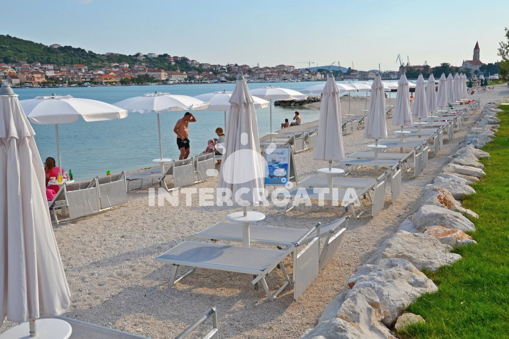 Vzdálenosti: Moře 500 m, pláž 500 m (oblázky), supermarket 100 m, veřejná doprava 500 m, lékárna 500 m, pošta 500 m, banka 500 m, půjčovna kol 600 m, muzeum 600 m, bar 600 m, restaurace 600 m, čerpací stanice 600 m, směnárna 600 m, centrum 600 m, diskotéka 700 m, ambulance 1 km, potápění 1,5 km, tenisové kurty 2 km, letiště (Split) 4 km, trajekt (Split) 22,0 km,
