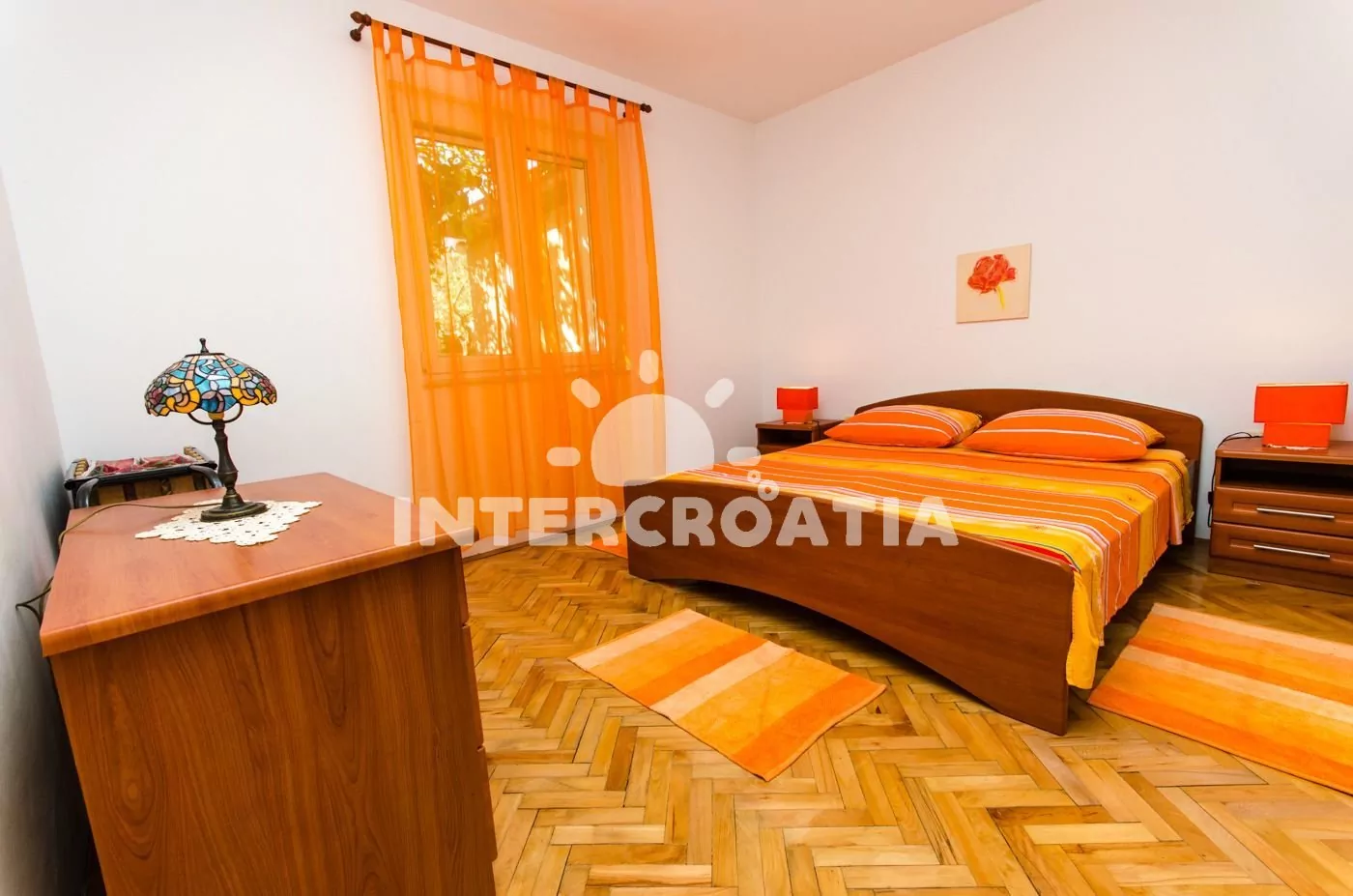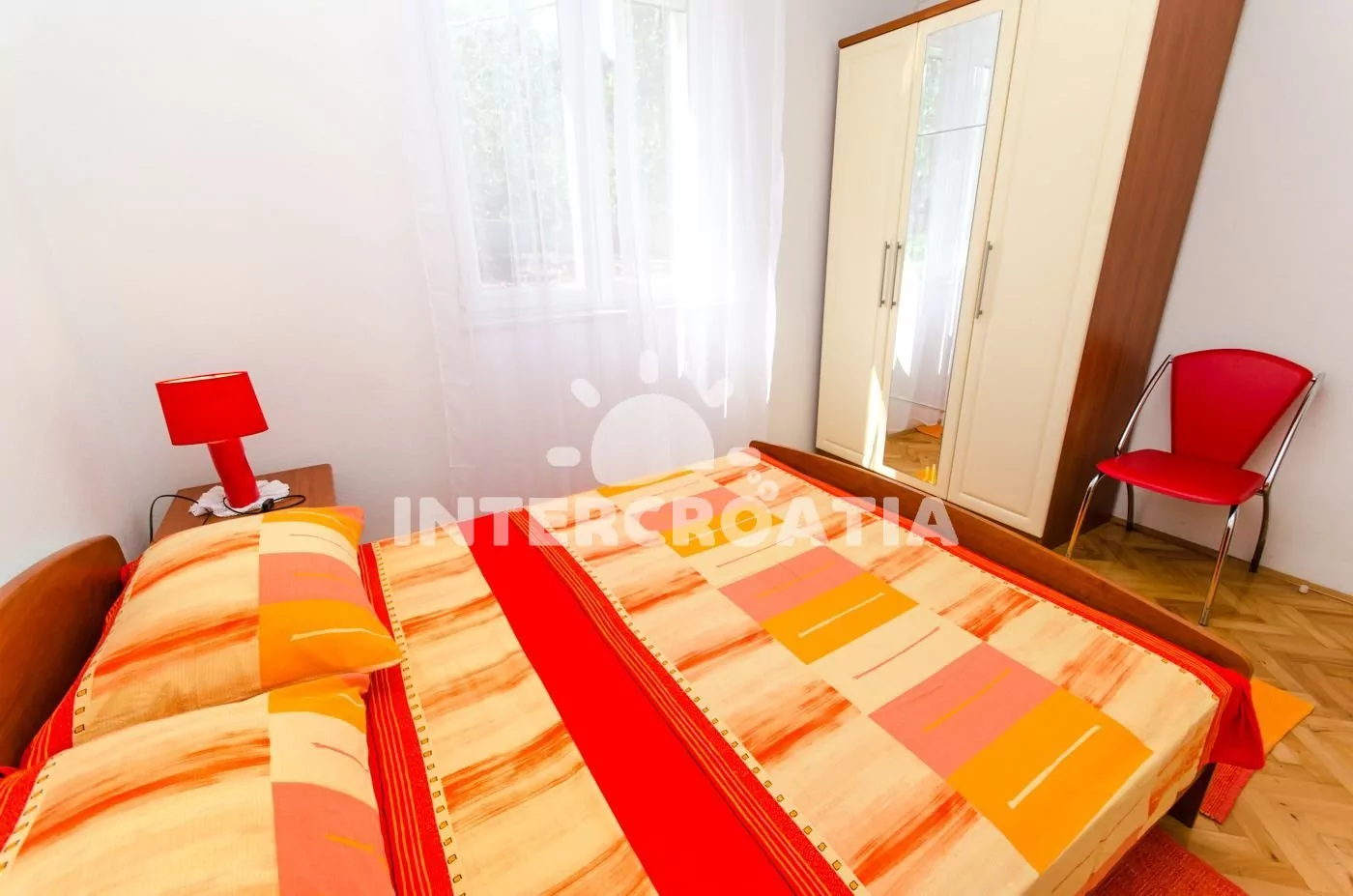 Ve Střední Dalmácii, 2,7 km severozápadně od Dalmatské osady Okrug Gornji a 3,4 km na východ od menšího městečka Mastrinka. Pláž leží 400 m od apartmánu.