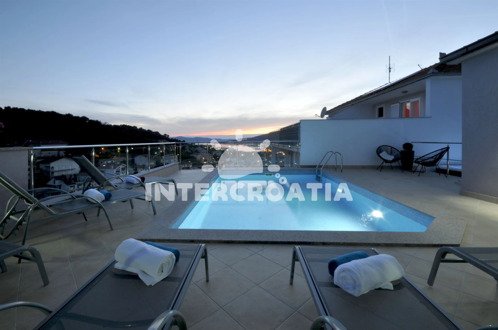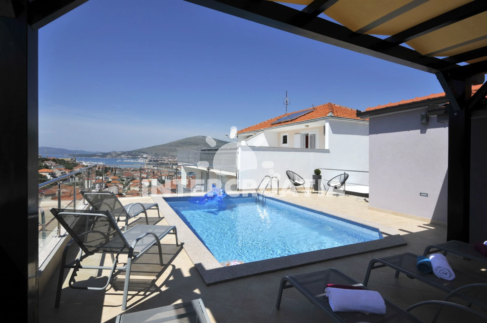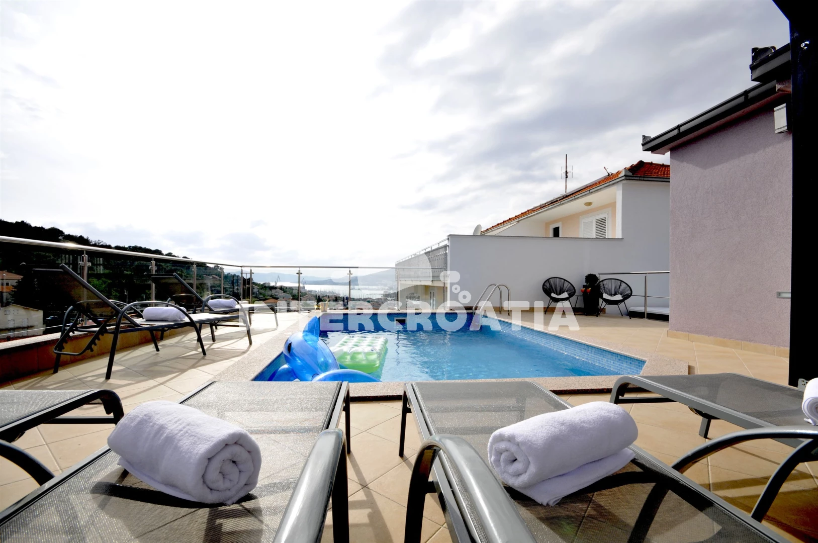 Vila (200 m2) s balkonem, a výhledem na moře. Nachází se ve dvou patrech objektu. Vila má 4 ložnice a je vhodná pro až 8 osob. Kuchyňská linka je vybavena varnou deskou, kávovarem, toustovačem, troubou, myčkou na nádobí, mikrovlnnou troubou, rychlovarnou konvicí, nádobím, lednicí, mrazákem. K dispozici televize. První koupelna se sprchovým koutem, umyvadlem, fénem a WC. Druhá koupelna se sprchovým koutem, umyvadlem, fénem a WC. Třetí koupelna se sprchovým koutem, umyvadlem, fénem a WC. Čtvrtá koupelna se sprchovým koutem, umyvadlem, fénem a WC.