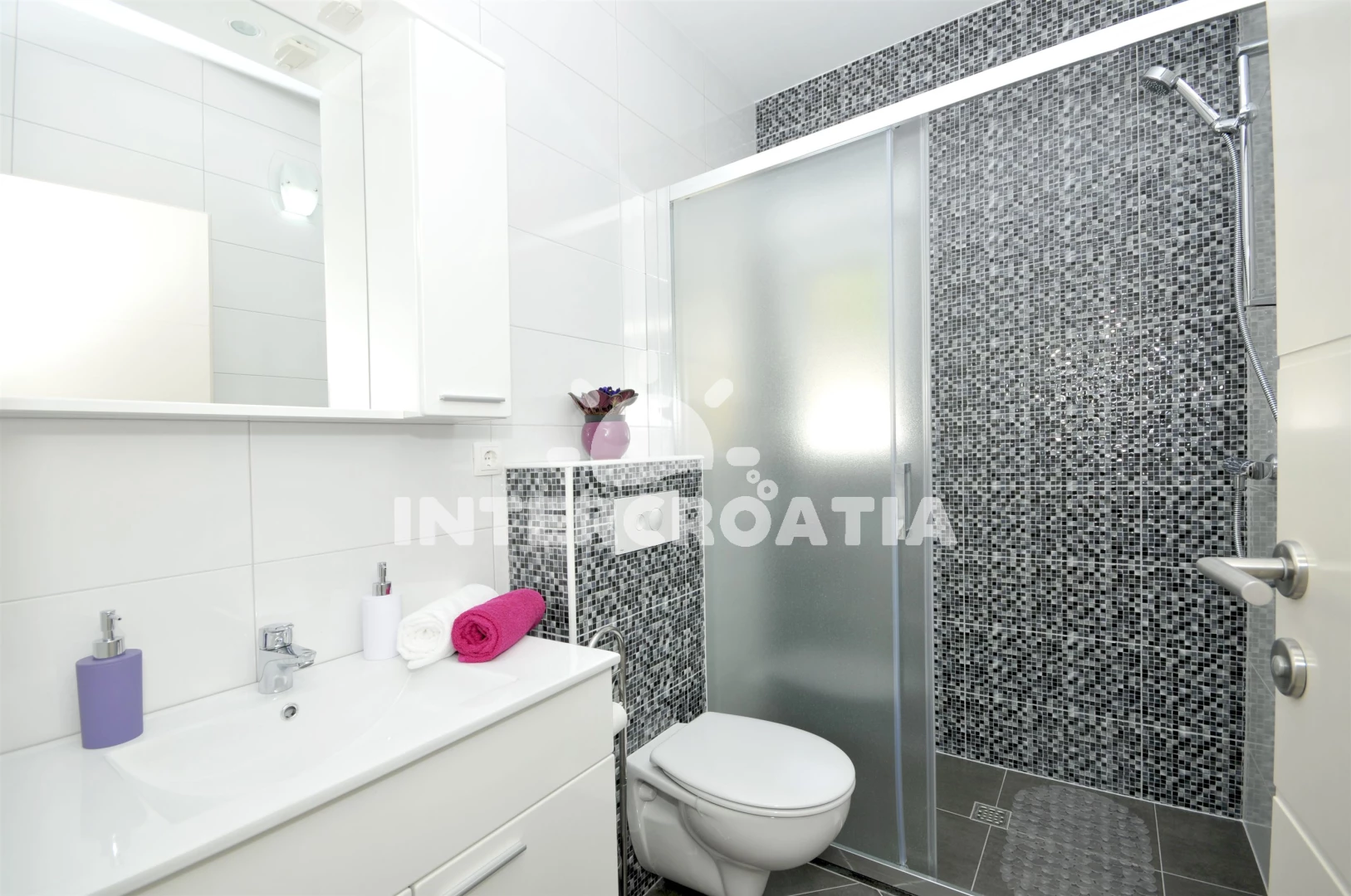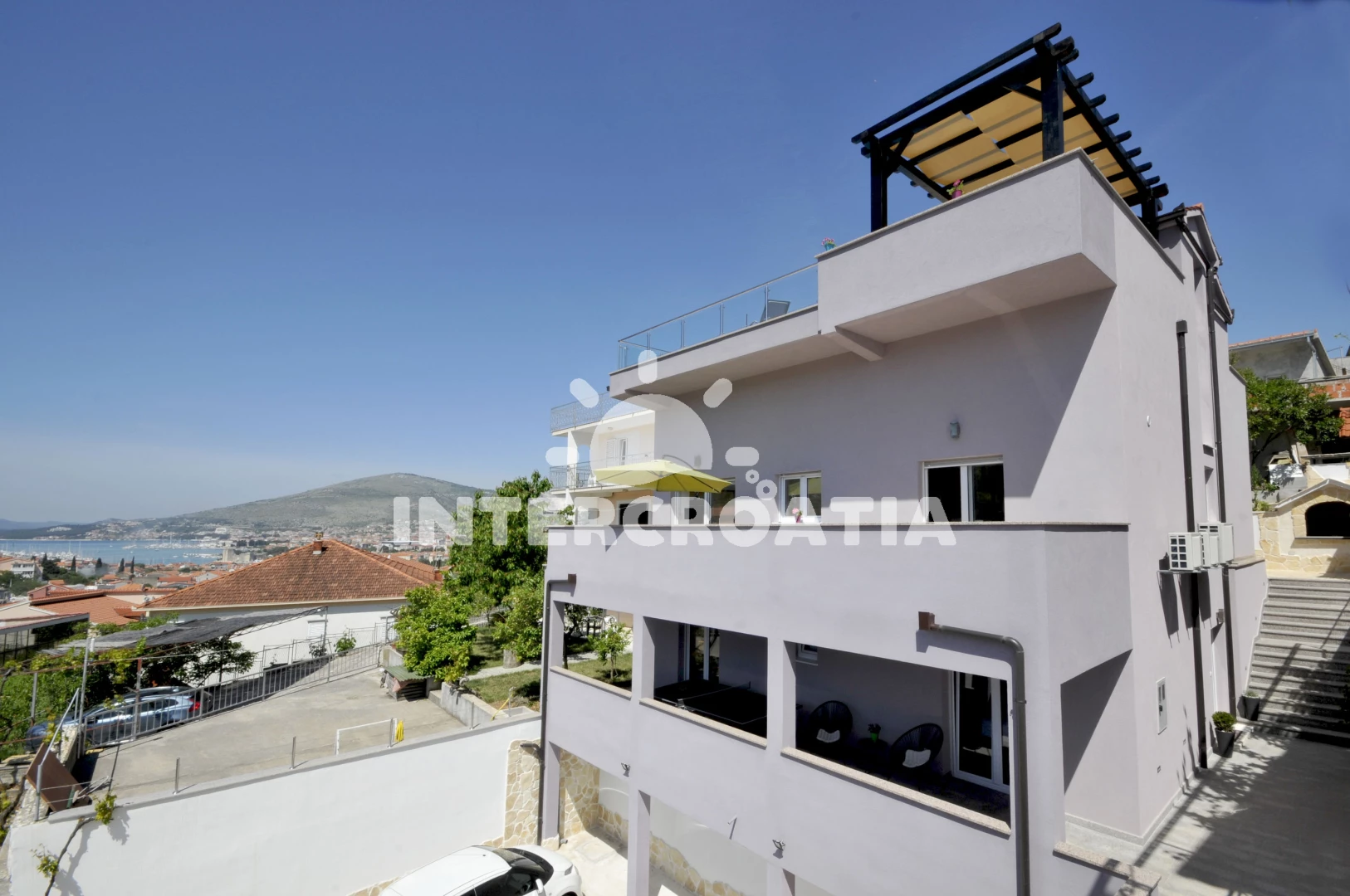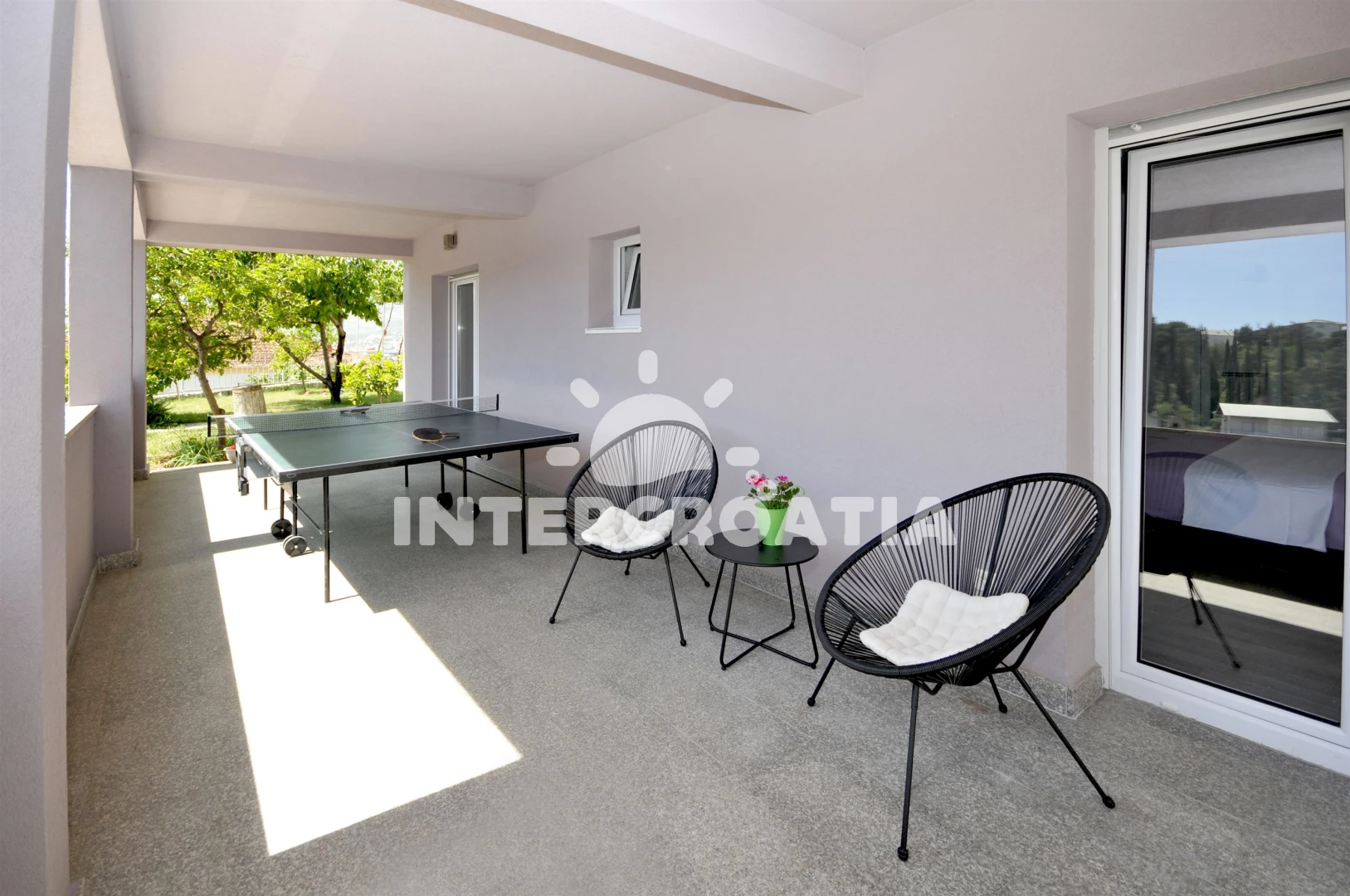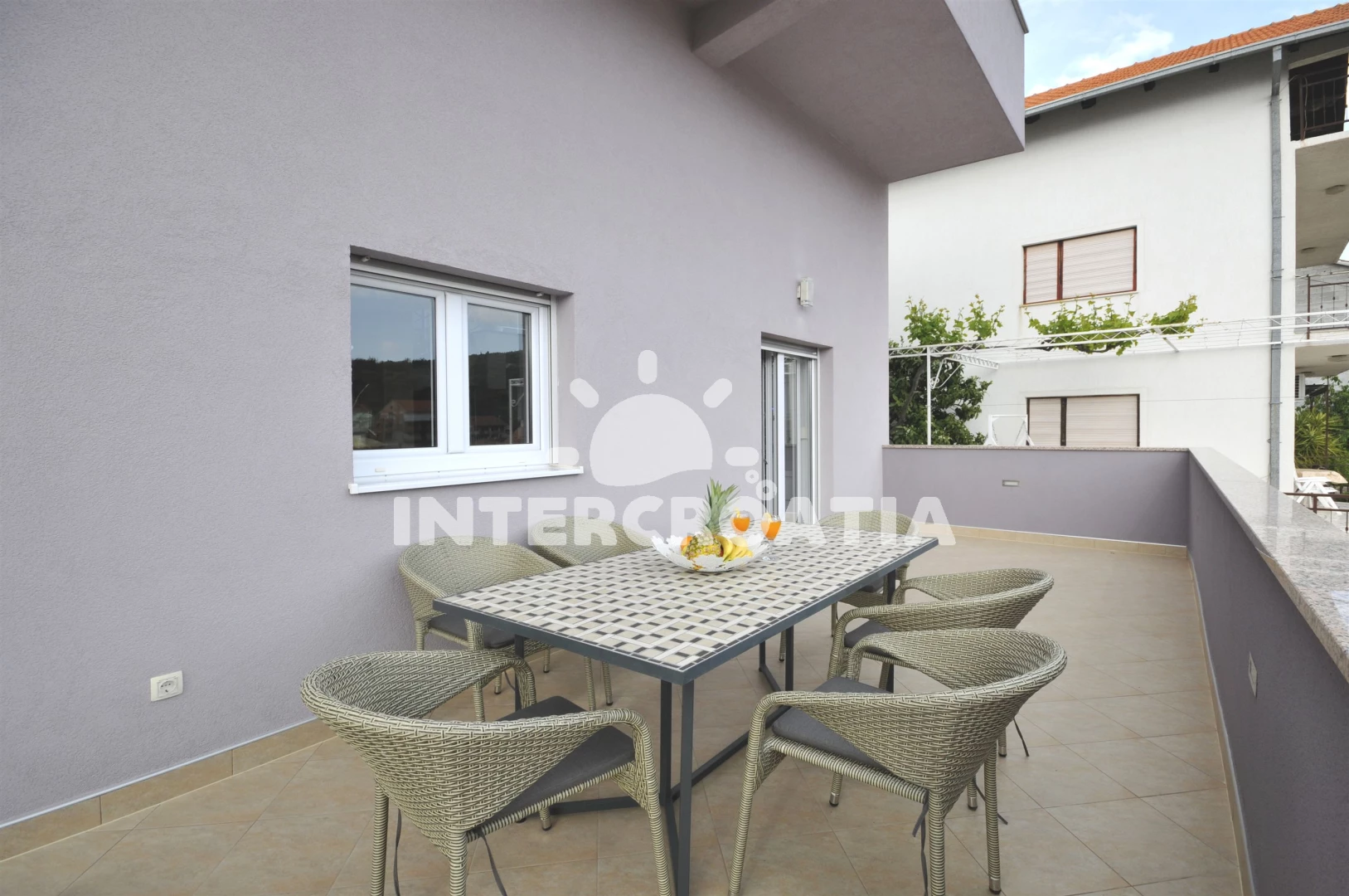 Vzdálenosti: Moře 500 m, pláž 800 m (oblázková a betonové desky), supermarket 500 m, restaurace 500 m, půjčovna motorových člunů 800 m, bar 800 m, veřejná doprava 800 m, půjčovna kol 900 m, lékárna 900 m, muzeum 900 m, směnárna 900 m, centrum 910 m, pošta 1 km, banka 1 km, ambulance 1,1 km, čerpací stanice 2 km, potápění 3 km, tenisové kurty 3 km, letiště (Split) 4 km, trajekt (Split) 25,0 km,
