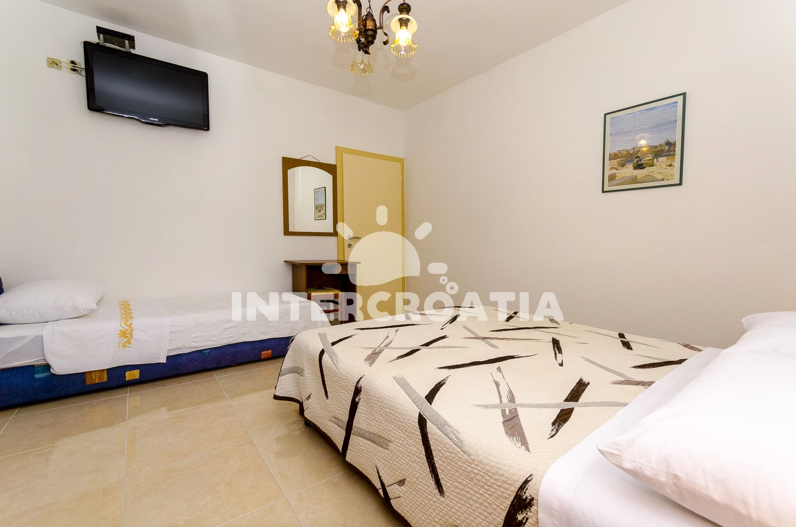 Vzdálenosti: Moře 15 m, pláž 50 m (oblázky), supermarket 200 m, půjčovna kol 200 m, směnárna 250 m, restaurace 250 m, půjčovna motorových člunů 250 m, bar 250 m, diskotéka 250 m, centrum 310 m, muzeum 400 m, lékárna 401 m, pošta 500 m, veřejná doprava 500 m, banka 500 m, ambulance 800 m, čerpací stanice 1 km, letiště (Split) 7 km, trajekt (Split) 22 km,