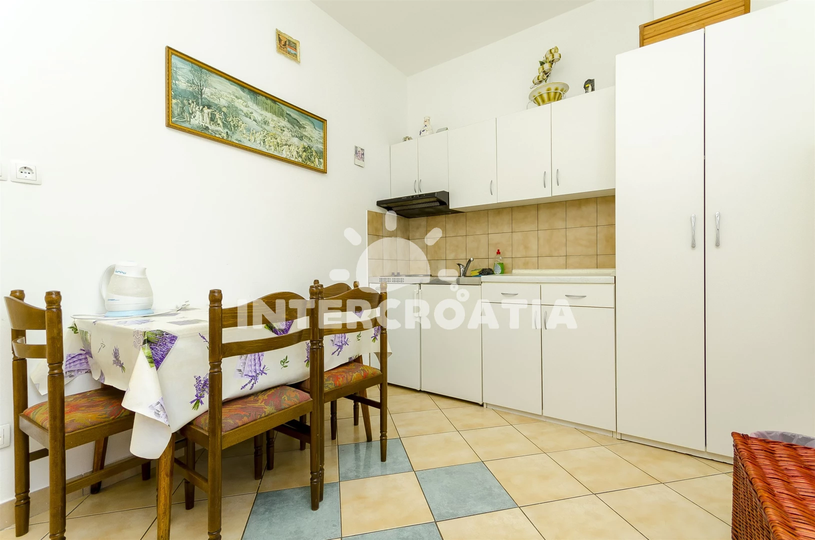 Vzdálenosti: Moře 15 m, pláž 50 m (oblázky), supermarket 200 m, půjčovna kol 200 m, směnárna 250 m, restaurace 250 m, půjčovna motorových člunů 250 m, bar 250 m, diskotéka 250 m, centrum 310 m, muzeum 400 m, lékárna 401 m, pošta 500 m, veřejná doprava 500 m, banka 500 m, ambulance 800 m, čerpací stanice 1 km, letiště (Split) 7 km, trajekt (Split) 22 km,