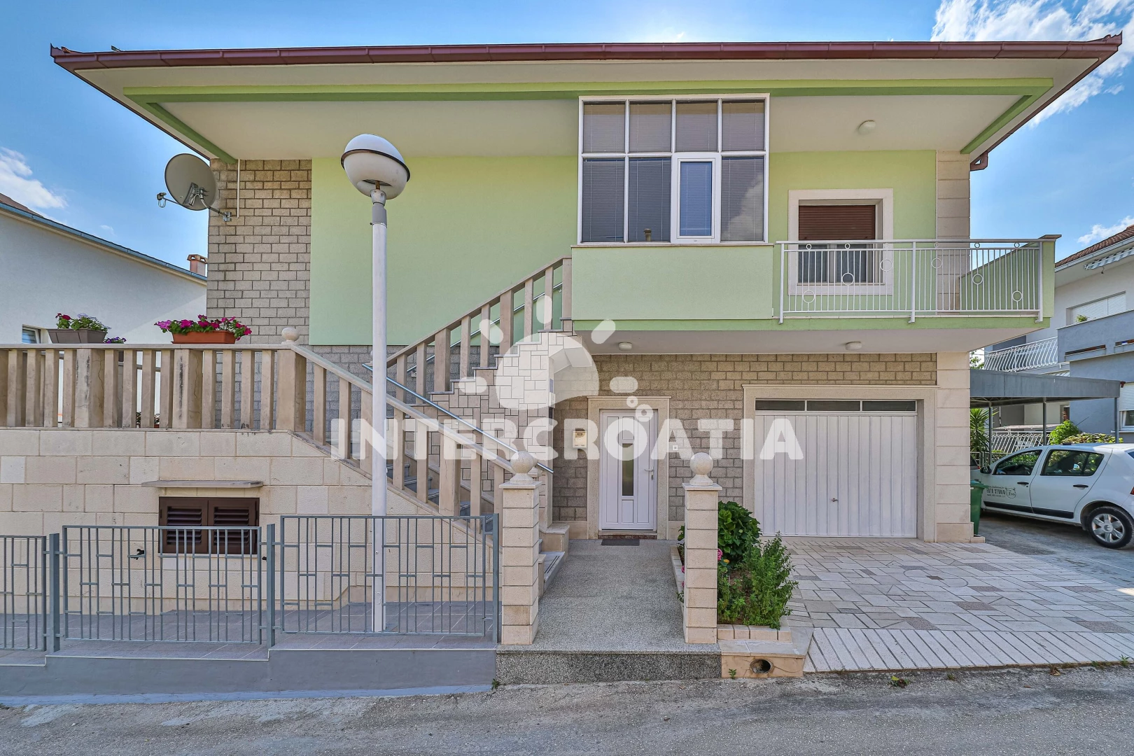 Vzdálenosti: Moře 2 km, pláž 2 km (písčitá a oblázková), supermarket 400 m, ambulance 1 km, směnárna 1 km, centrum 1 km, restaurace 1 km, muzeum 1 km, veřejná doprava 1 km, banka 1 km, bar 1 km, půjčovna kol 1 km, pošta 1 km, lékárna 1 km, půjčovna motorových člunů 1,5 km, letiště (Split) 1,5 km, čerpací stanice 1,5 km, trajekt (Trogir) 1,5 km, diskotéka 2 km, tenisové kurty 2,5 km, mini golf 2,5 km, potápění 3,8 km, park Plitvice 58 km,