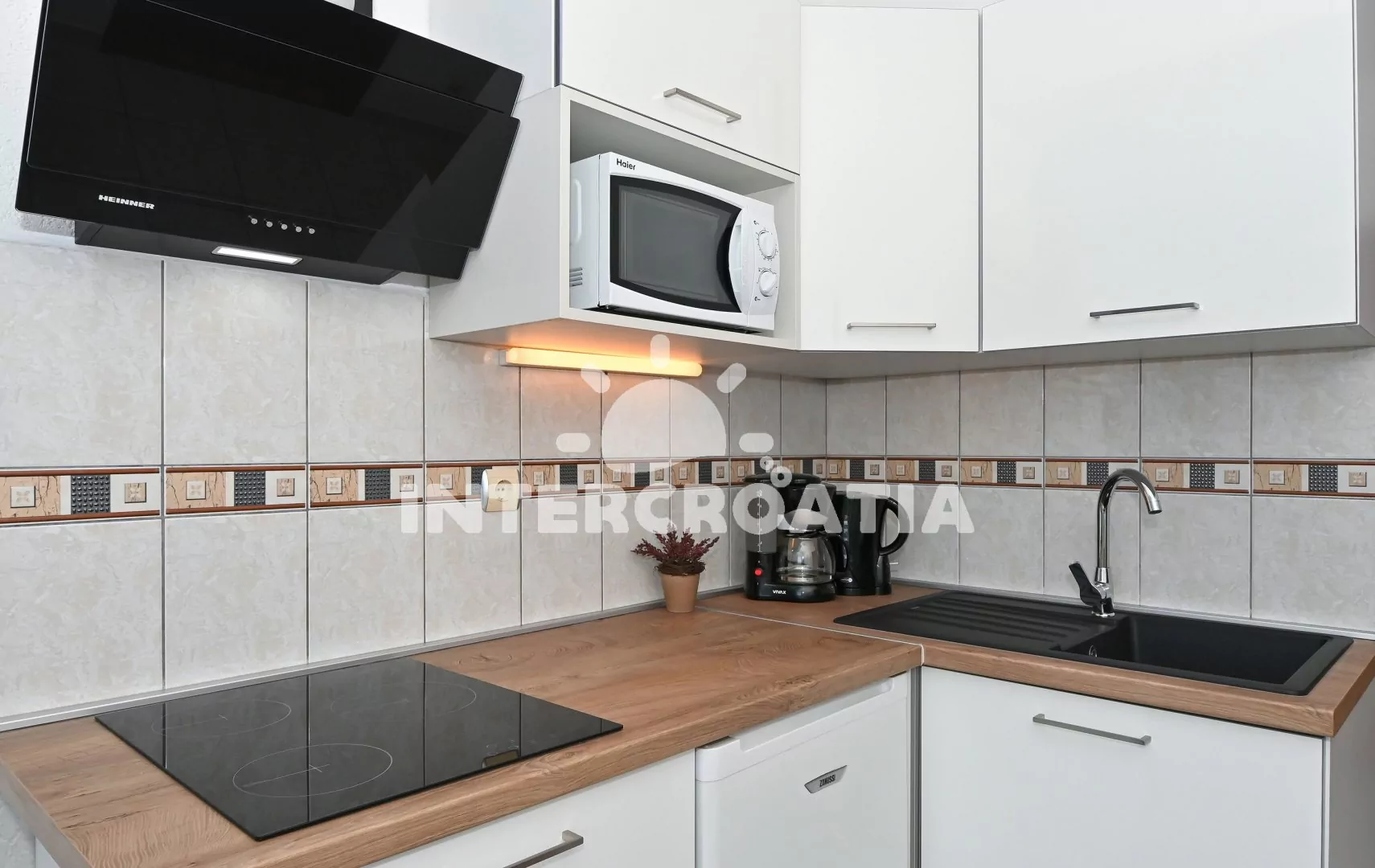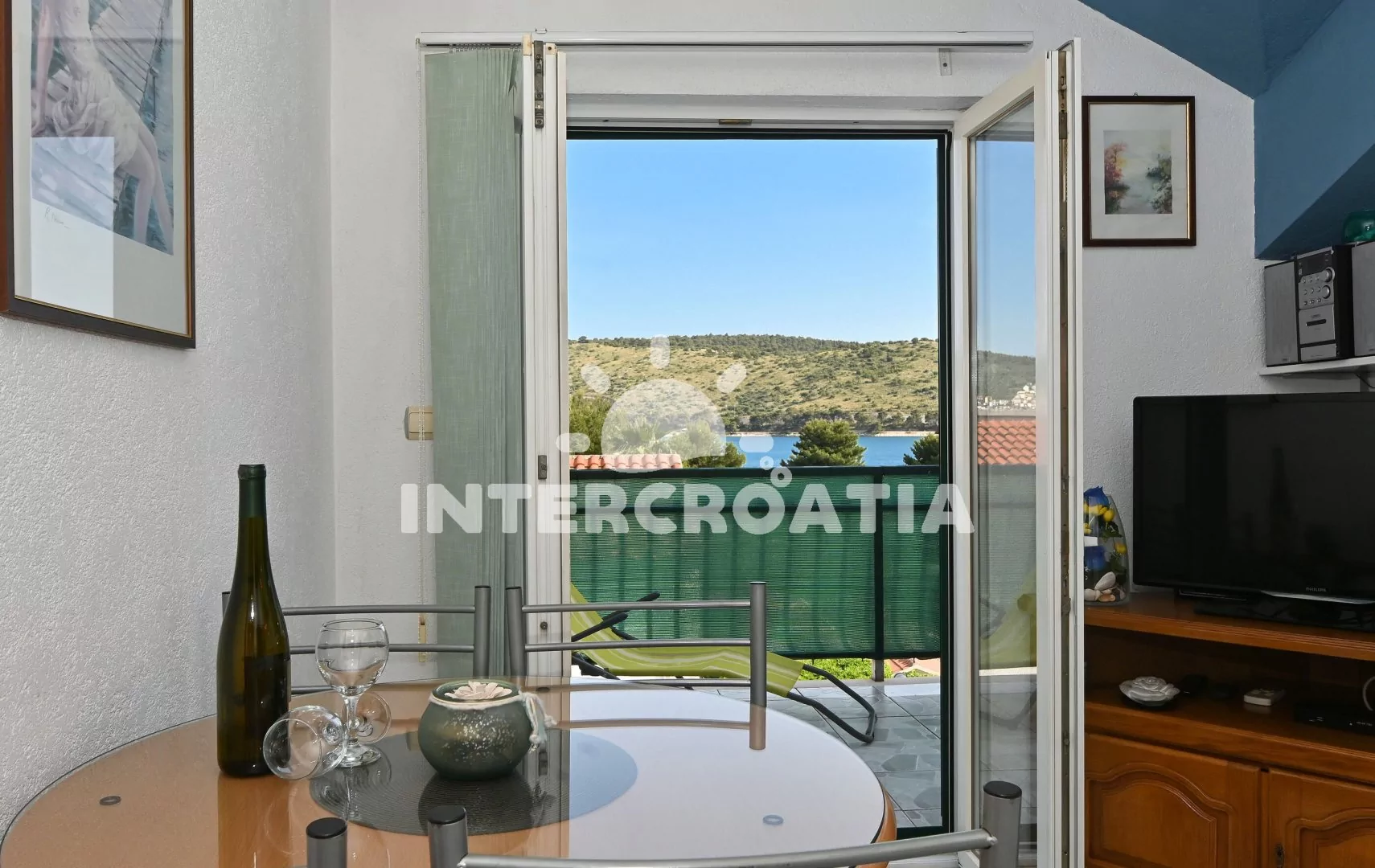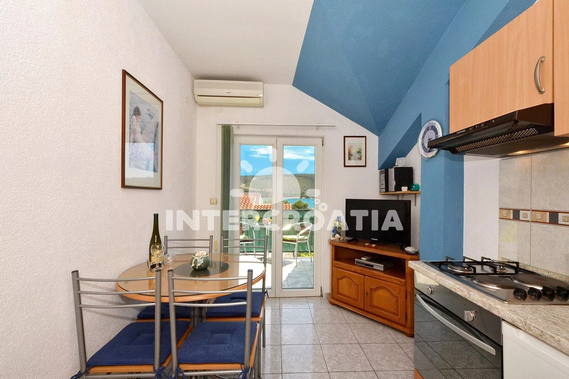 Apartmán s terasou, výhledem na moře a pláž, nachází se v druhém patře domu a je vhodný pro 2 osoby. Obývací místnost je spojena s kuchyní. Kuchyňská linka je vybavena sporákem, digestoří, troubou,…