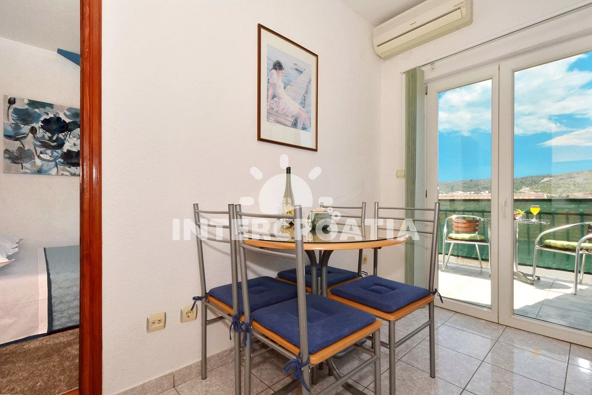 Moderně zařízený apartmán s terasou a výhledem na moře.