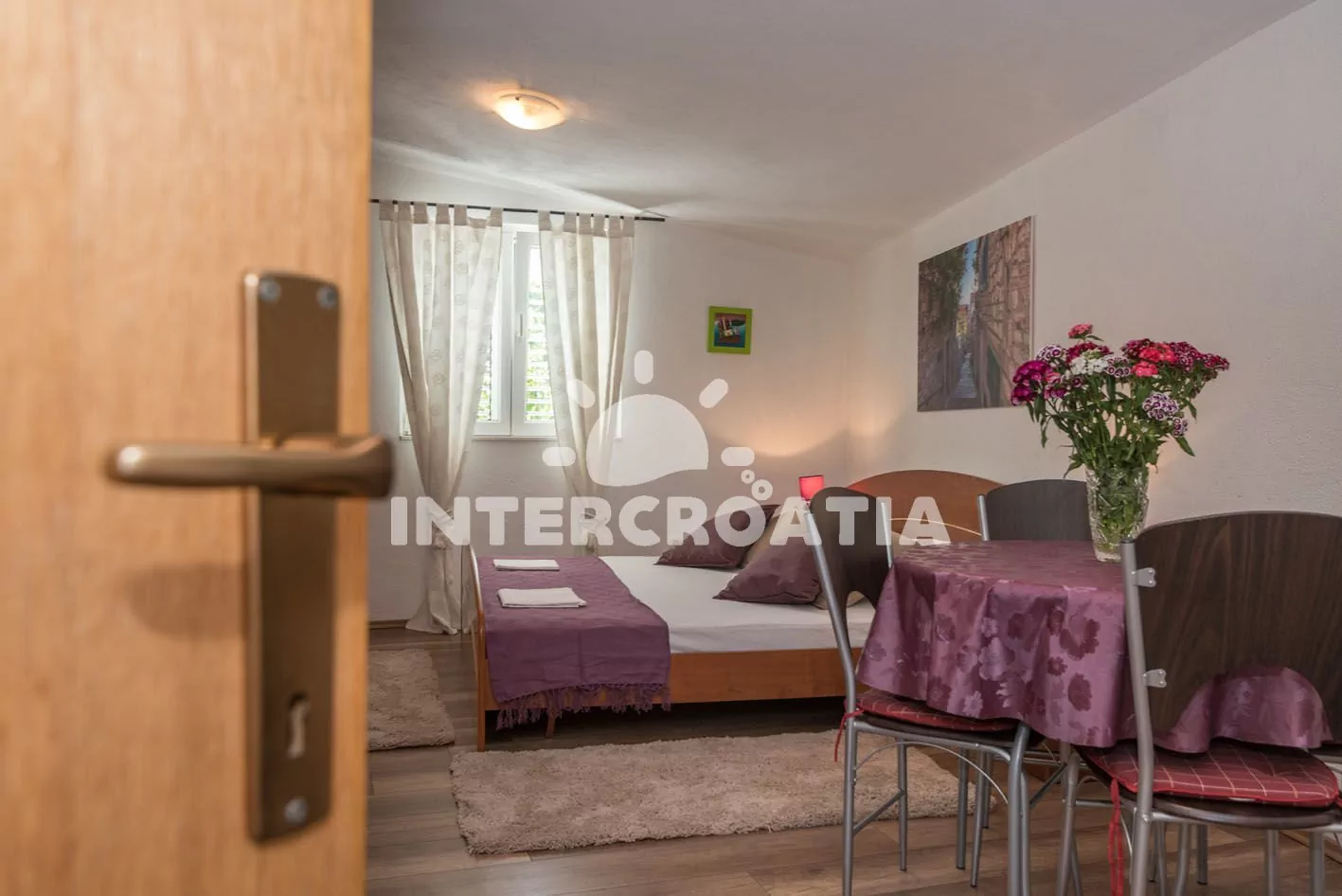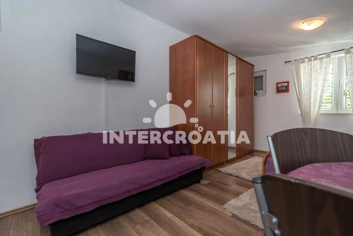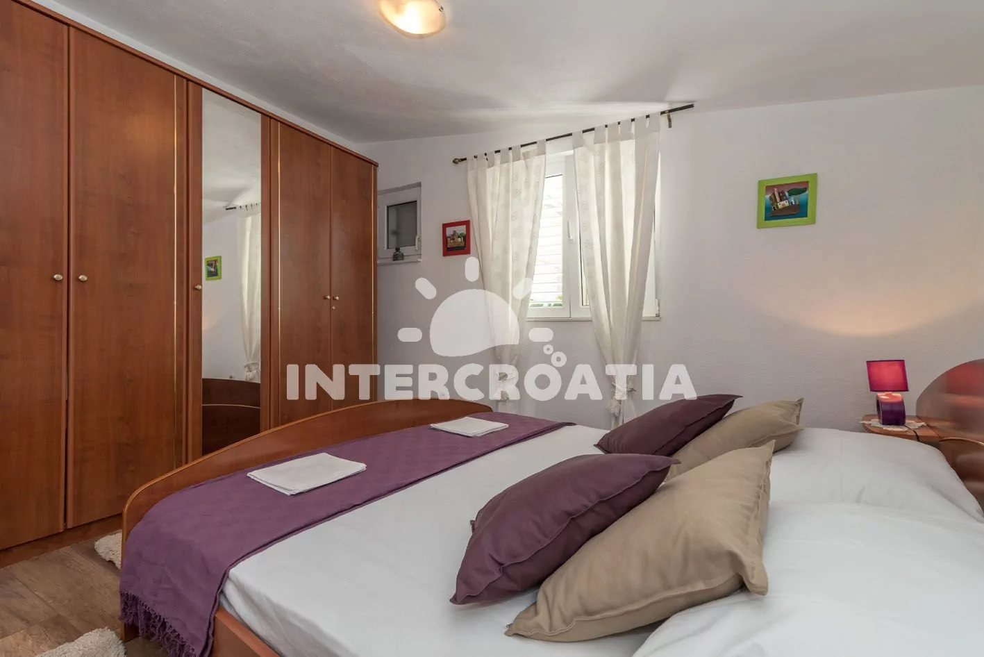 Velmi dobře umístěný apartmánový dům s docházkovou vzdáleností do historického centra Trogiru. Dům má oplocený pozemek se společnou zahradou, terasou, posezením a zděným grilem. Parkovací místa pro automobily u domu.