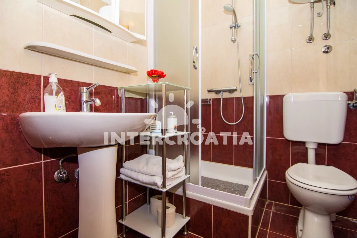 Apartmán (30 m2) typu studio, s balkonem a výhledem na moře. Apartmán se nachází v 1. patře domu a je vhodný pro 2 až 3 osoby. Obývací místnost je spojena s kuchyní. Kuchyňská linka je vybavena…