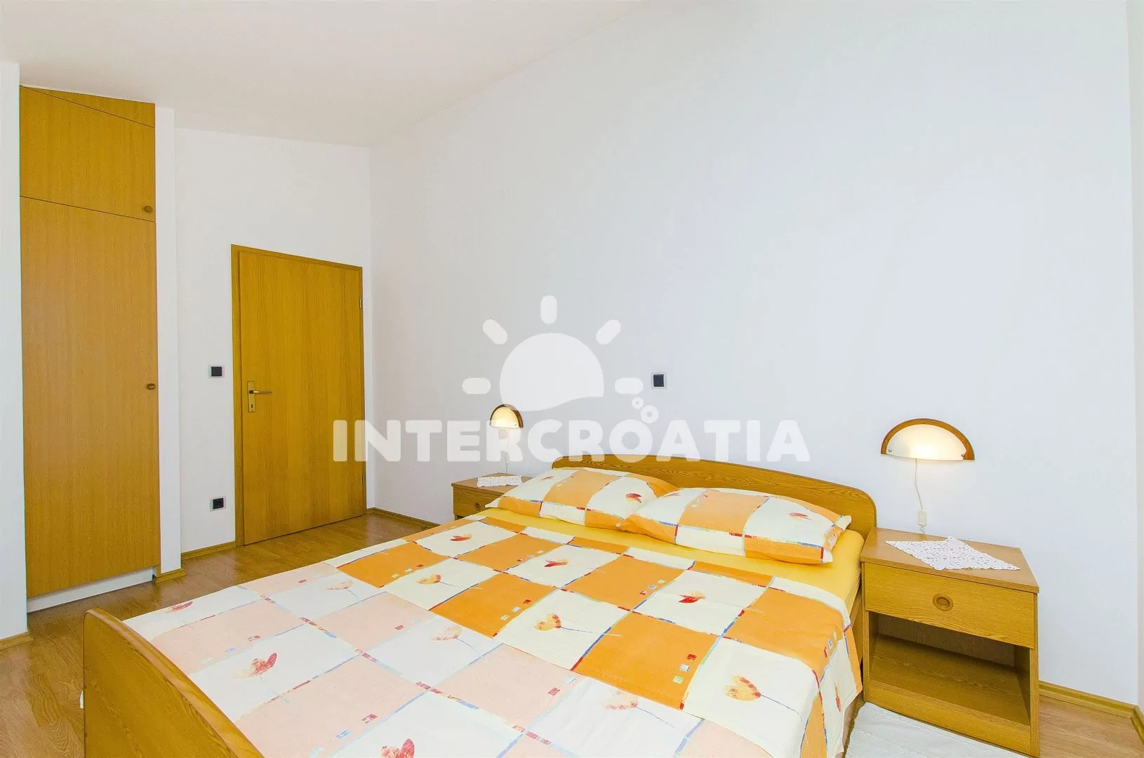 Apartmán (40 m2) s balkonem, venkovním posezením a výhledem na moře se nachází ve 2. patře domu. Apartmán má 1 ložnici a je vhodný pro 2 až 3 osoby. Obývací pokoj je spojený s kuchyní. Kuchyňská linka je vybavena dvouplotýnkovým vařičem, rychlovarnou konvicí, kávovarem, nádobím a lednicí s mrazákem. Obývací pokoj s jídelním stolem, pohovkou (rozložitelná na extra lůžko pro 1 osobu), televizí se satelitním programem, klimatizací a vstupem na balkon. Ložnice s dvoulůžkem a vstupem na balkon. Koupelna se sprchovým koutem, umyvadlem a wc. Hostům je k dispozici parkování u objektu zdarma.