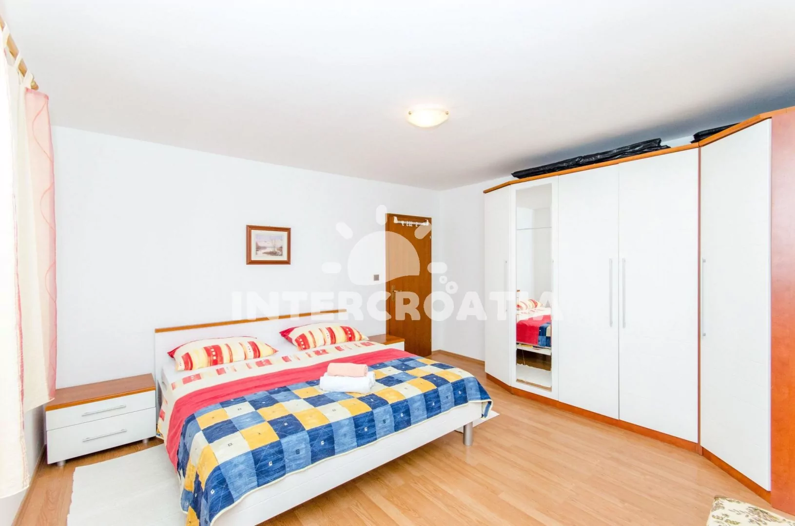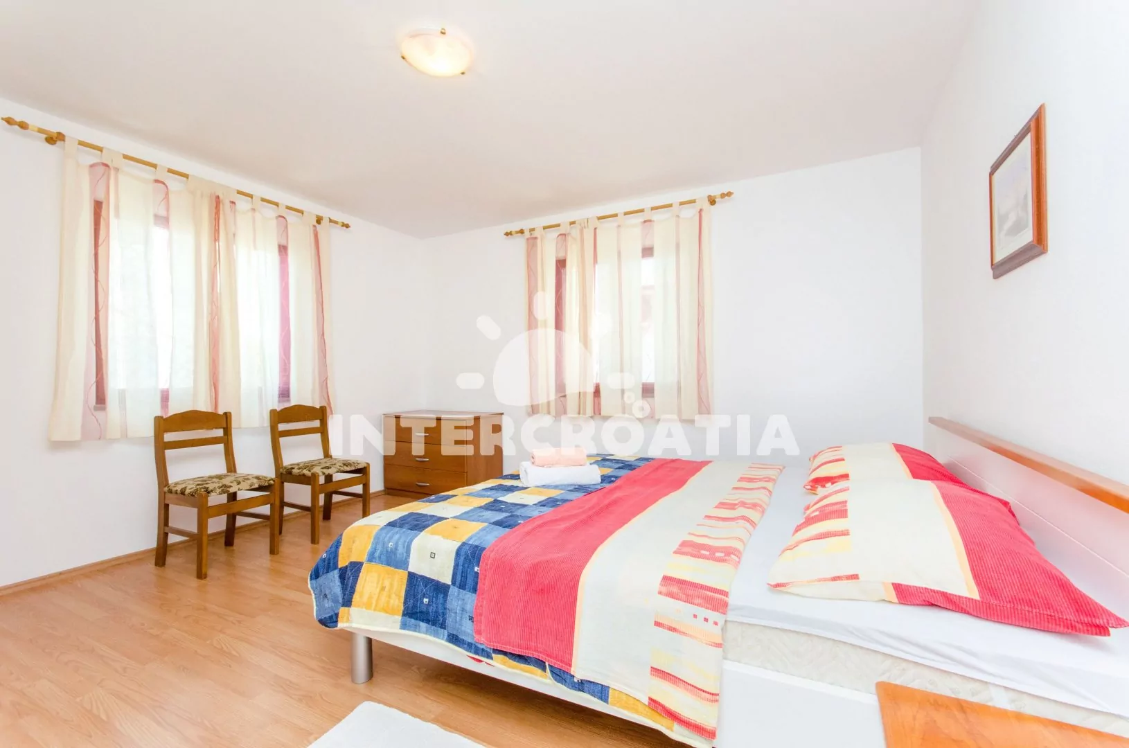 Trogir je významné centrum středodalmátského pobřeží. Letovisko je proslulé cennými památkami, díky kterým patří na seznam Unesco. Návštěvníci tam najdou spojení poklidné dovolené s kulturními zážitky. Vybrané ubytování je situované 130 m od azurového moře a oblázkové pláže. Mezi největší plusy této pláže patří docházková vzdálenost do centra a nafukovací atrakce na moři. V okolí je obchod, restaurace a bar. Krásné prostředí ke koupání nabízí oblázková pláž Rožac. Přístup do moře je pozvolný, a pobřeží před sluníčkem chrání borovice. Výborné služby a oddech si užijí návštěvníci oblázkové pláže Okrug Gornji. Ta je dlouhá 2 km, takže si každý najde místo v soukromí. Smaragdové a čisté moře potěší milovníky potápění. V blízkosti jsou dva supermarkety, kavárny a restaurace. Do 10 minut se autem dostanete do centra Trogiru. Všem doporučujeme procházku křivolakými uličkami. Těm vévodí nádherné paláce a krásně zdobené budovy. Uchvátí vás katedrála sv. Vavřince ze 13. století, Radovanův portál, obranná věž sv. Marka, pevnost Kamerlengo a palác Lucićů. Fanoušci umění rádi navštíví tamní galerie a muzea. Trogirské kulturní léto je jedinečnou událostí, kdy se koná zábavný program, hudební festivaly a gastronomické dění. Split a Šibenik patří k populárním výletním cílům. Metropole lákají na památky a noční život. Naším tipem na celodenní výlet, kam se turisté rádi vrací, je Národní park Krka. Územím parku prochází naučné stezky. Návštěvníci se projdou panenskou přírodou, která se pyšní soustavou nádherných vodopádů.