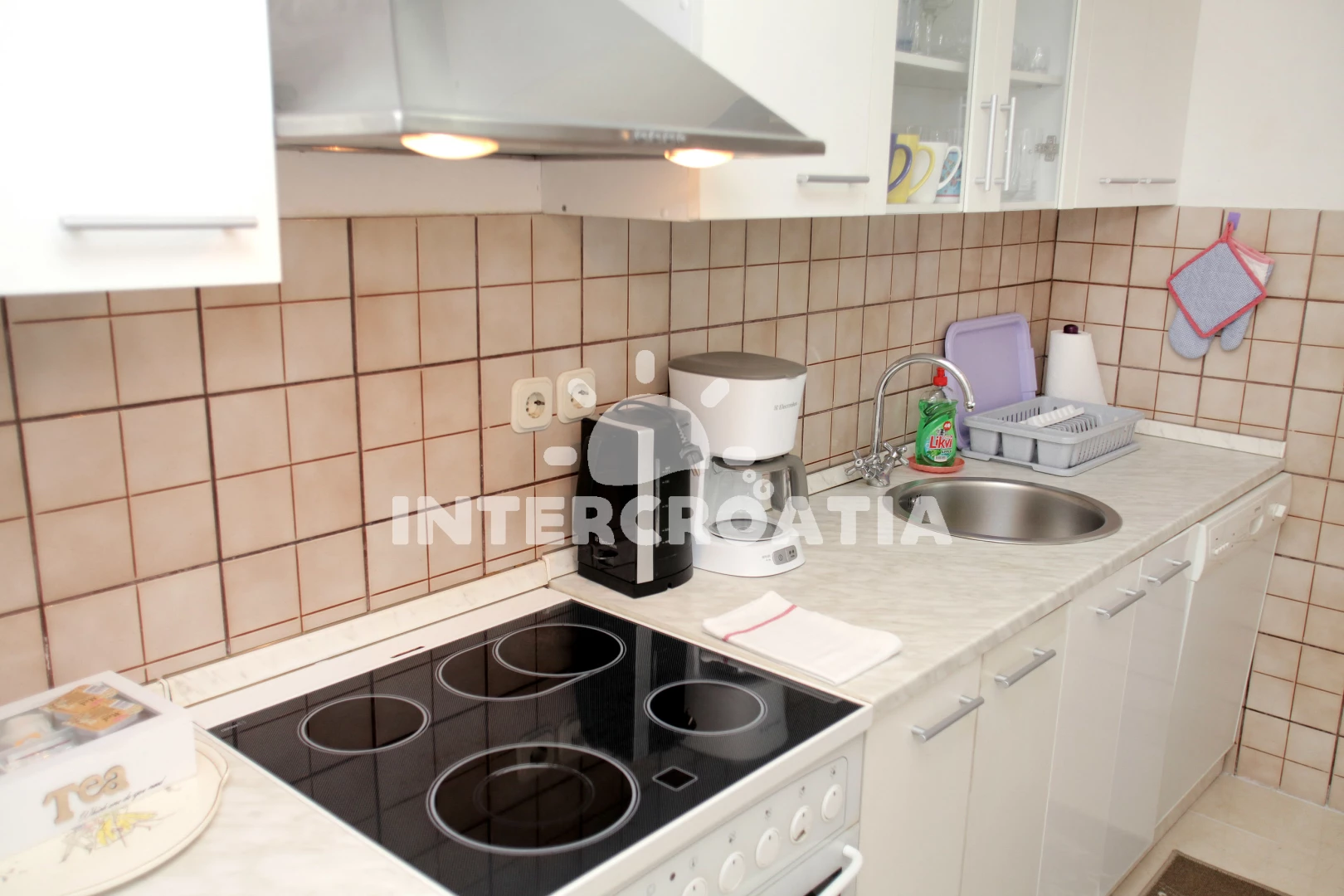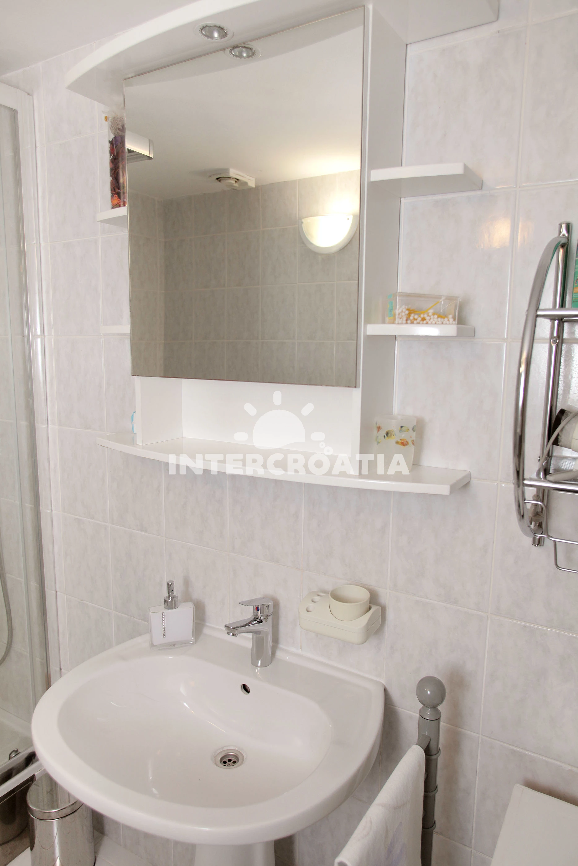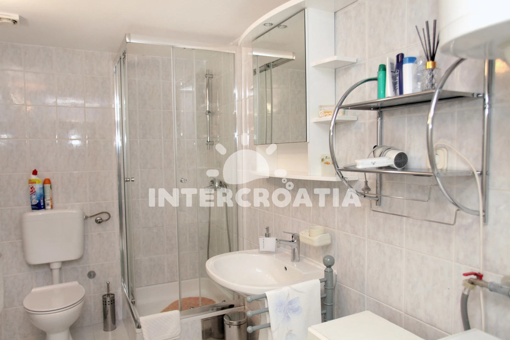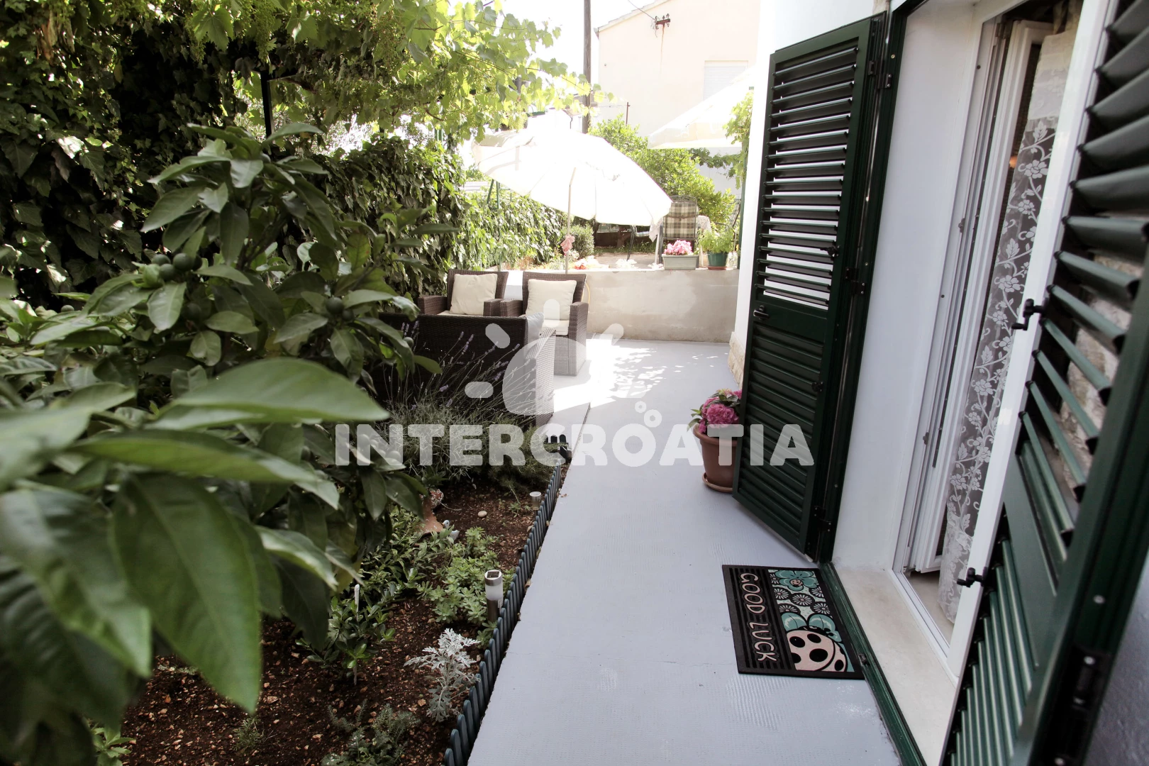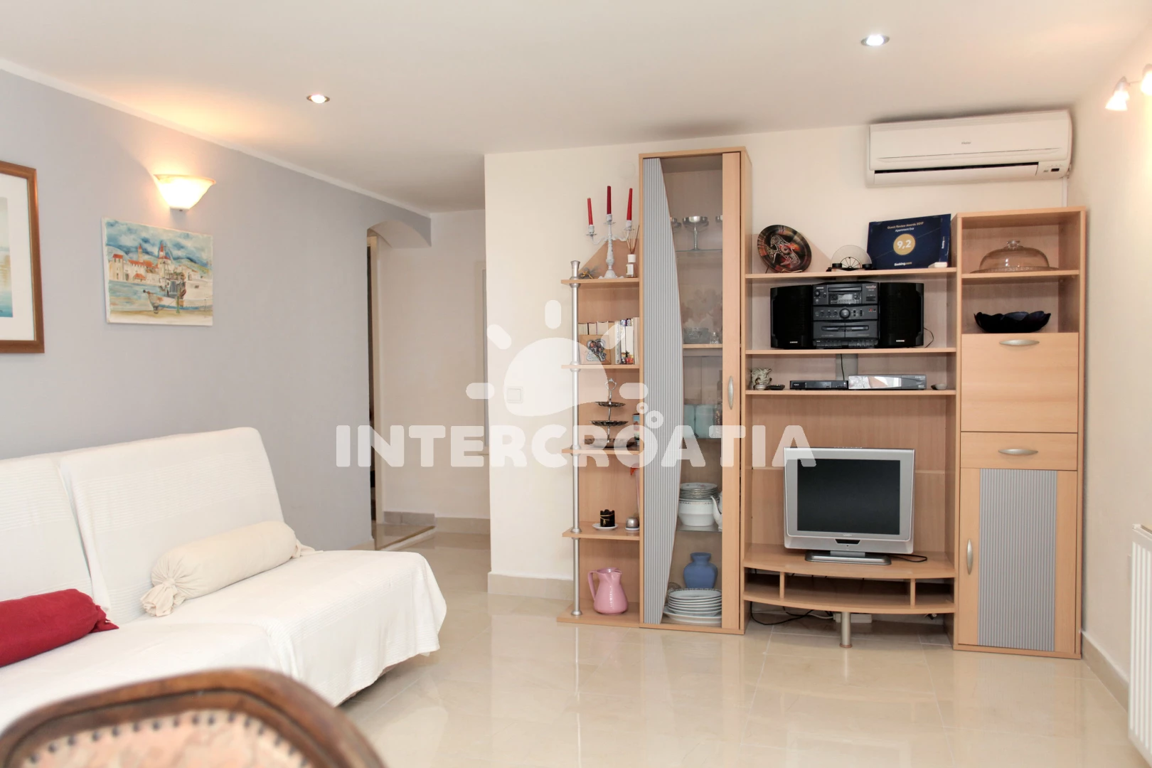 Vzdálenosti: Moře 80 m, pláž 80 m (skalnatá a oblázková), veřejná doprava 30 m, směnárna 100 m, marina 100 m, supermarket 100 m, restaurace 100 m, bar 200 m, diskotéka 200 m, půjčovna motorových člunů 200 m, půjčovna kol 200 m, pošta 300 m, lékárna 300 m, centrum 400 m, banka 400 m, muzeum 400 m, potápění 400 m, ambulance 500 m, čerpací stanice 2 km, letiště (Split) 5 km, trajekt (Split) 25 km,