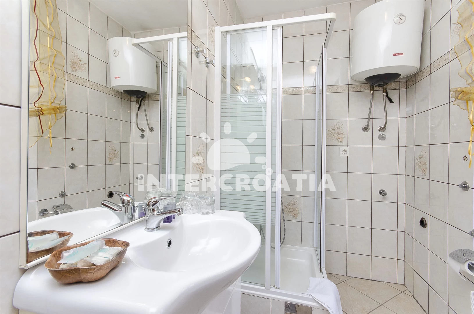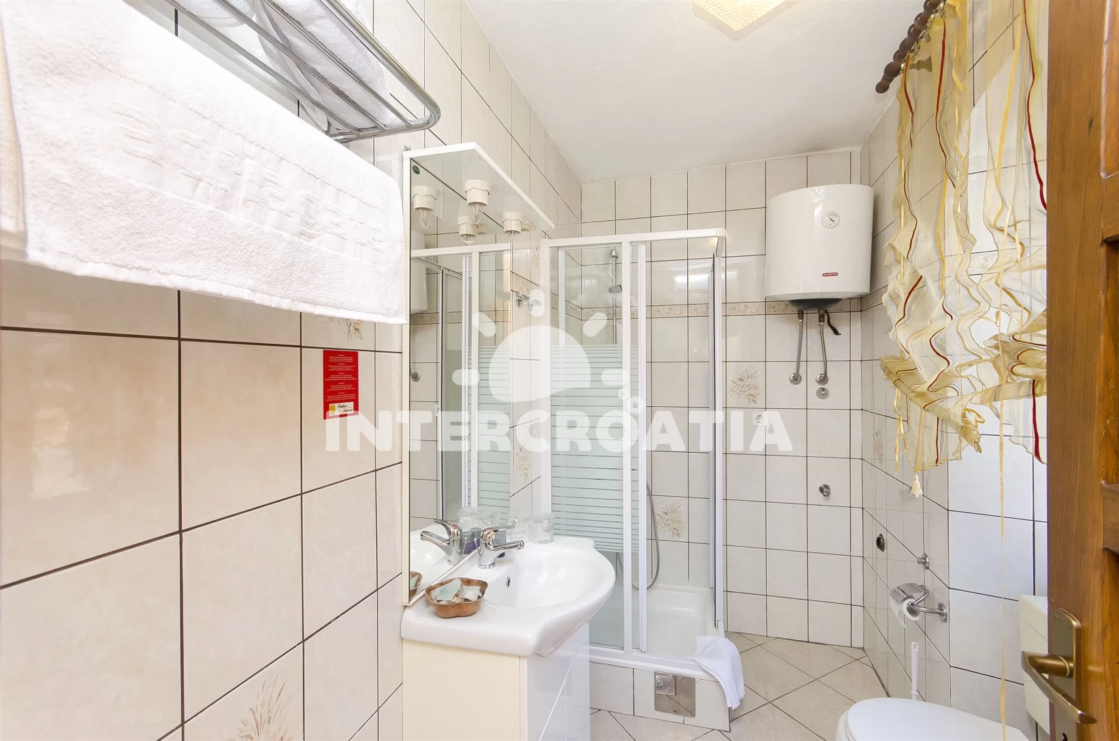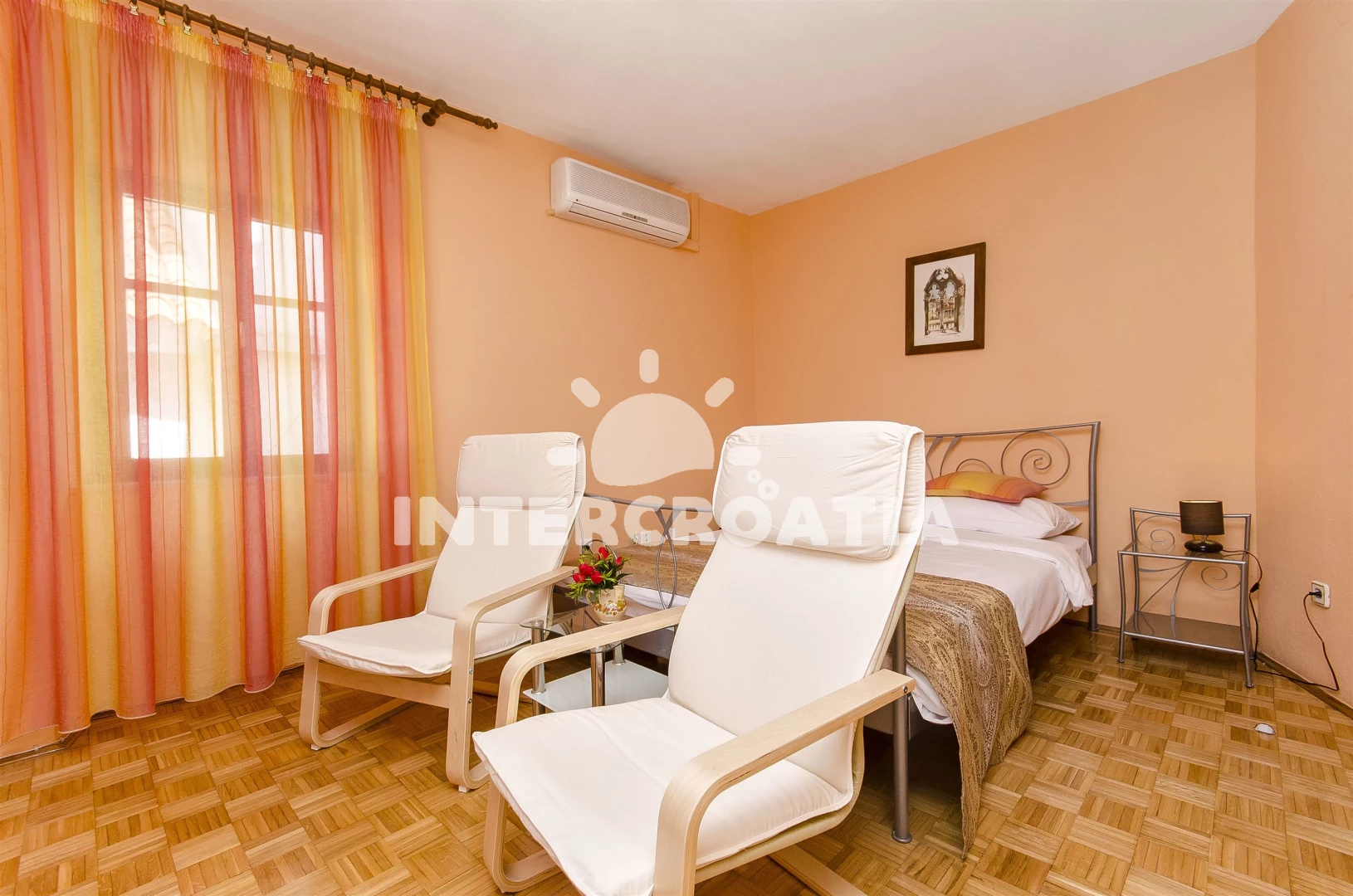 Vzdálenosti: centrum 0 m, Moře 20 m, pláž 500 m (oblázková a betonové desky), směnárna 10 m, bar 10 m, muzeum 20 m, banka 30 m, restaurace 50 m, pošta 50 m, veřejná doprava 50 m, supermarket 50 m, ambulance 300 m, lékárna 300 m, diskotéka 500 m, půjčovna kol 500 m, půjčovna motorových člunů 500 m, čerpací stanice 800 m, potápění 3 km, letiště (Split) 5 km, trajekt (Split) 25 km,