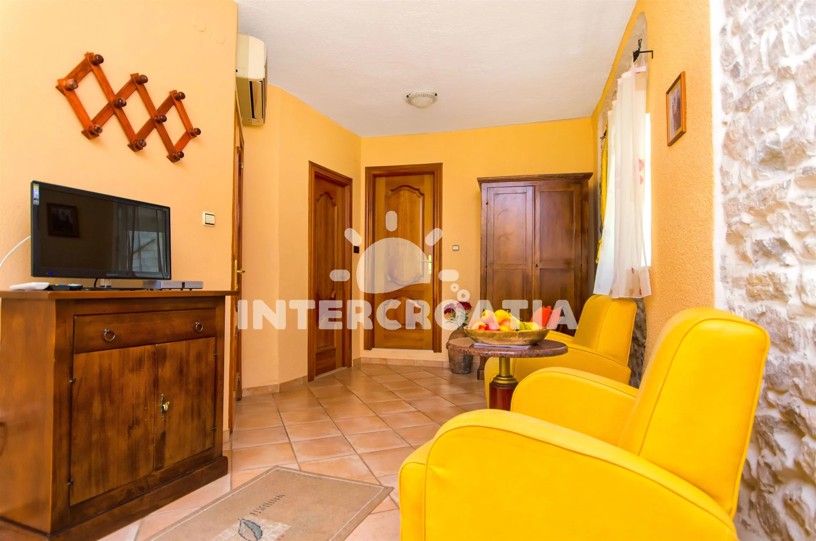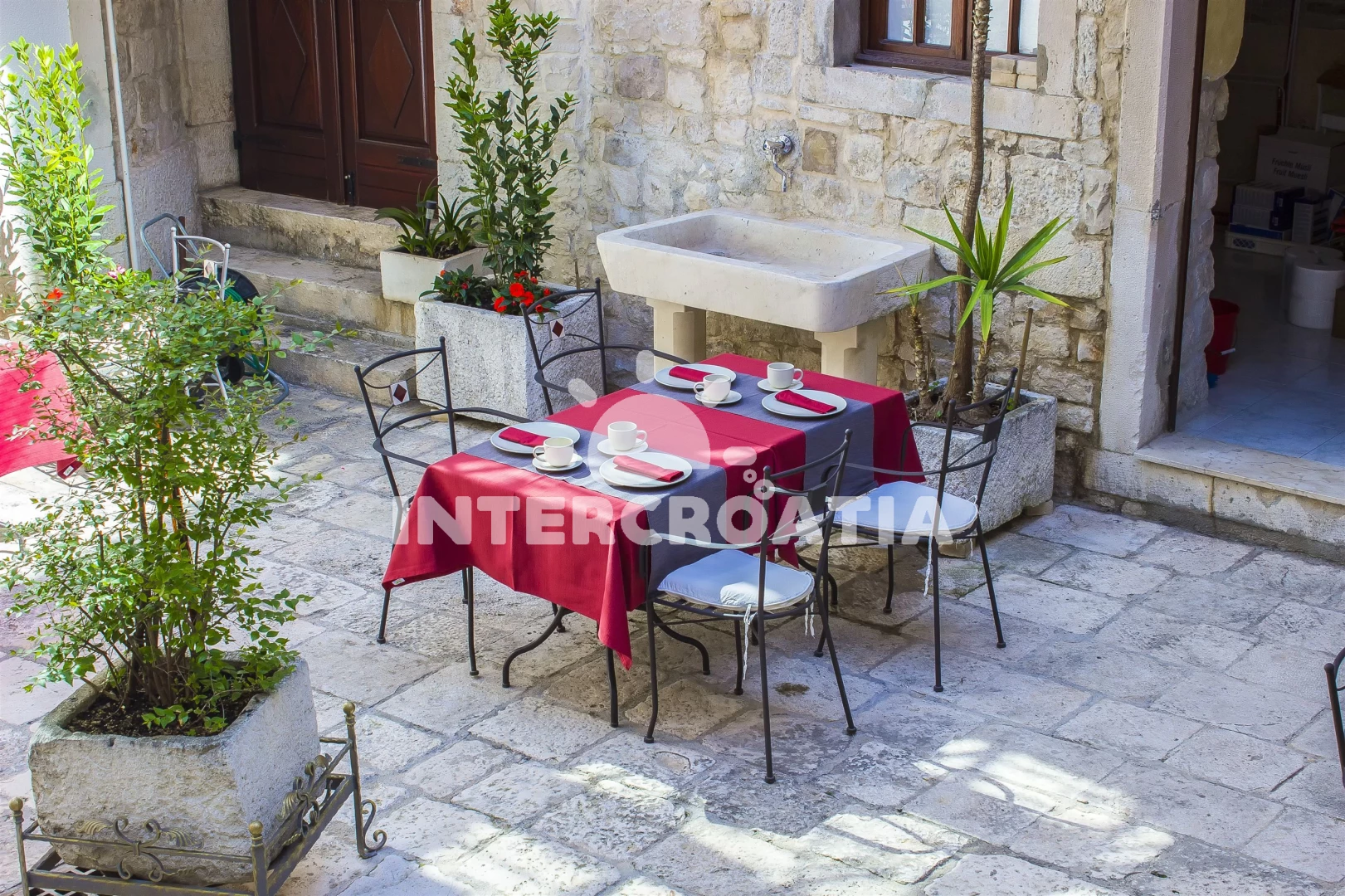 Vzdálenosti: centrum 0 m, Moře 20 m, pláž 500 m (oblázková a betonové desky), směnárna 10 m, bar 10 m, muzeum 20 m, banka 30 m, restaurace 50 m, pošta 50 m, veřejná doprava 50 m, supermarket 50 m, ambulance 300 m, lékárna 300 m, diskotéka 500 m, půjčovna kol 500 m, půjčovna motorových člunů 500 m, čerpací stanice 800 m, potápění 3 km, letiště (Split) 5 km, trajekt (Split) 25 km,