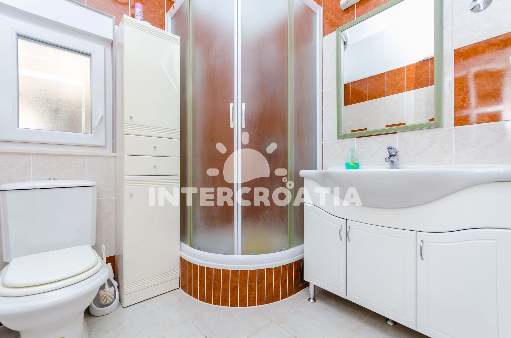 Vzdálenosti: Moře 60 m, pláž 60 m (oblázky), bar 40 m, supermarket 40 m, restaurace 40 m, ambulance 1,5 km, lékárna 1,5 km, čerpací stanice 1,5 km, směnárna 1,5 km, banka 1,5 km, pošta 1,5 km, muzeum 1,5 km, centrum 1,5 km, letiště (Split) 5 km, trajekt (Split) 25 km,