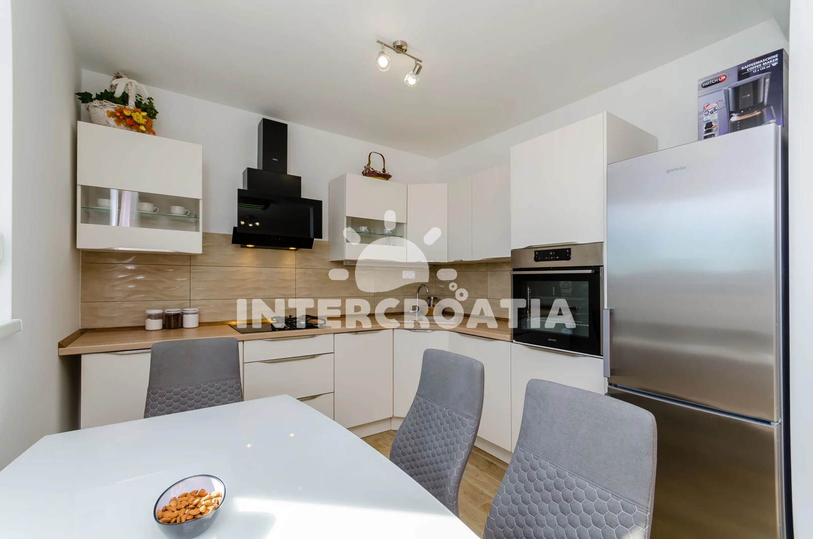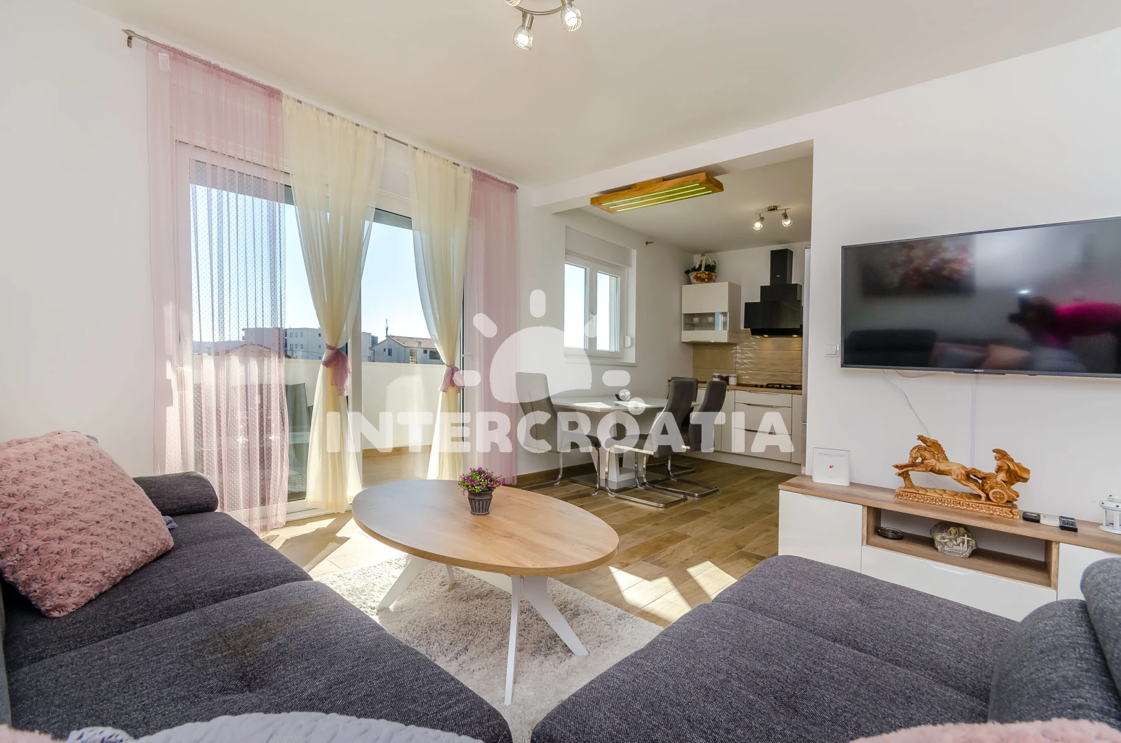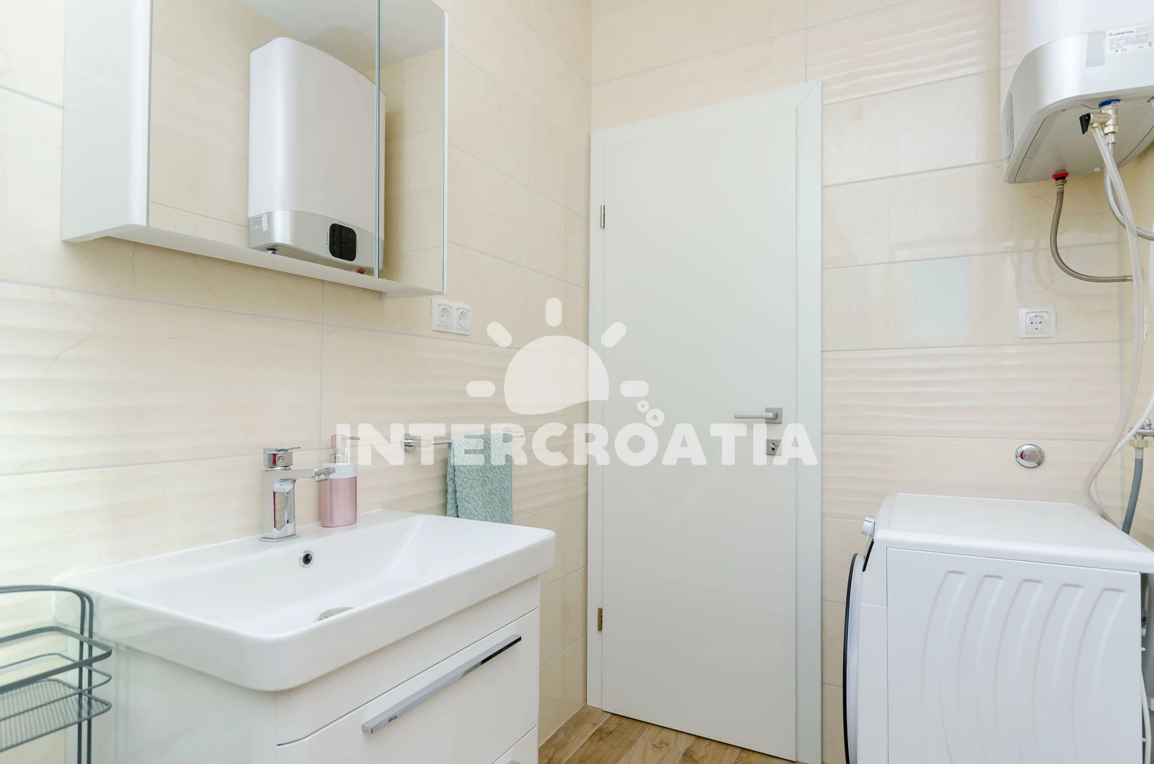 Vzdálenosti: Moře 500 m, pláž 1 km (oblázky), supermarket 500 m, lékárna 500 m, ambulance 500 m, směnárna 500 m, banka 500 m, bar 500 m, restaurace 500 m, centrum 700 m, čerpací stanice 1,5 km, letiště (Split) 7 km, trajekt (Split) 25 km,