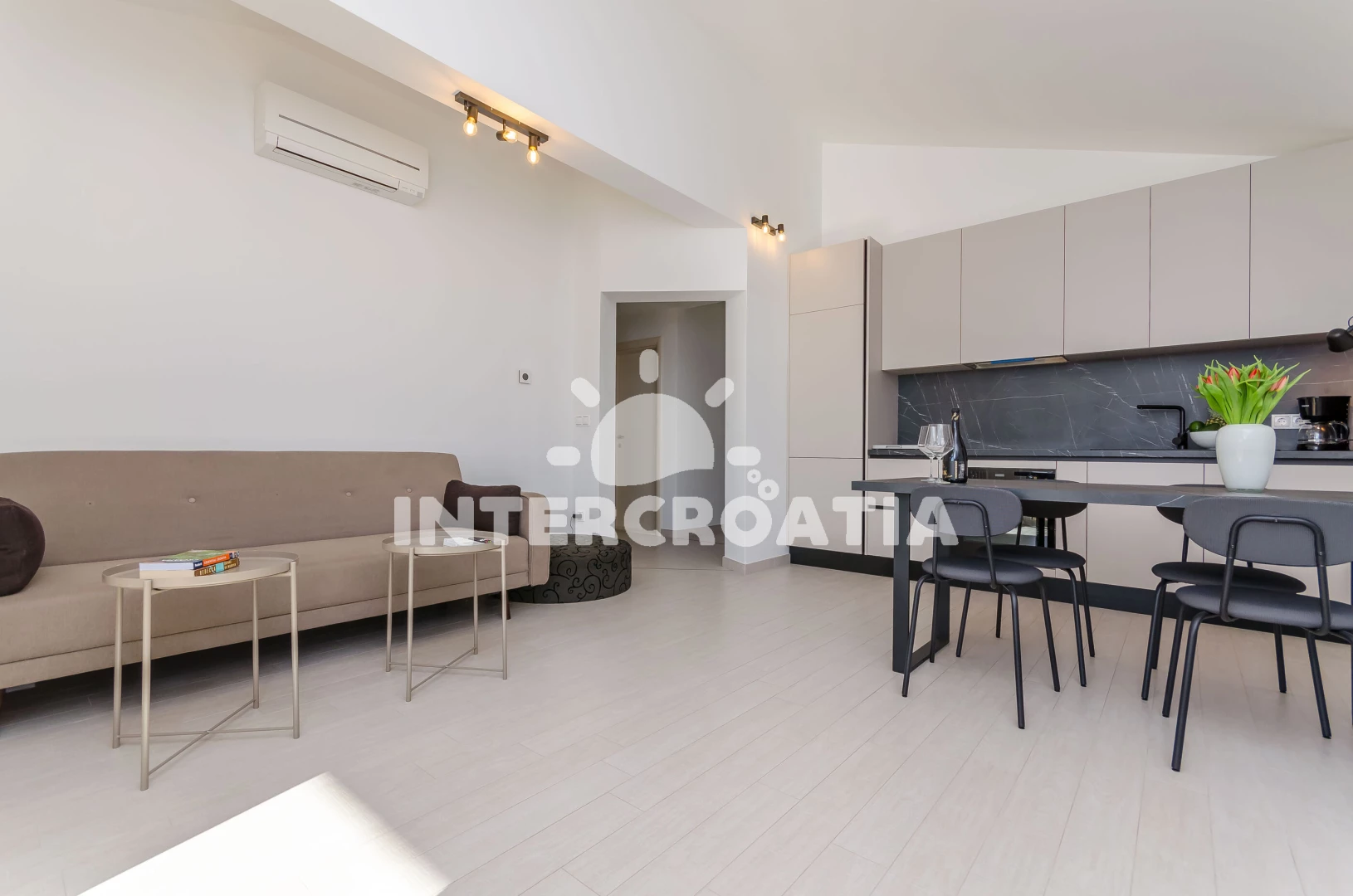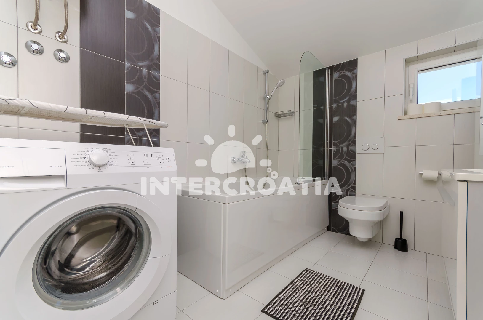 Vzdálenosti: Moře 350 m, pláž 450 m (oblázky), veřejná doprava 400 m, centrum 500 m, restaurace 500 m, bar 500 m, pošta 500 m, banka 500 m, směnárna 500 m, supermarket 500 m, čerpací stanice 500 m, ambulance 700 m, lékárna 700 m, marina 1 km, letiště (Split) 3 km, trajekt (Split) 20 km, park Plitvice 64 km,