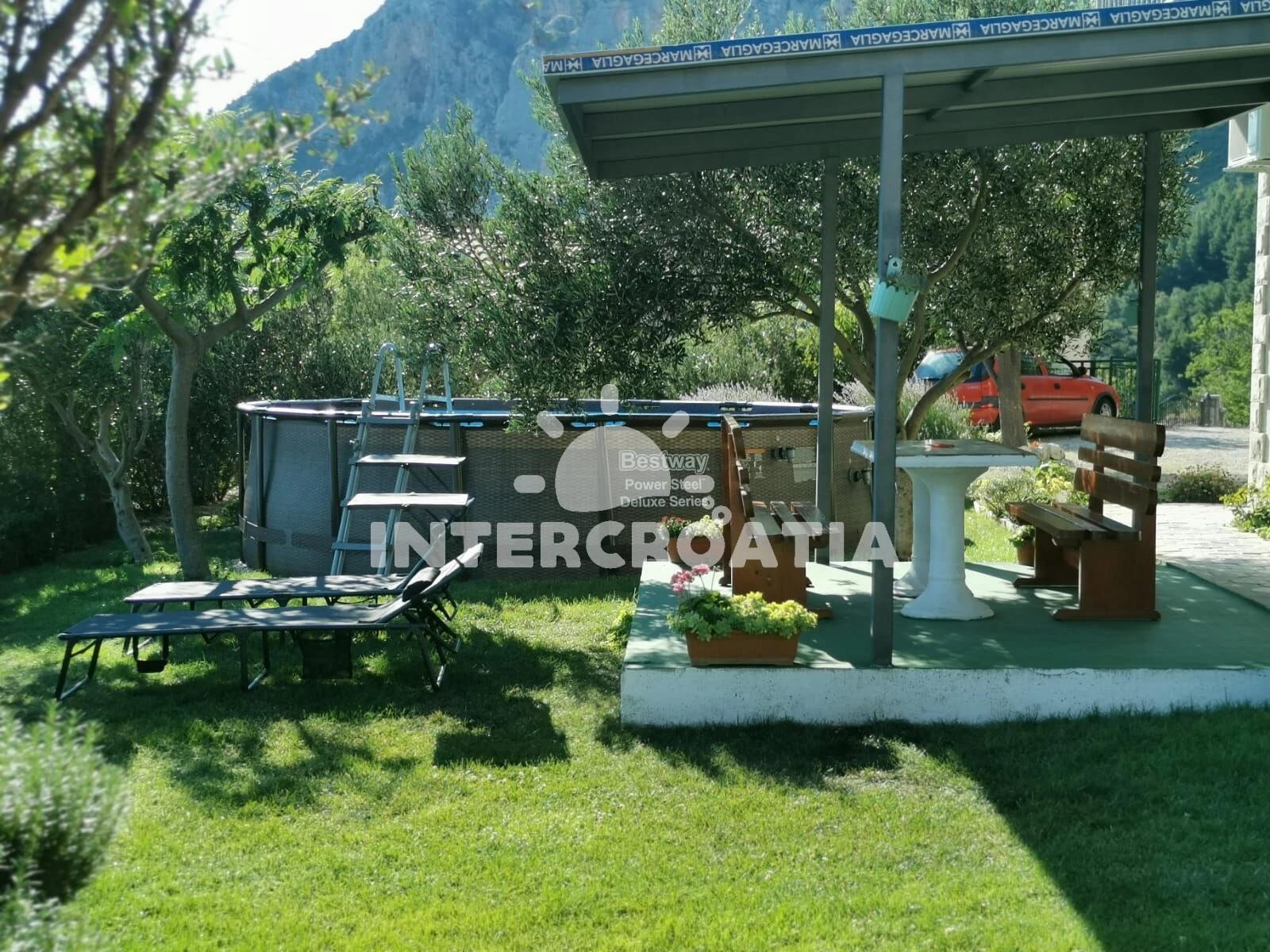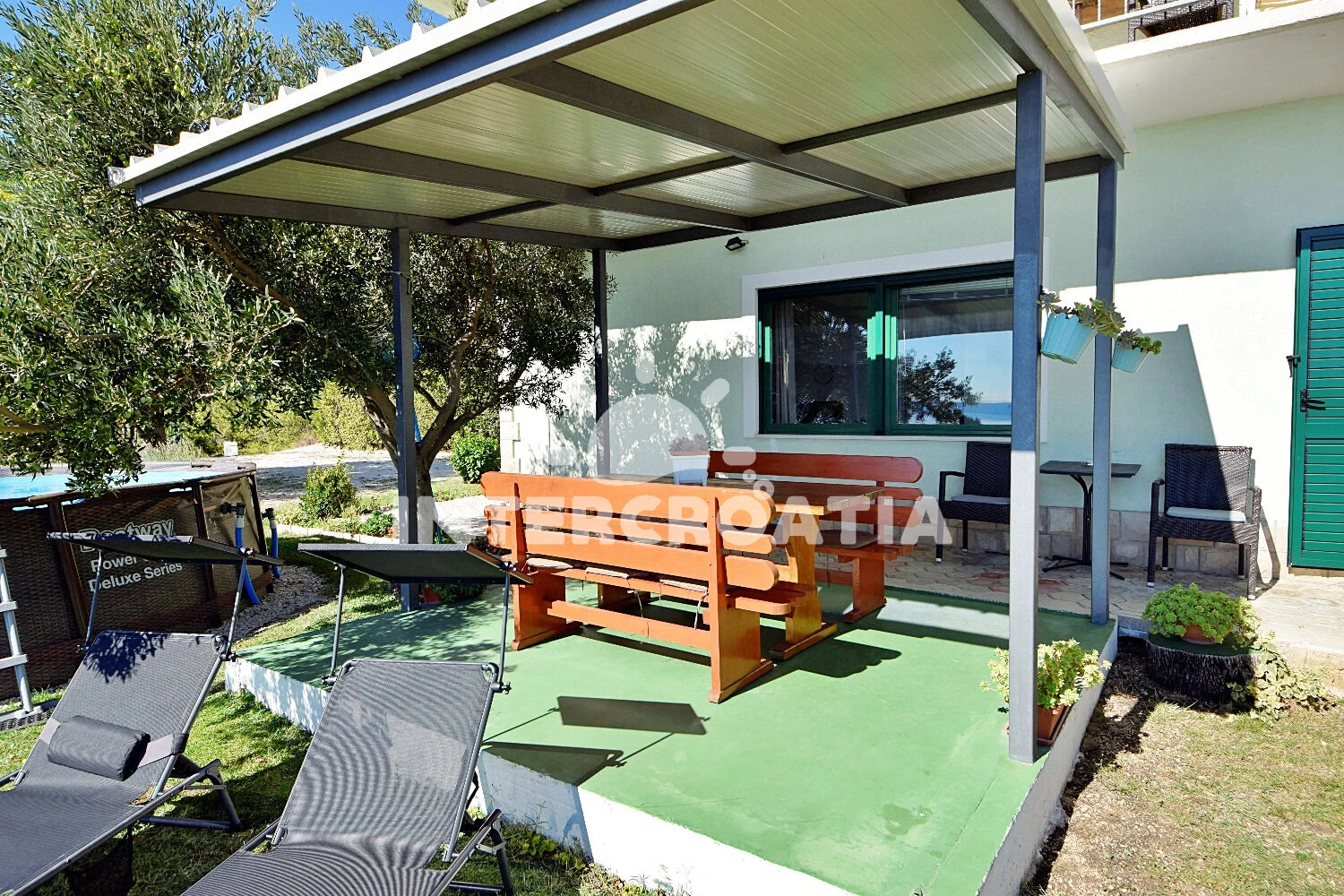 Apartmán se nachází 1500 m od moře a pláže. Pláž je skály. Apartmán disponuje bazénem s lehátky pro ubytované hosty. U objektu je k dispozici společná zahrada s posezením a grilem.