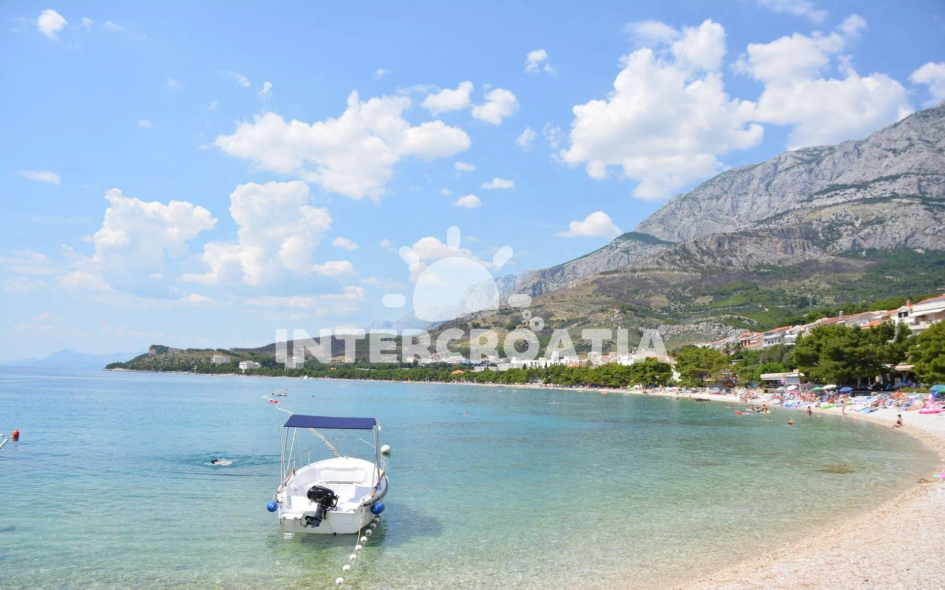 Vzdálenosti: Moře 250 m, pláž (oblázková) 250 m, centrum 300 m, market 80 m, pošta 300 m, lékárna 300 m, nemocnice 5 km, restaurace 300 m, směnárna 300 m, banka 5 km, muzeum 5 km, potápěčský klub 300 m, půjčovna motorových člunů 300 m, půjčovna kol 300 m, diskotéka 5 km, bar 300 m, čerpací stanice 3 km, veřejná doprava 250 m, trajekt (Makarska) 6,9 km, letiště (Split) 80 km.