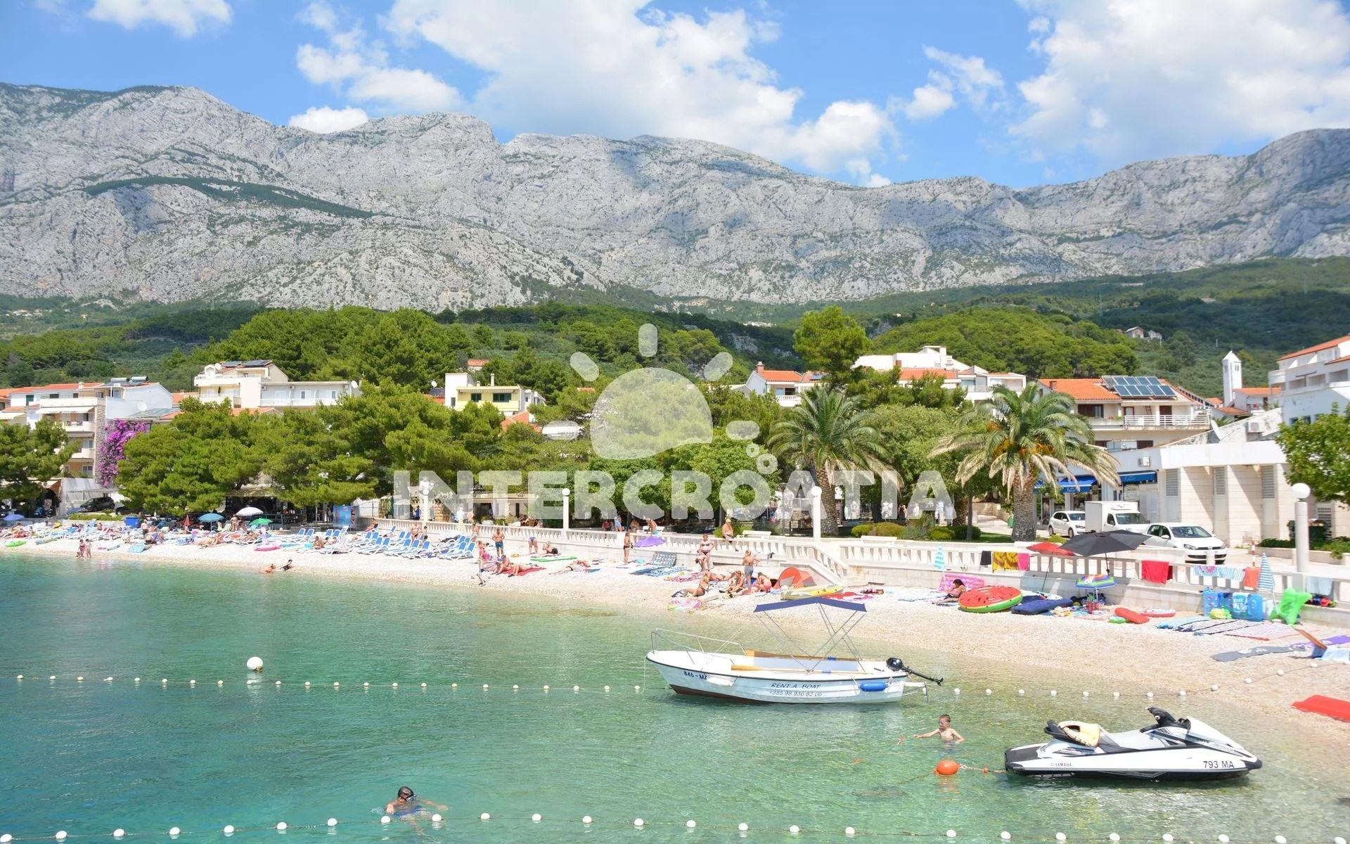 Vzdálenosti: Moře 100 m, pláž 300 m (oblázky), centrum 800 m, obchod 600 m, pošta 600 m, lékárna 800 m, zdravotní středisko 800 m, restaurace 300 m, směnárna 800 m, banka 600 m, muzeum 5,5 km, přístav 6 km, kotviště pro čluny 1 km, půjčovna kol 500 m, půjčovna motorových člunů 500 m, tenisový kurt 300 m, venkovní bazén 300 m, diskotéka 5 km, bar 300 m, čerpací stanice 4,5 km, veřejná doprava 100 m, trajekt 6 km (Makarska), letiště 75 km (Split).
