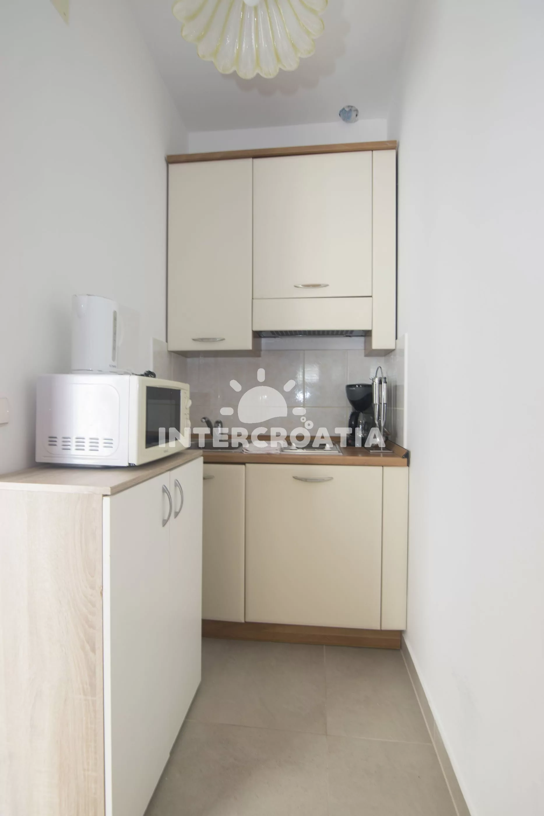 Vzdálenosti: Moře a pláž 350 m, centrum, lékárna, pošta, přístav, potápění, půjčovna motorových člunů 1 km, ambulance 1,4 km, supermarket 200 m, tenis 250 m, restaurace, bar 350 m, půjčovna kol 500 m, směnárna, veřejná doprava 80 m, banka, diskotéka, muzeum, trajekt 5 km, čerpací stanice 2,2 km, letiště 98 km.