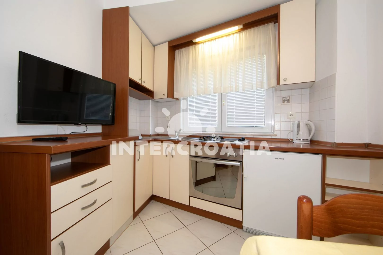 Apartmán (35 m2) s balkonem se nachází v 1. patře domu a je vhodný pro až 4 osoby. Obývací místnost je spojena s kuchyní. Kuchyňská linka je vybavena varnou deskou, vestavěnou troubou, rychlovarnou…