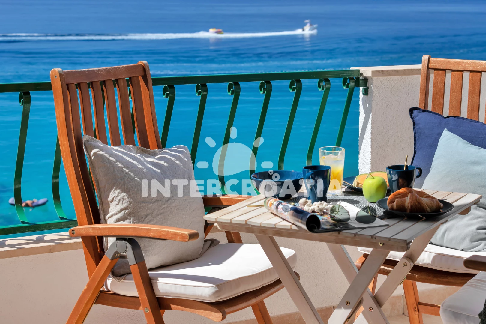 Vzdálenosti: Moře 5 m, pláž 5 m (písčitá a oblázková), bar 5 m, restaurace 5 m, směnárna 5 m, veřejná doprava 100 m, lékárna 100 m, kotviště pro čluny 150 m, půjčovna motorových člunů 200 m, supermarket 200 m, pošta 200 m, centrum 200 m, marina 200 m, půjčovna kol 200 m, ambulance 250 m, potápění 600 m, tenisové kurty 1 km, čerpací stanice 4 km, muzeum 6 km, trajekt (Makarska) 6 km, banka 6 km, park Plitvice 6 km,