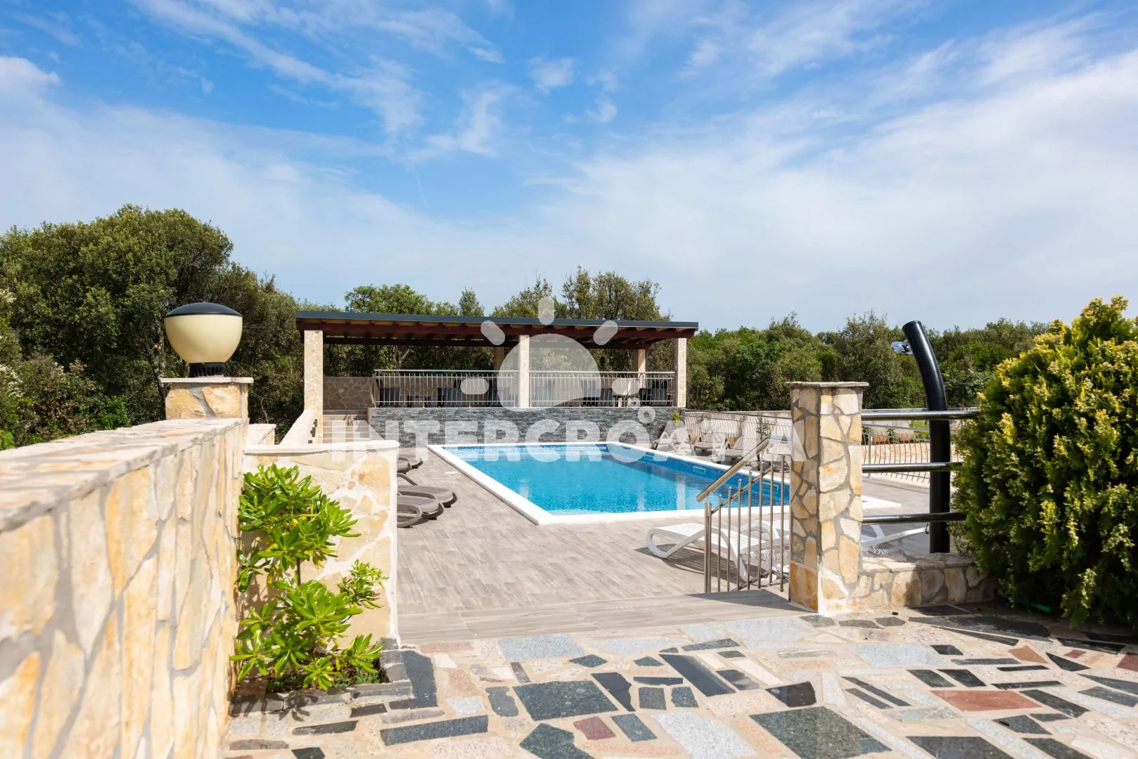 Krásná apartmánová vila s bazénem a terasou s venkovním posezením se nachází pouze 350 m od klidné oblázkové pláže. Vila stojí samostatně na rozlehlém pozemku s několika terasami a zděným grilem. Dokonalý relax nabízí lehátka u bazénu. Parkovací místa u vily.