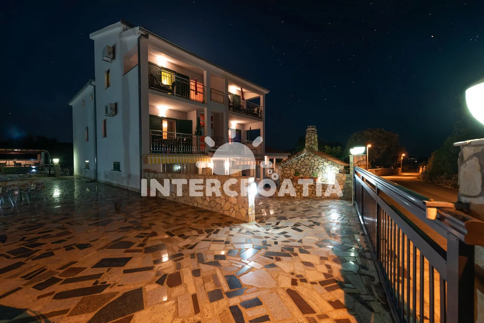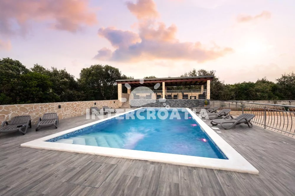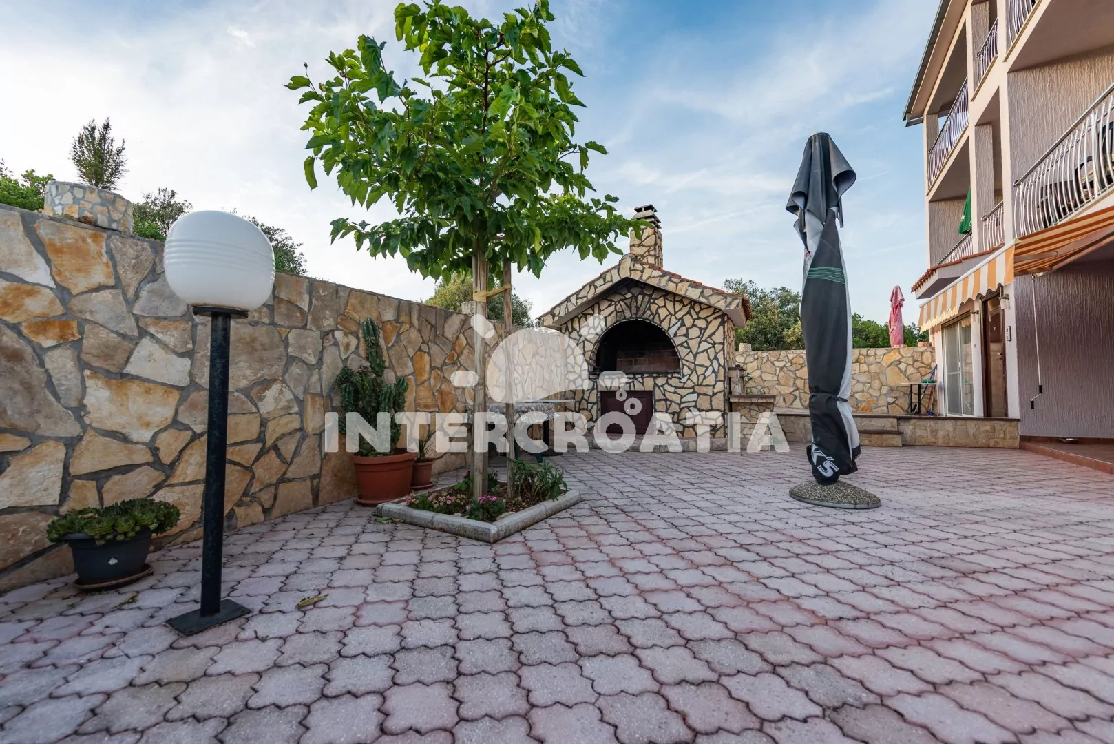 Apartmánová vila s bazénem a terasou s venkovním posezením se nachází pouze 350 m od klidné oblázkové pláže. Vila stojí samostatně na rozlehlém pozemku s několika terasami a zděným grilem. Dokonalý relax nabízí lehátka u bazénu. Parkovací místa u vily.