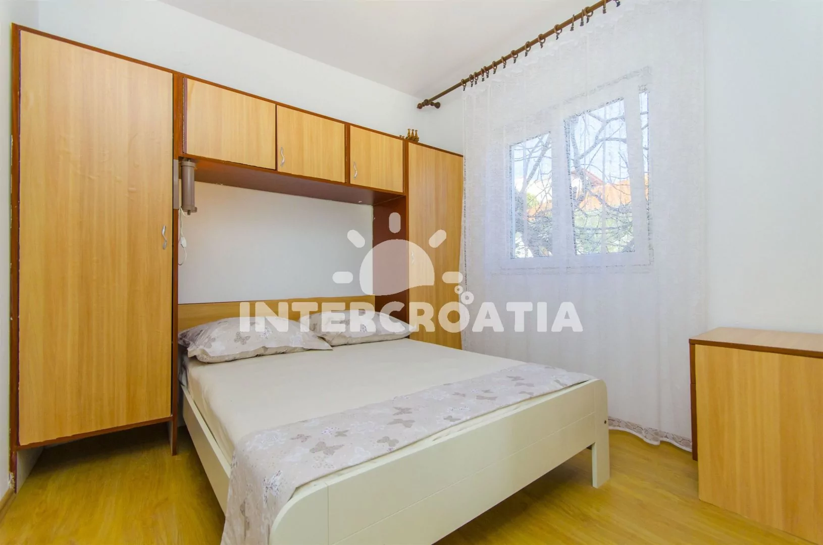 Apartmán (50 m2) v 1. patře, s vlastní terasou a venkovním posezením, nabízí jedinečný výhled na moře. Apartmán je vhodný pro 4 až 5 osob. Obývací pokoj je spojený s kuchyní. Kuchyňská linka je vybavena varnou deskou, troubou, kávovarem, nádobím a lednicí s mrazákem. Obývací pokoj s jídelním stolem pro 4 osoby, pohovkou (rozložitelná na extra lůžko pro 1 osobu), televizí se satelitním programem, klimatizací a vstupem na terasu. První i druhá ložnice je vybavena vždy s jedním dvoulůžkem. Koupelna se sprchovým koutem, umyvadlem a wc. Hostům je k dispozici parkování u objektu zdarma.