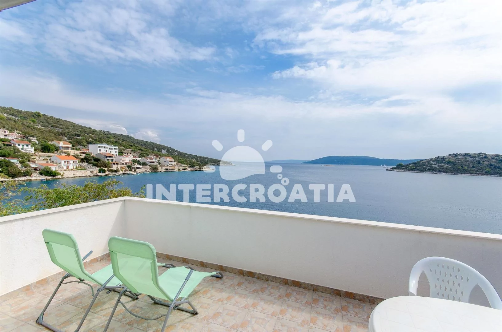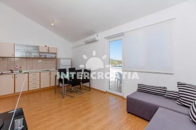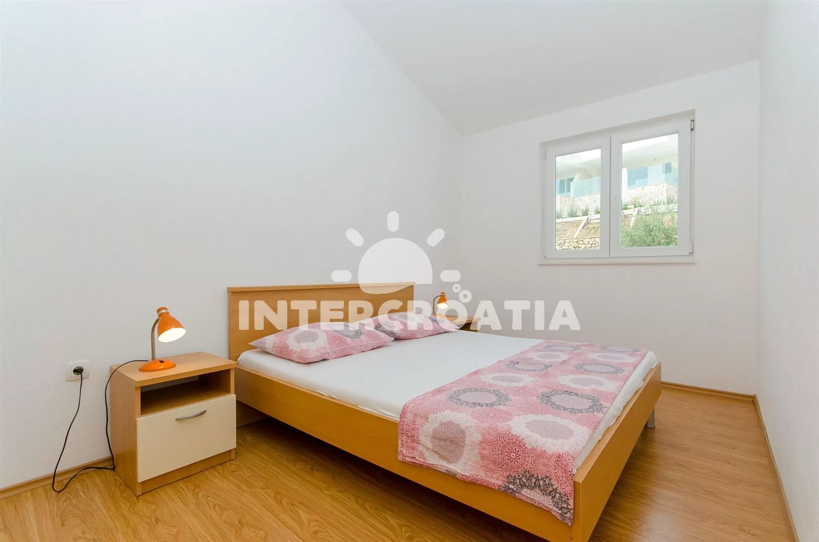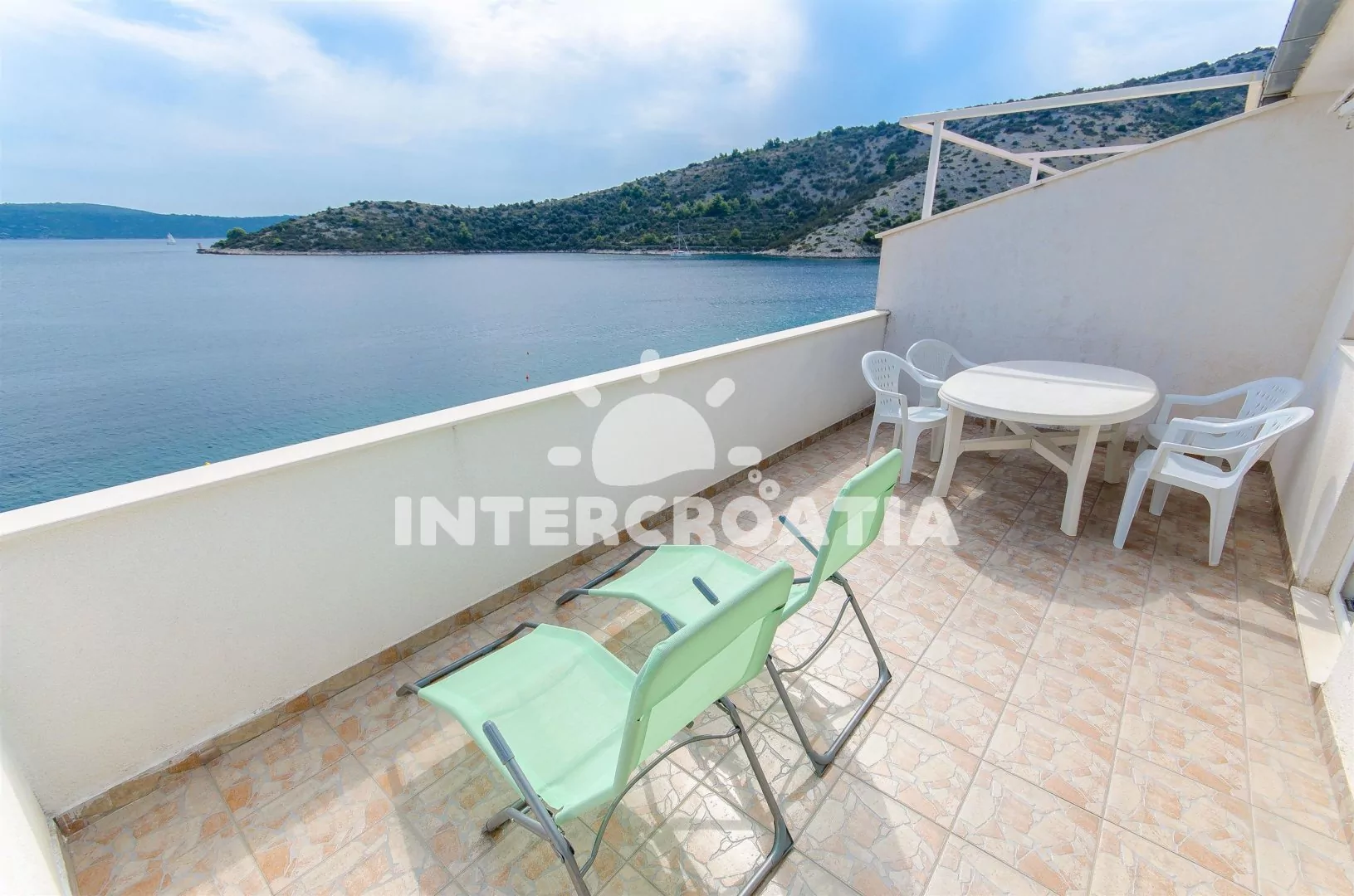 Apartmán (50 m2) v 2. patře, s vlastní terasou a venkovním posezením, nabízí jedinečný výhled na moře. Apartmán je vhodný pro 4 až 5 osob. Obývací pokoj je spojený s kuchyní. Kuchyňská linka je vybavena sporákem, kávovarem, nádobím a lednicí s mrazákem. Obývací pokoj s jídelním stolem pro 4 osoby, rohovou pohovkou (rozložitelná na extra lůžko pro 1 osobu), televizí se satelitním programem, klimatizací a vstupem na terasu. První i druhá ložnice je vybavena vždy s jedním dvoulůžkem. Koupelna se sprchovým koutem, umyvadlem a wc. Hostům je k dispozici parkování u objektu zdarma.