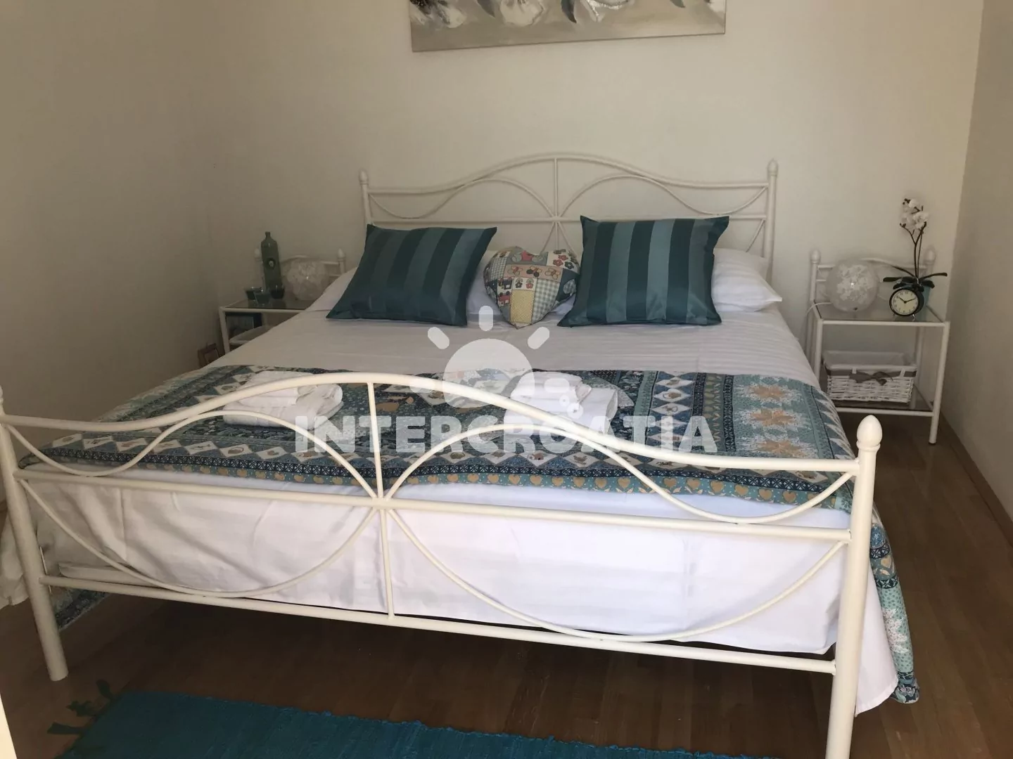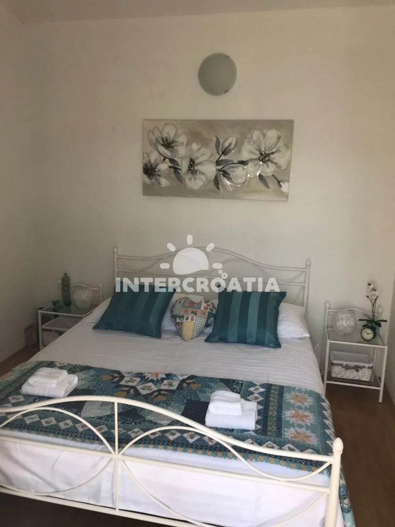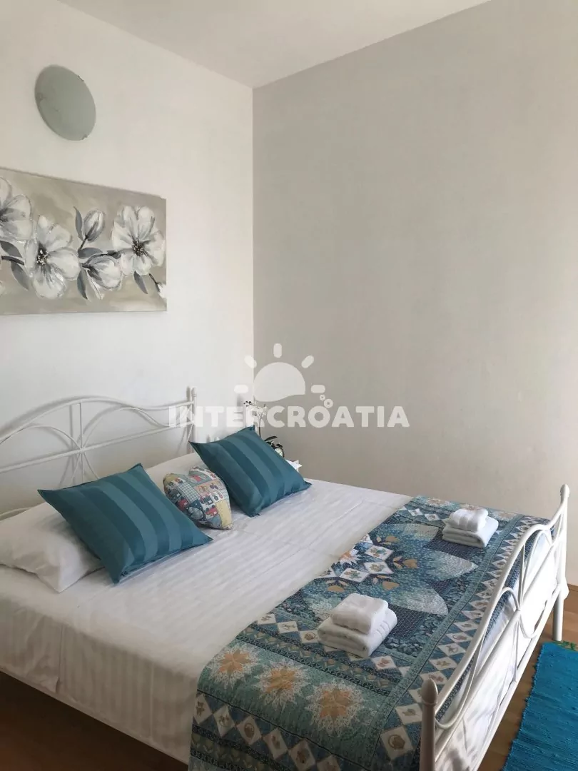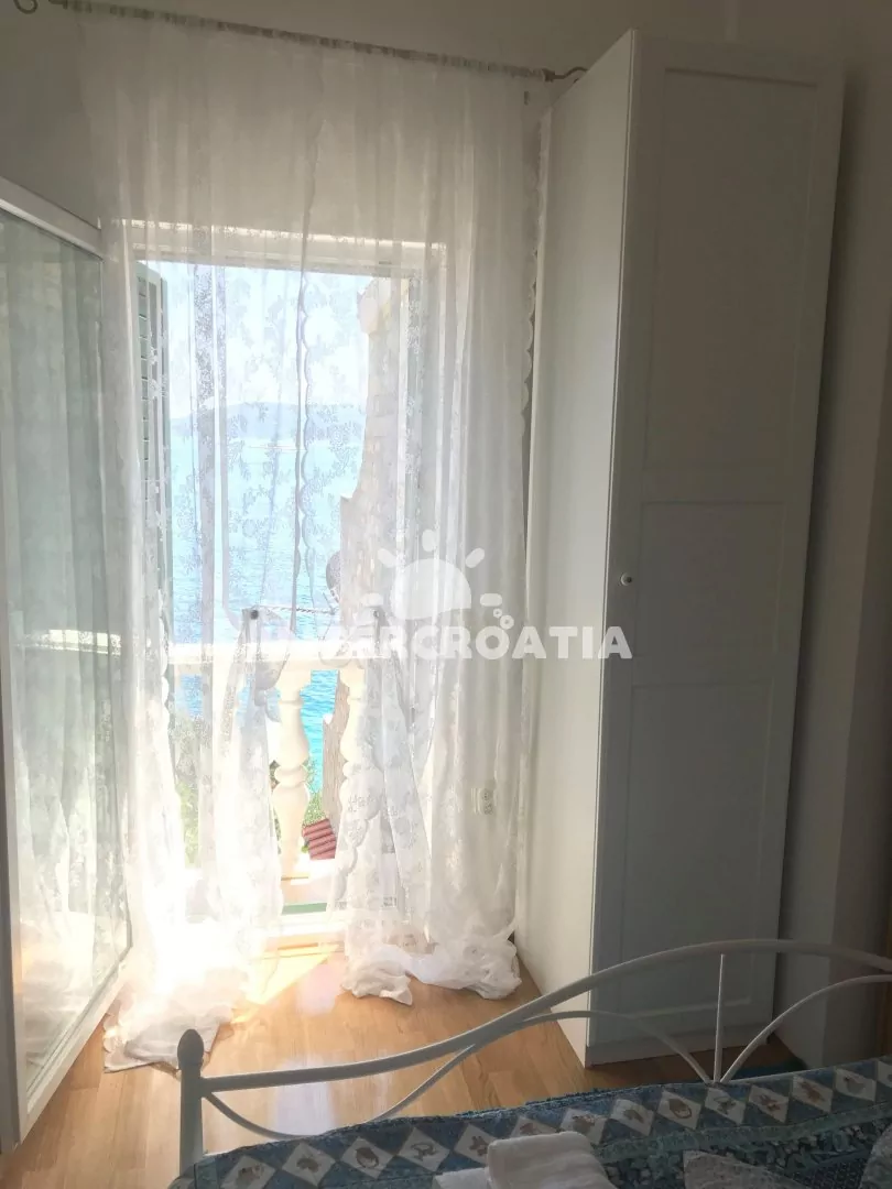 Apartmán (40 m2) s balkonem a výhledem na moře se nachází v 1. patře domu a je vhodný pro 4 osoby. Obývací pokoj je spojený s kuchyní. Kuchyňská linka je vybavena dvouplotýnkovou varnou deskou, myčkou na nádobí, mikrovlnnou troubou, kávovarem, toustovačem, nádobím a lednicí s mrazákem. Obývací pokoj s pohovkou, televizí se satelitním programem, radiem, klimatizací a vstupem na balkon. První i druhá ložnice je vybavena vždy s jedním dvoulůžkem. Koupelna se sprchovým koutem, umyvadlem, pračkou, fénem a wc. Hostům je k dispozici parkování u objektu zdarma.