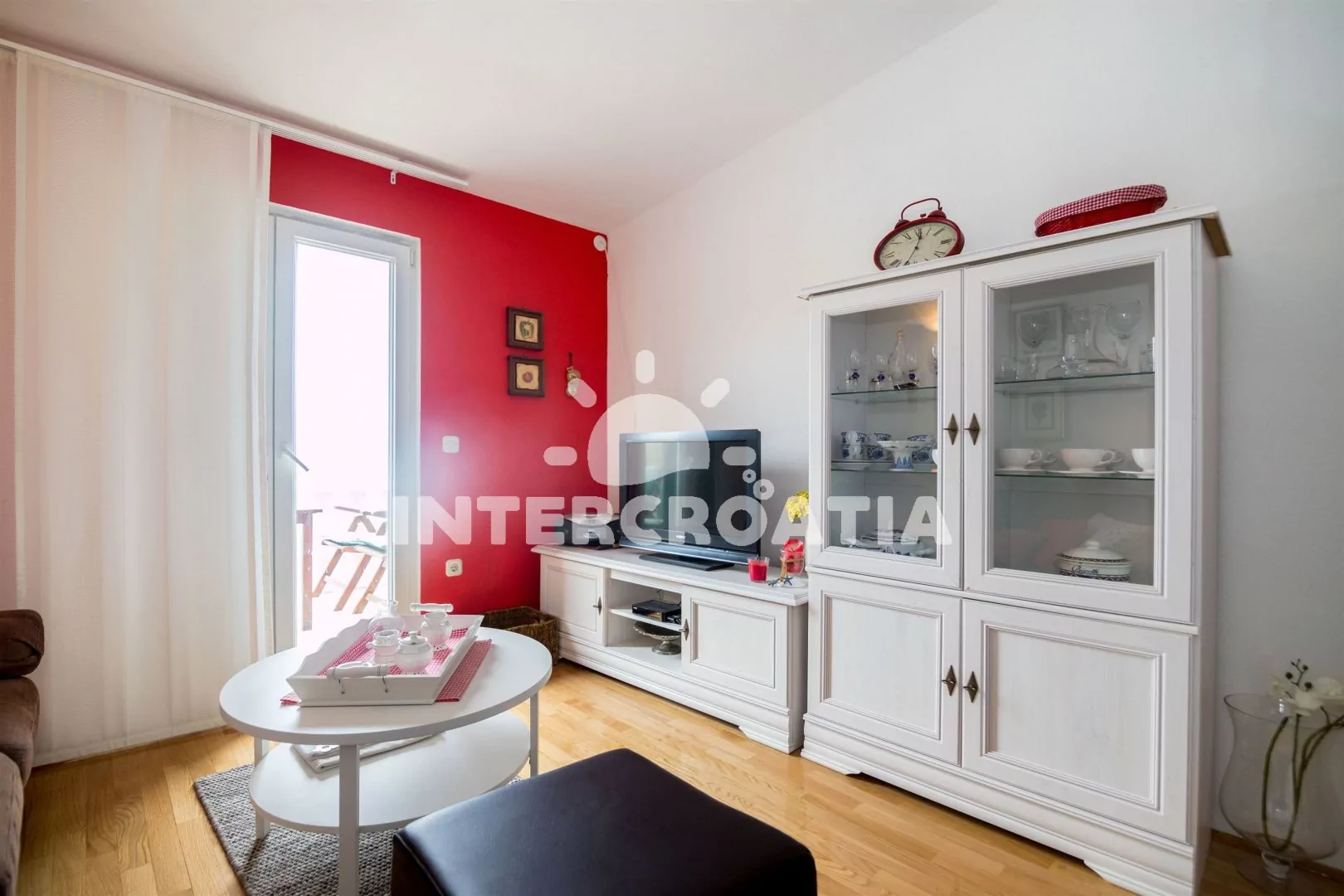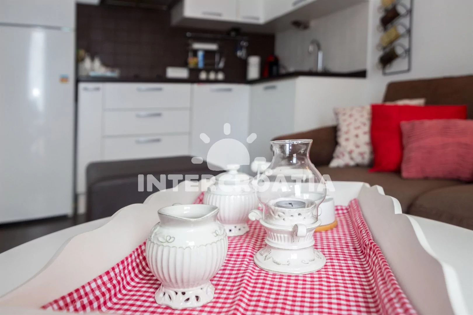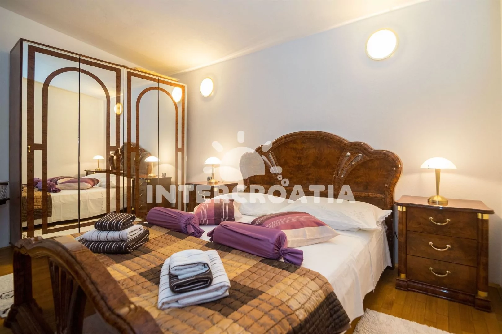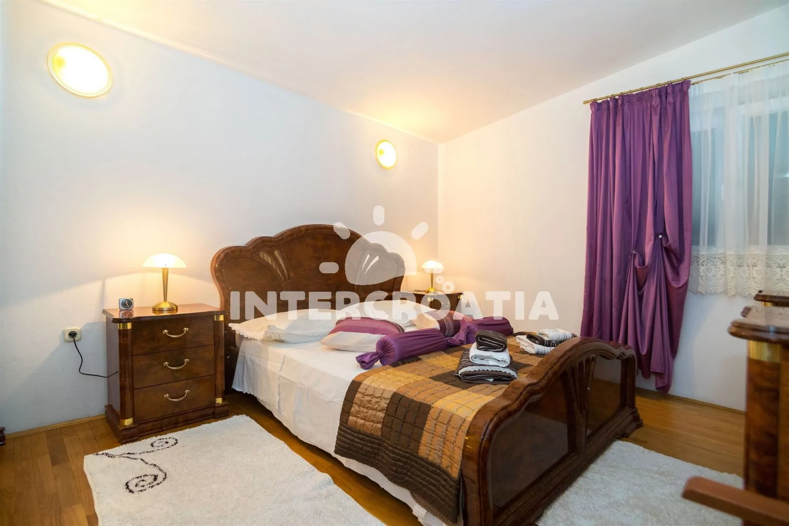 Apartmán (40 m2) s balkonem a výhledem na moře se nachází v 1. patře domu a je vhodný pro 4 osoby. Obývací pokoj je spojený s kuchyní. Kuchyňská linka je vybavena dvouplotýnkovou varnou deskou, myčkou na nádobí, mikrovlnnou troubou, kávovarem, toustovačem, nádobím a lednicí s mrazákem. Obývací pokoj s pohovkou, televizí se satelitním programem, radiem, klimatizací a vstupem na balkon. První i druhá ložnice je vybavena vždy s jedním dvoulůžkem. Koupelna se sprchovým koutem, umyvadlem, pračkou, fénem a wc. Hostům je k dispozici parkování u objektu zdarma.