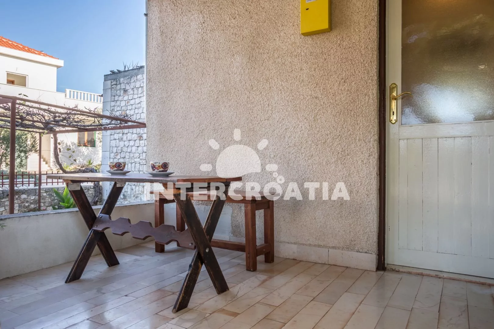 Vzdálenosti: Moře a pláž 250 m, centrum 3,5 km, supermarket, restaurace, bar, pošta, směnárna, půjčovna cyklistických kol, půjčovna motorových člunů, potápění a veřejná doprava 3,5 km, čerpací stanice 18 km, ambulance, lékárna a banka 7 km, muzeum a diskotéka 20 km, trajekt 50 km, letiště (Split) 25 km.