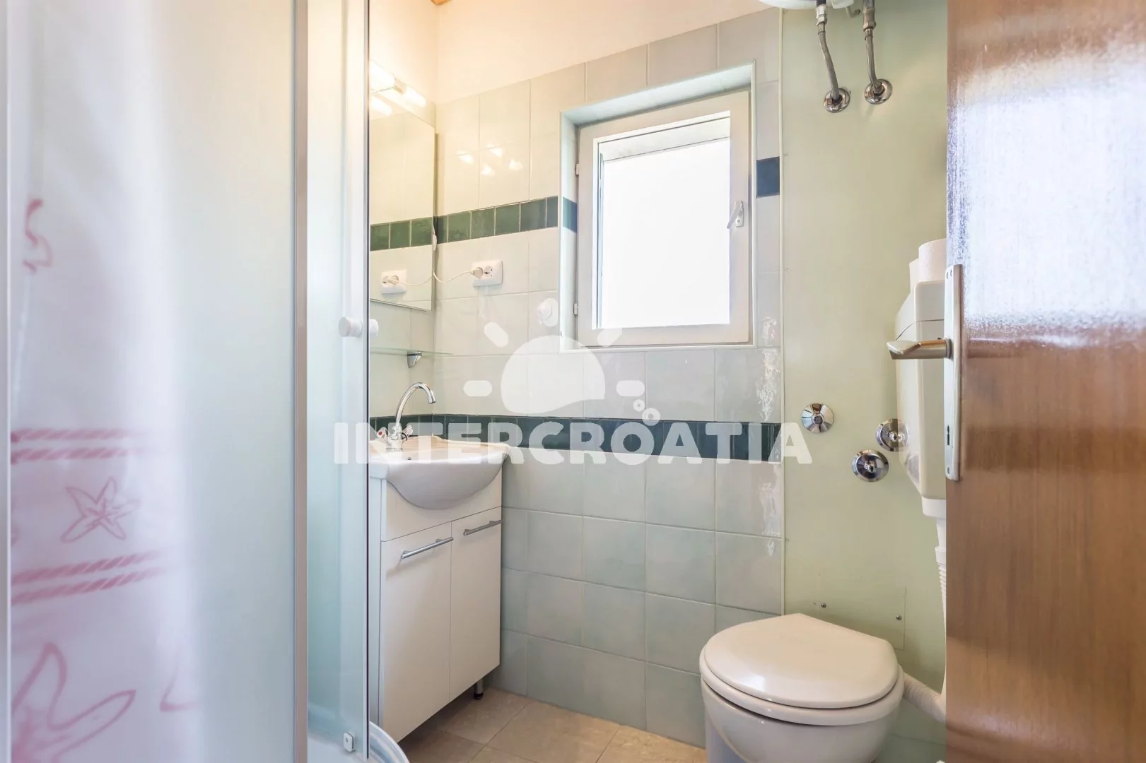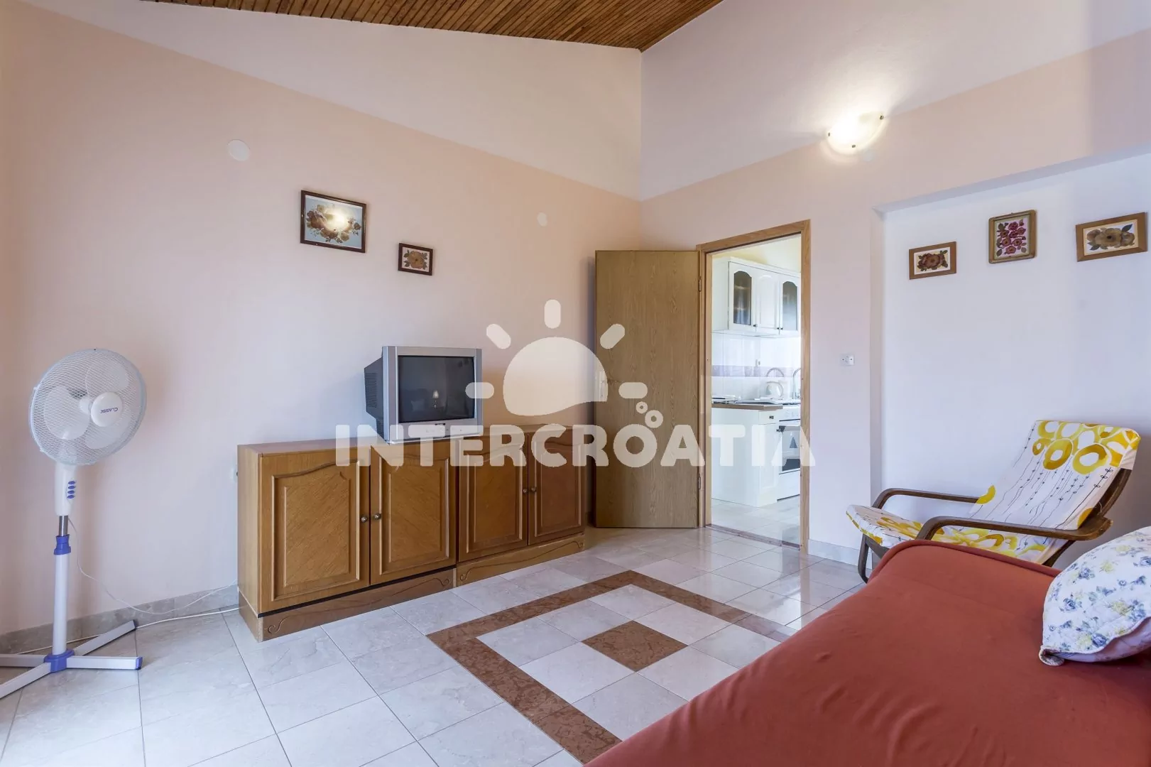Apartmán se nachází 250 m od moře a pláže. Pláž je skalnatá, oblázková a betonové desky. U objektu je k dispozici společná zahrada s posezením a grilem. Parkování je před domem.
