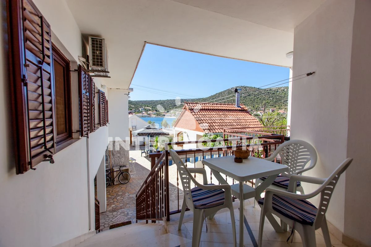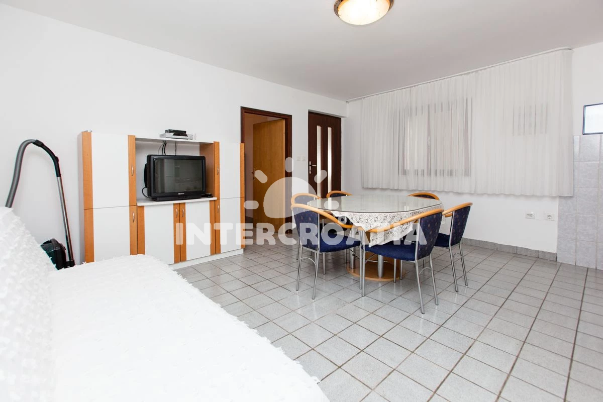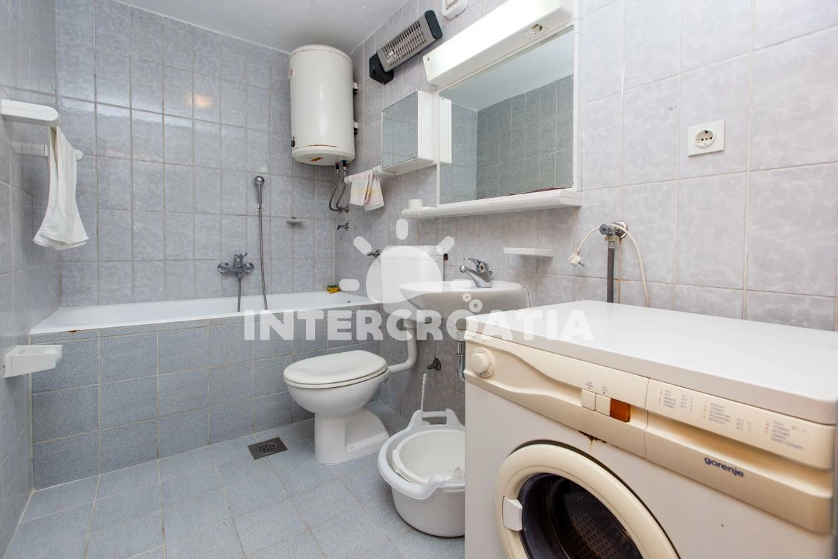 Vzdálenosti: Moře 20 m, pláž 20 m (oblázky), centrum 30 m, veřejná doprava 100 m, banka 100 m, pošta 100 m, bar 100 m, restaurace 100 m, lékárna 6 km, ambulance 6 km, směnárna 6 km, tenisové kurty 18 km, potápění 18 km, čerpací stanice 20 km, letiště (Split) 30 km, trajekt (Split) 50 km,