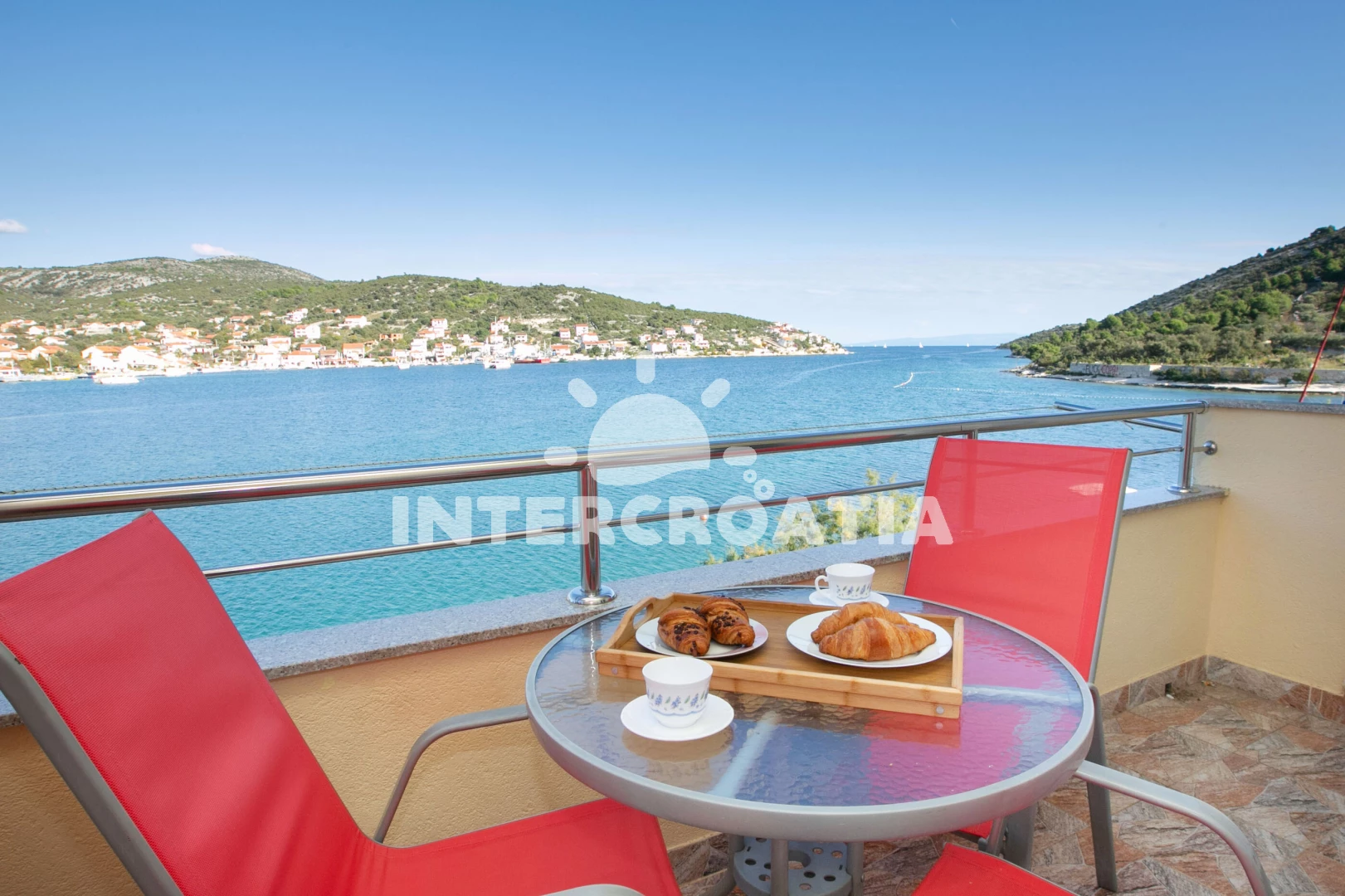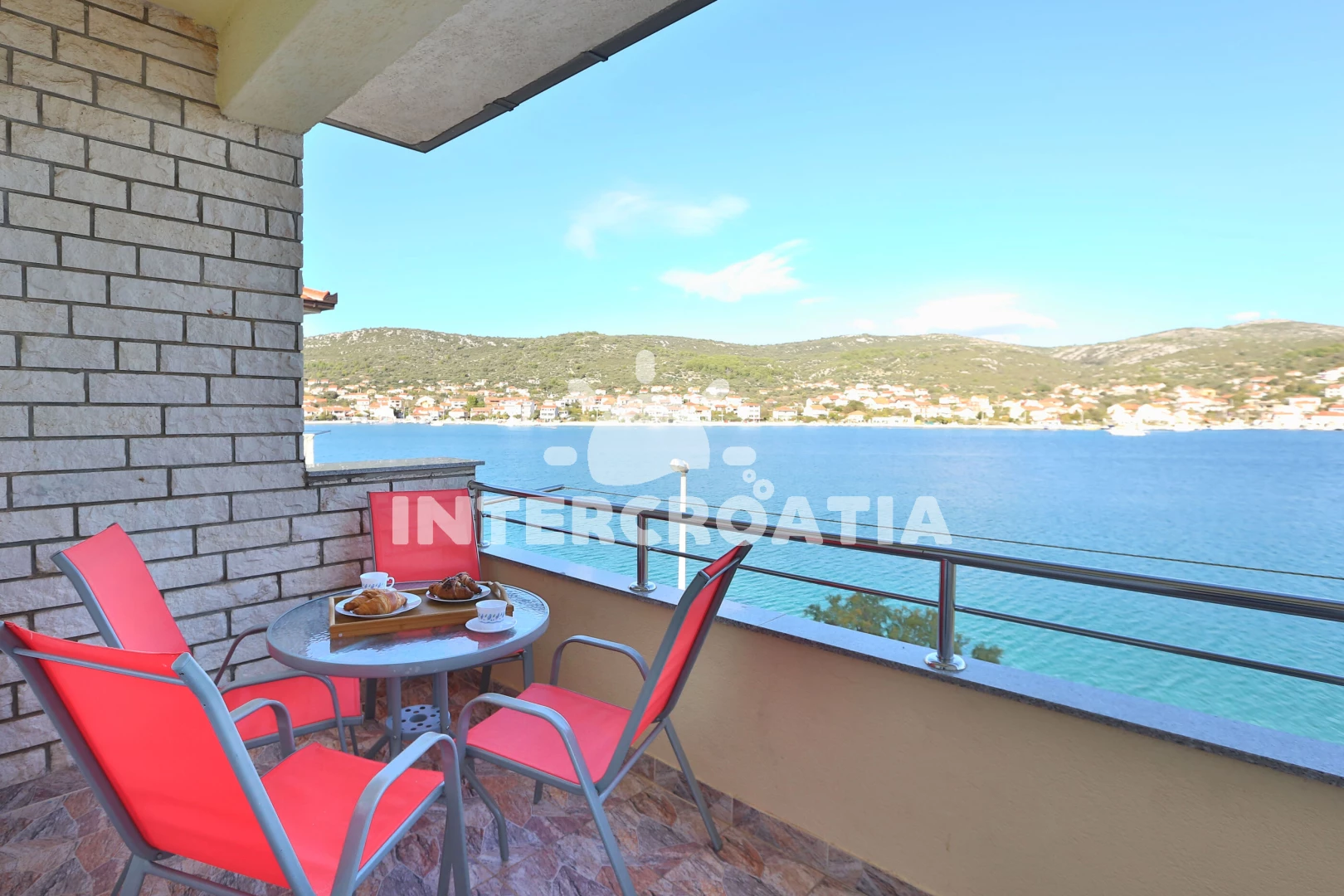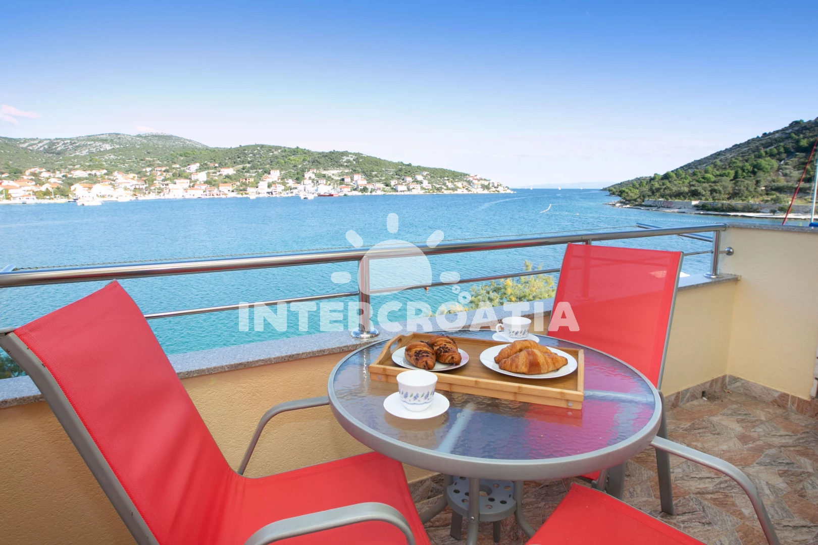 Apartmán (50 m2) s balkonem, a výhledem na moře. Nachází se ve 2. patře objektu. Apartmán má 2 ložnice a je vhodný pro až 4 osoby. Kuchyňská linka je vybavena varnou deskou, troubou, kávovarem, rychlovarnou konvicí, nádobím, lednicí, mrazákem. K dispozici televize, žehlička. První ložnice s dvoulůžkem. Druhá ložnice s dvoulůžkem. Koupelna se sprchovým koutem, umyvadlem, fénem a WC.