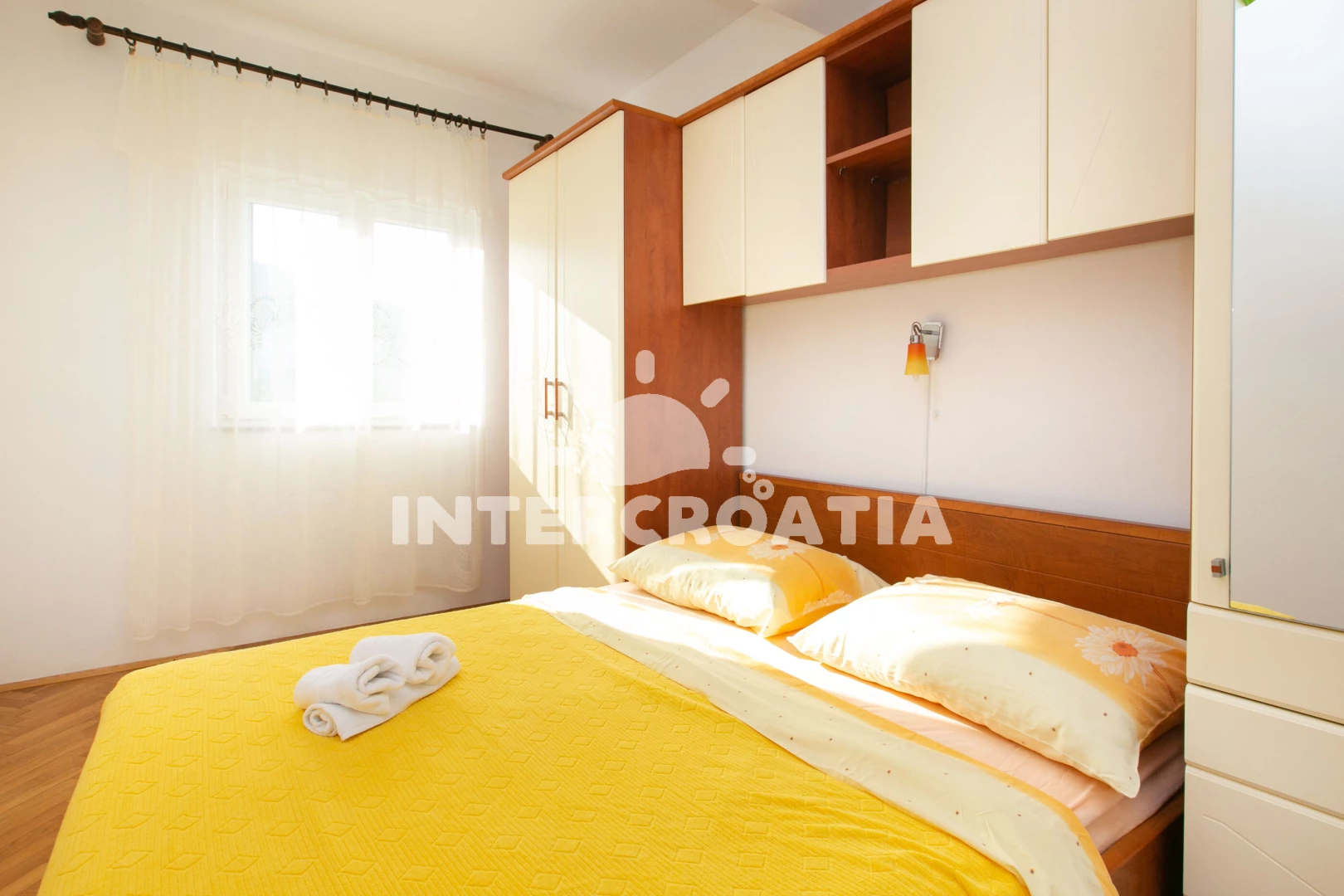 Apartmán (50 m2) s balkonem, a výhledem na moře. Nachází se ve 2. patře objektu. Apartmán má 2 ložnice a je vhodný pro až 4 osoby. Kuchyňská linka je vybavena varnou deskou, troubou, kávovarem,…