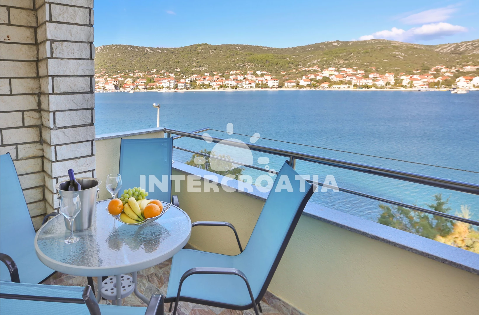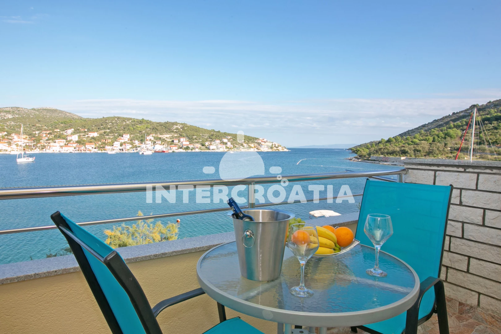 Apartmán (50 m2) s balkonem, a výhledem na moře. Nachází se ve 2. patře objektu. Apartmán má 2 ložnice a je vhodný pro až 4 osoby. Kuchyňská linka je vybavena varnou deskou, troubou, kávovarem, rychlovarnou konvicí, nádobím, lednicí, mrazákem. K dispozici televize, žehlička. První ložnice s dvoulůžkem. Druhá ložnice s dvoulůžkem. Koupelna se sprchovým koutem, umyvadlem, fénem a WC.